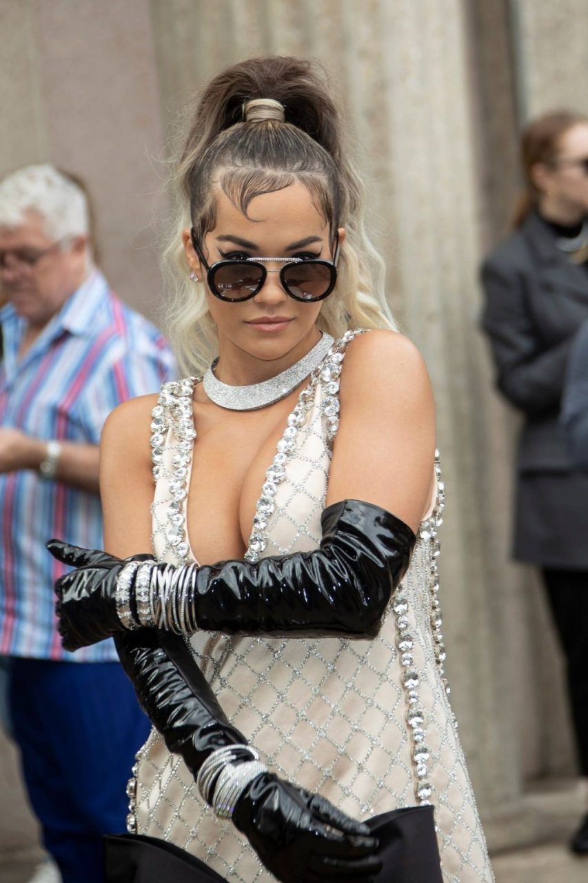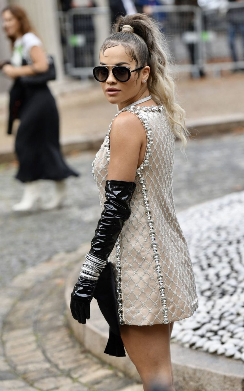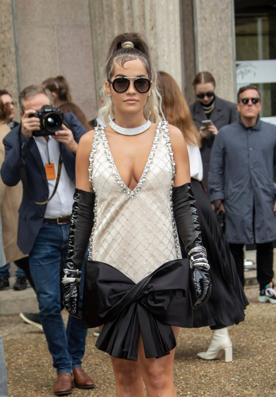 La cantante británica Rita Ora asiste al desfile de moda femenina Primavera/Verano 2020 de Miu Miu como parte de la Semana de la Moda de París, 01/10/2019.