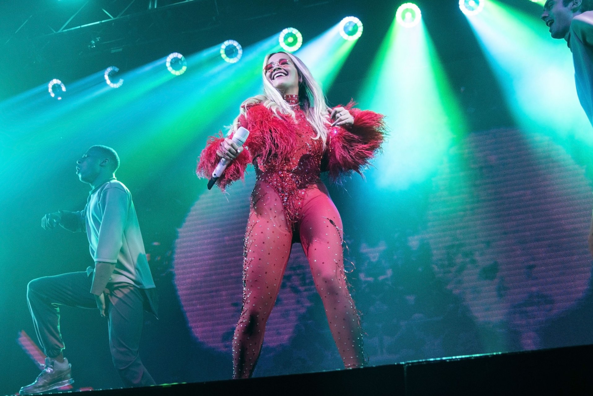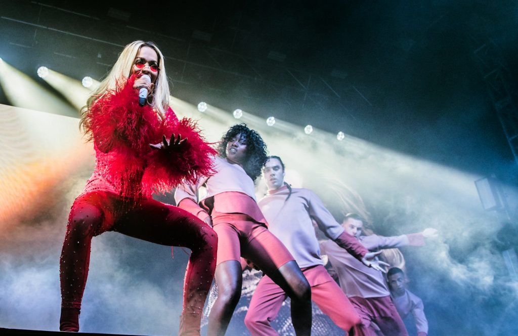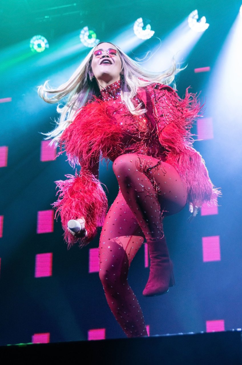 Rita Ora actuó en el concierto durante una gira con entradas agotadas por todo el Reino Unido en la O2 Academy de Leeds, 05/12/2018. La cantante británica de 27 años lució increíble al aparecer en el escenario para sus fans con un ajustado conjunto rojo.
