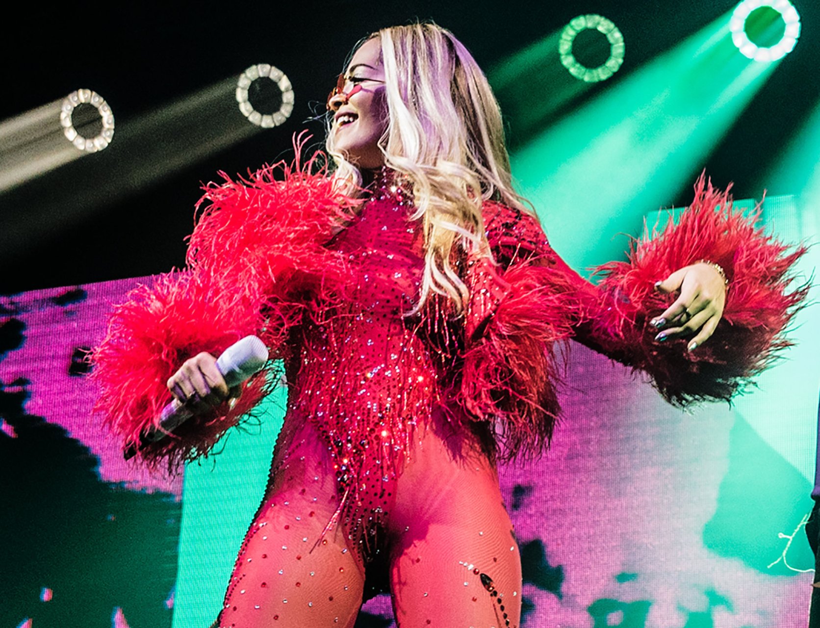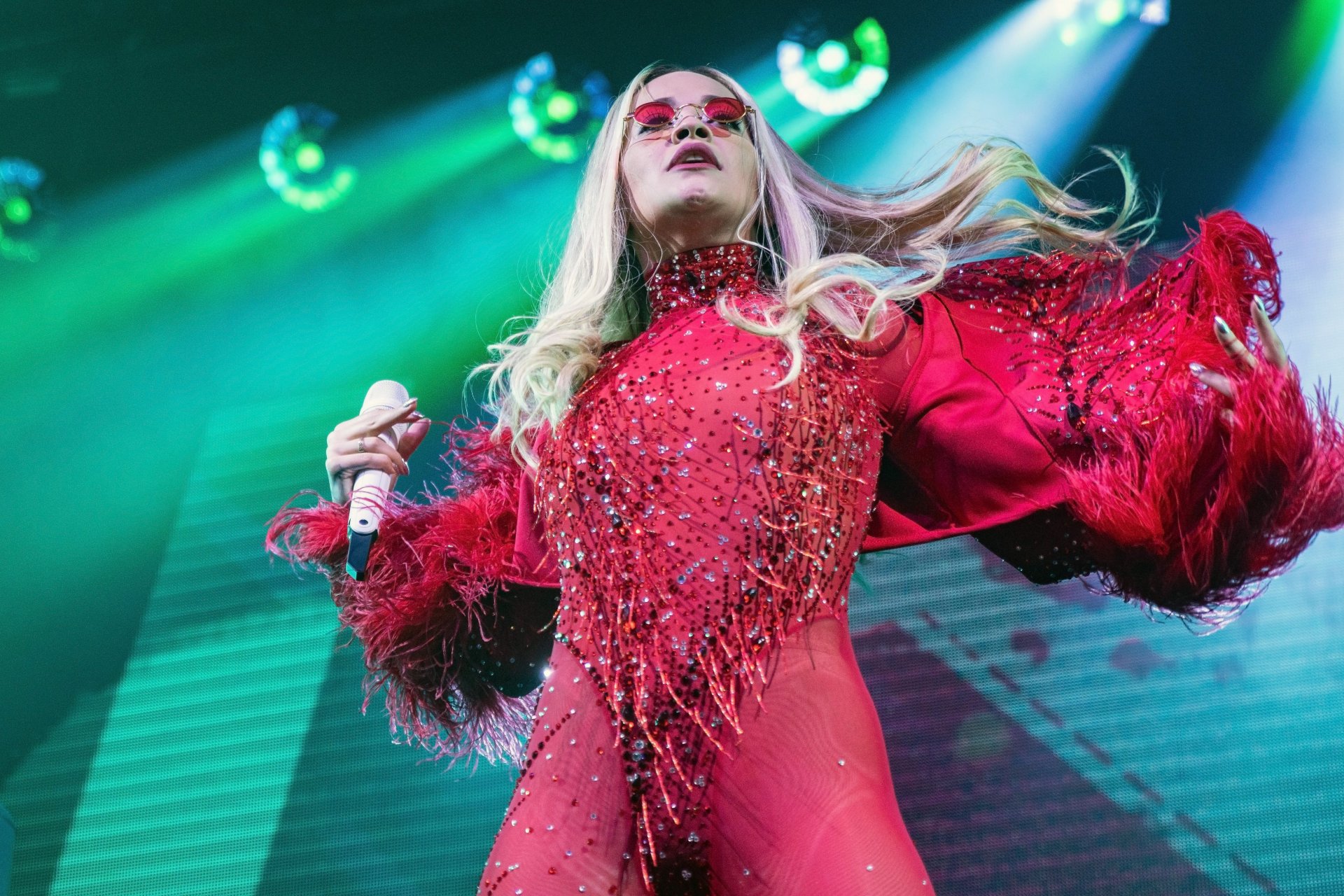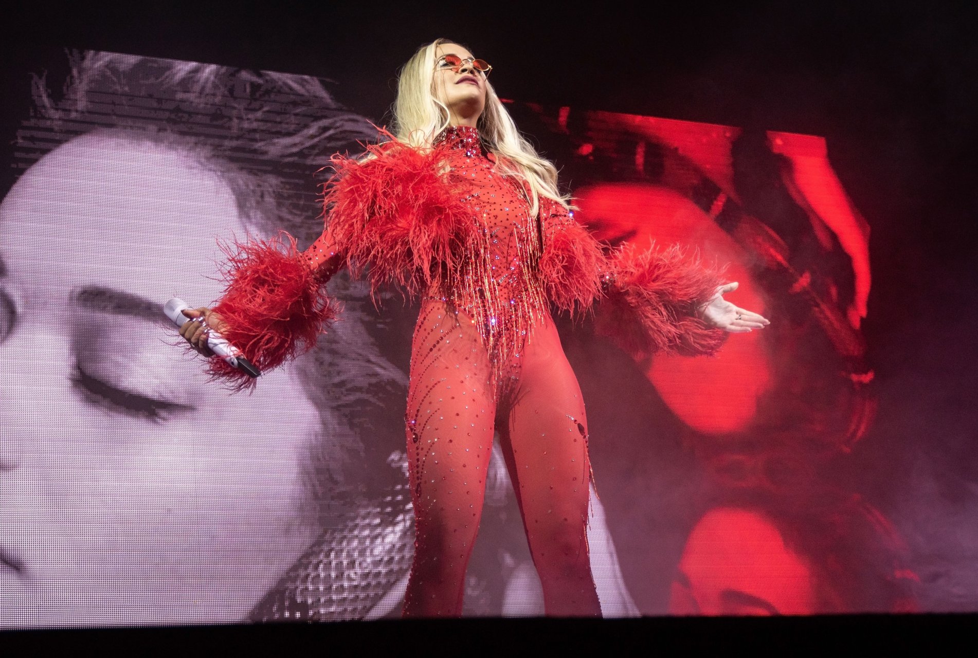 Rita Ora actuó en el concierto durante una gira con entradas agotadas por todo el Reino Unido en la O2 Academy de Leeds, 05/12/2018. La cantante británica de 27 años lució increíble al aparecer en el escenario para sus fans con un ajustado conjunto rojo.