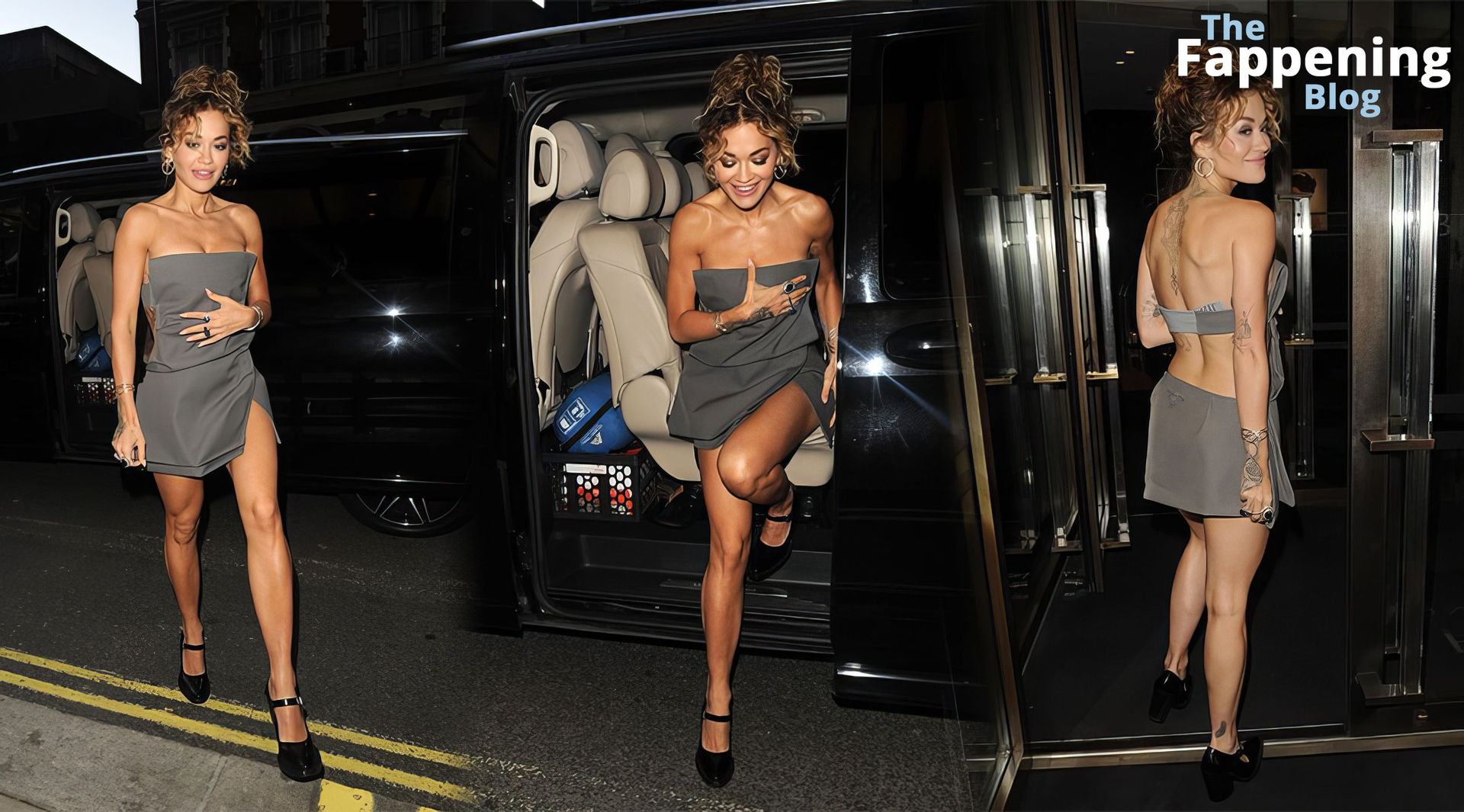 Las piernas y el escote de Rita Ora se ven absolutamente impresionantes con su nuevo vestido mini sin tirantes. ¿Quién más ama este look?