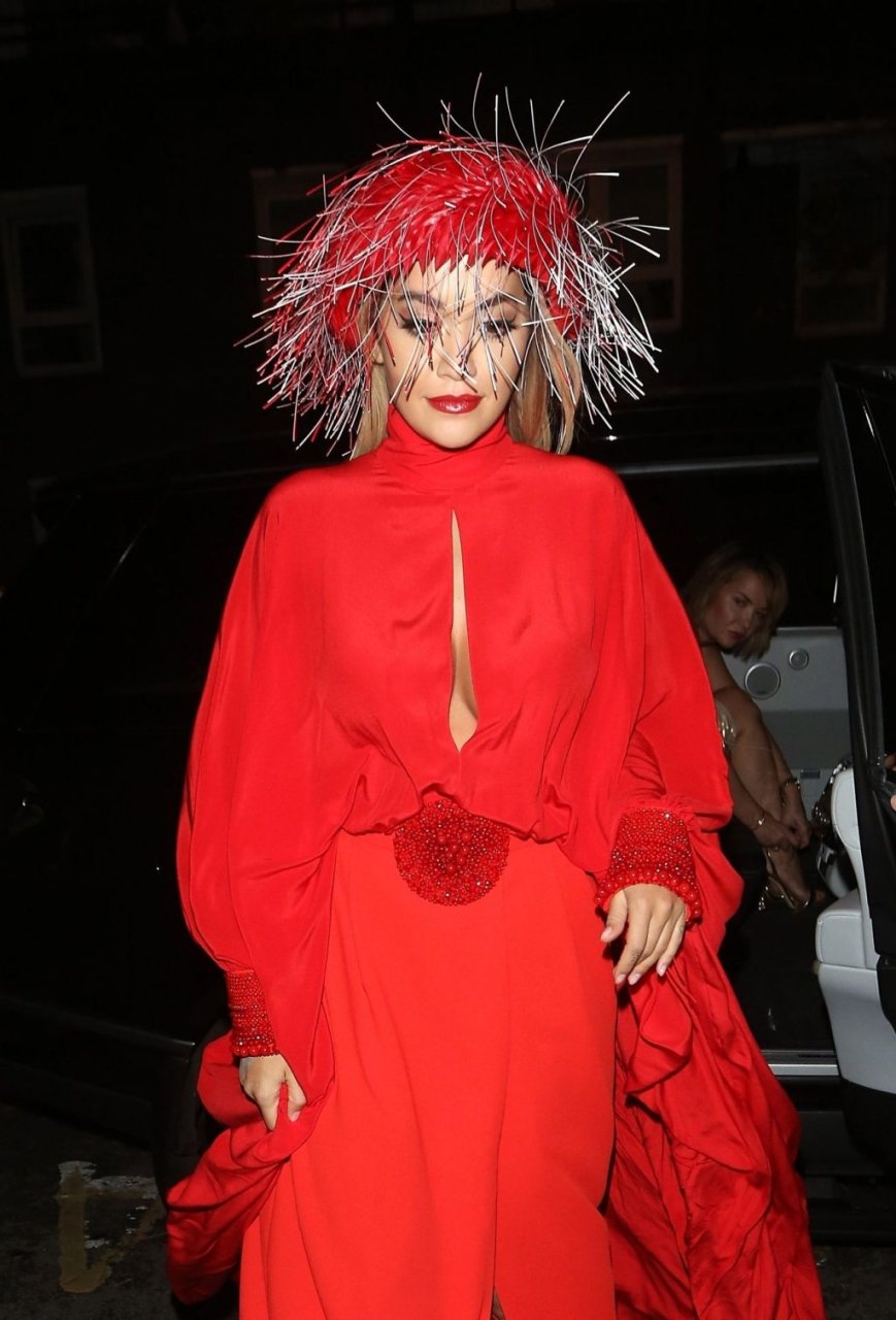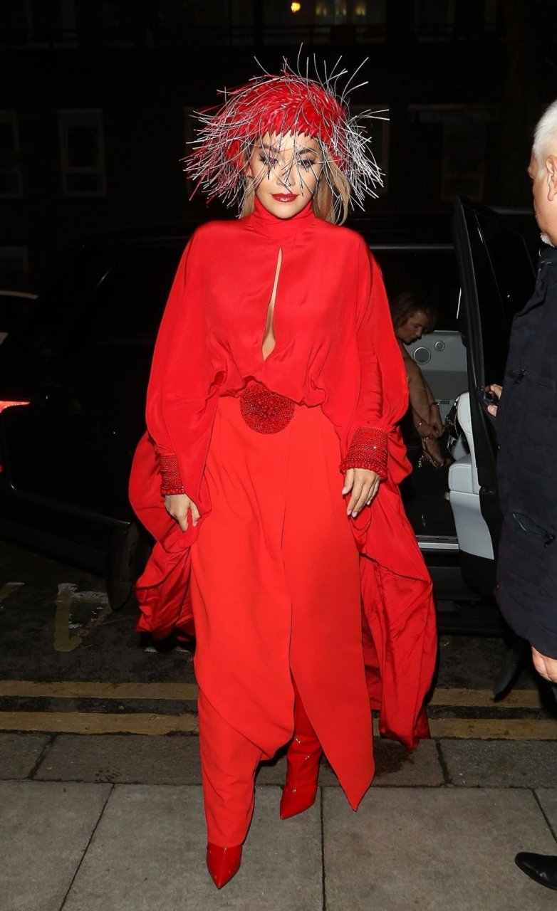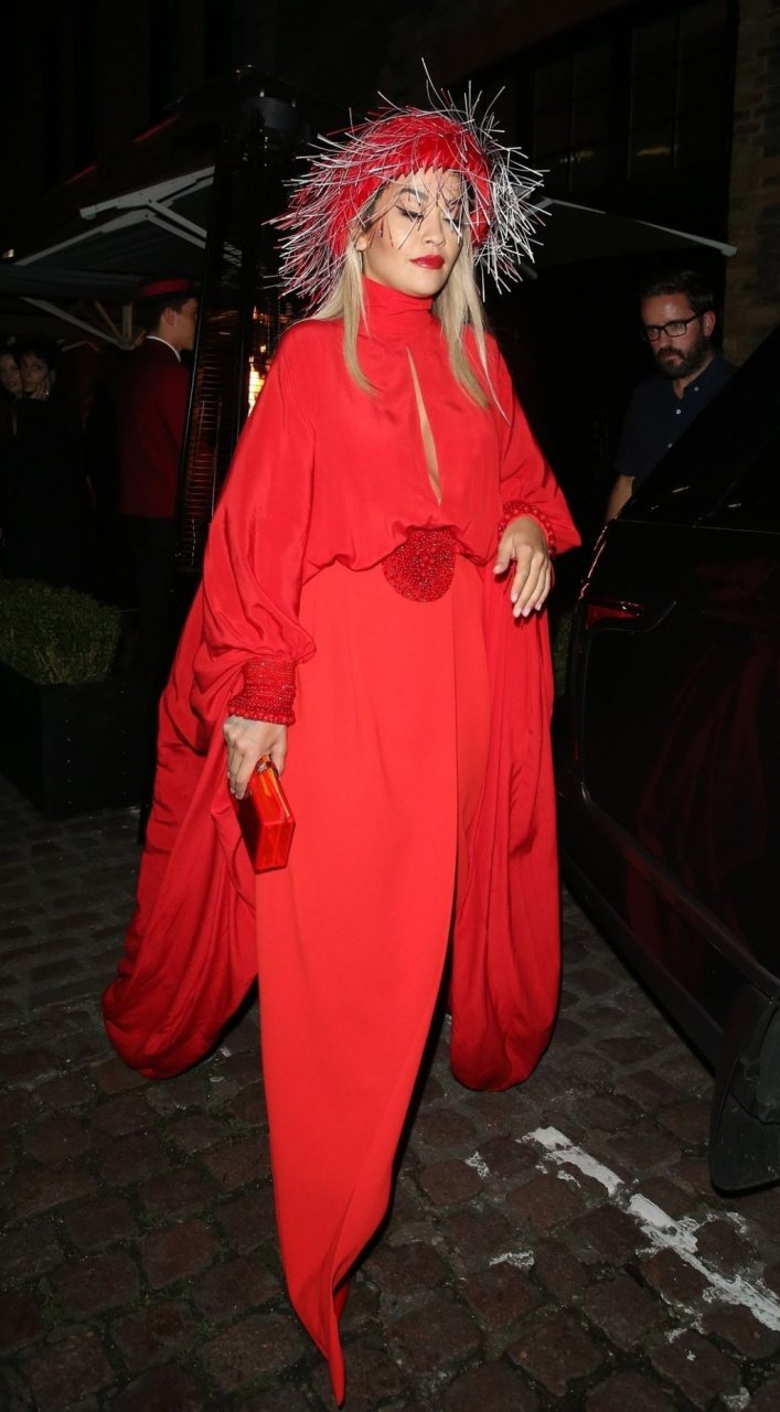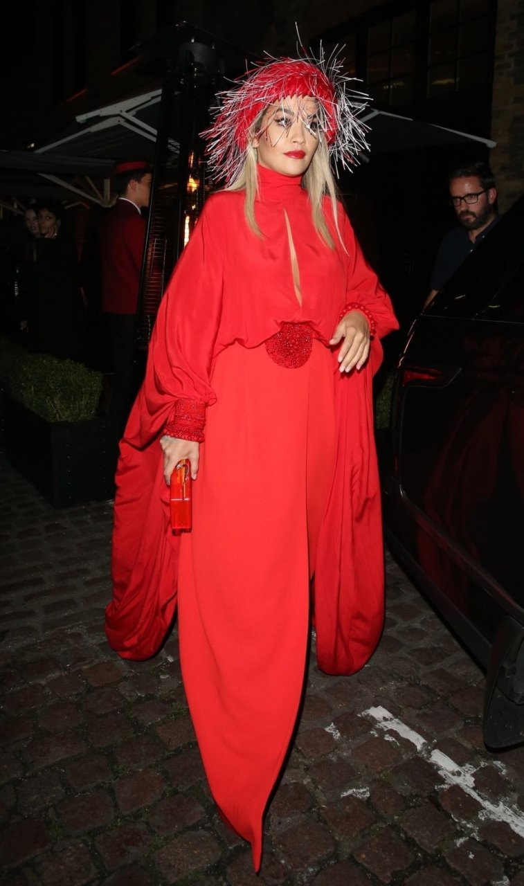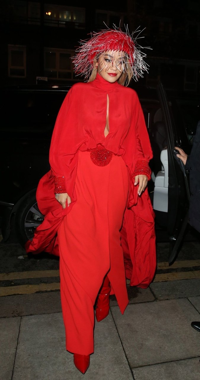 Rita Ora llega a la Celebración de Cartier en Londres en The Chiltern Firehouse en Londres, donde actuó en la fiesta, 21/10/2019. También se vio a Rita saliendo del Chiltern Firehouse de la mano de su madre Vera Sahatciu.