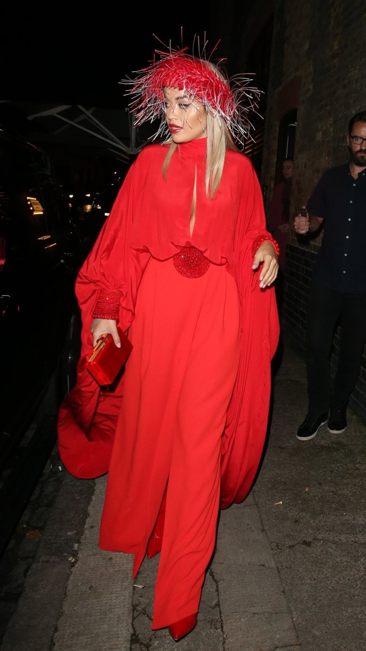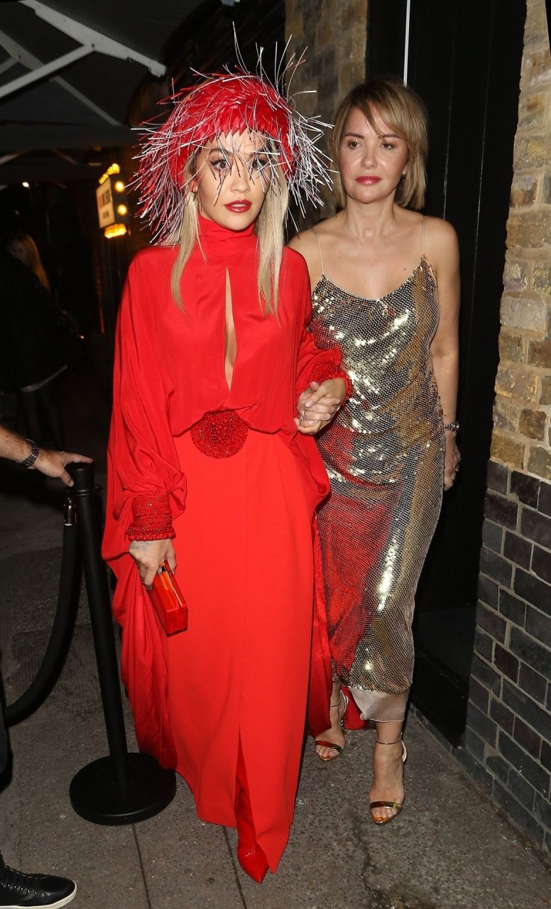 Rita Ora llega a la Celebración de Cartier en Londres en The Chiltern Firehouse en Londres, donde actuó en la fiesta, 21/10/2019. También se vio a Rita saliendo del Chiltern Firehouse de la mano de su madre Vera Sahatciu.