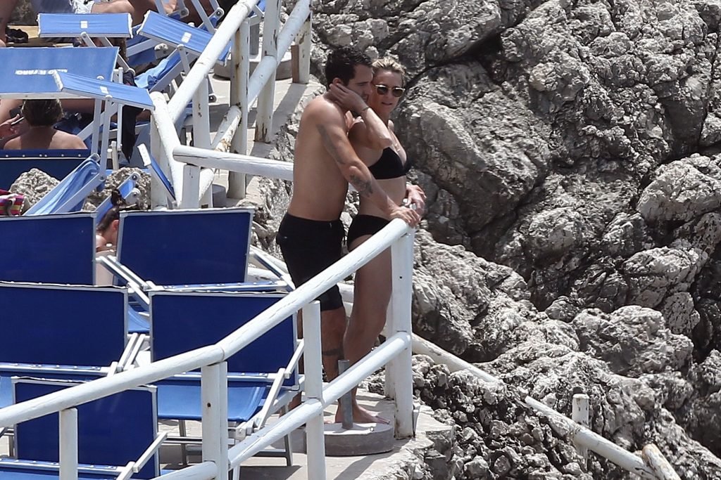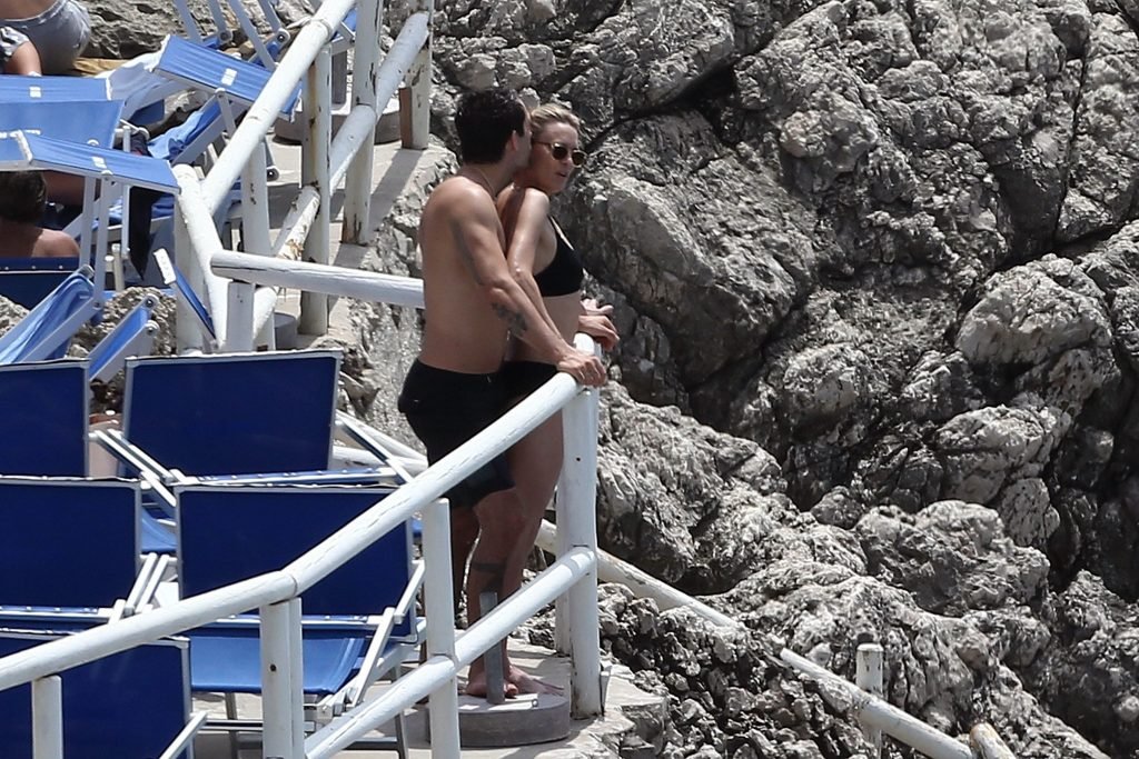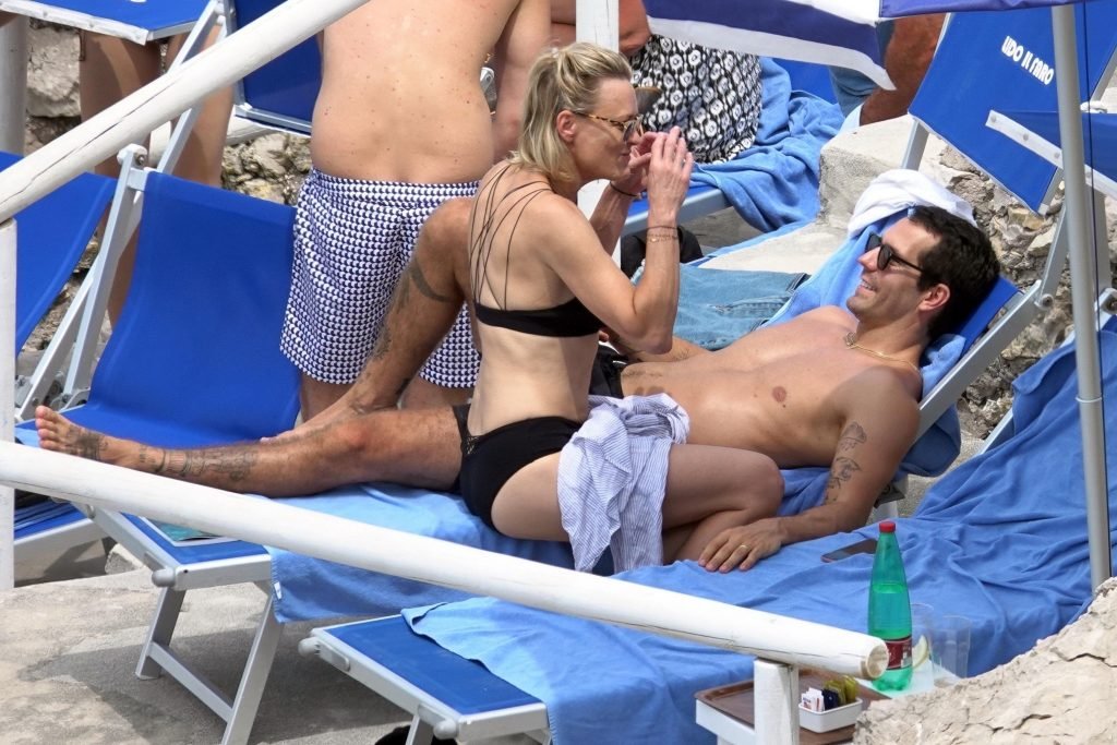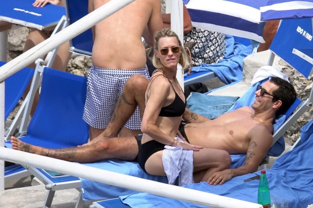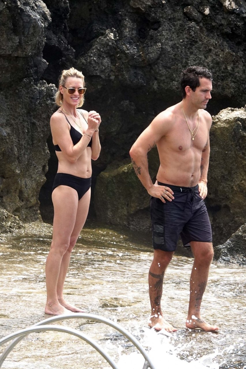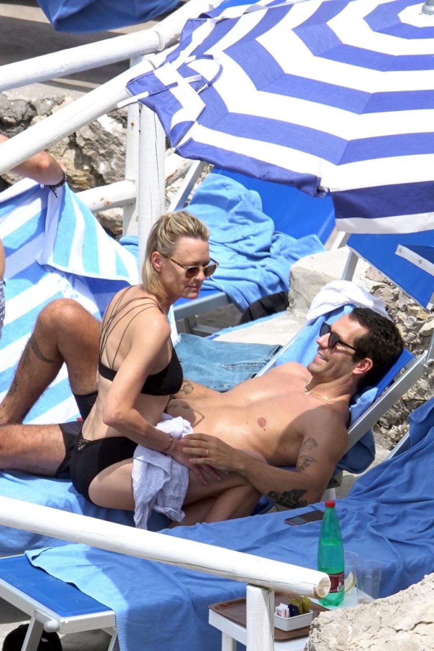 Robin Wright y el ejecutivo de Saint Laurent Clement Giraudet disfrutan de unas vacaciones románticas juntos. La pareja se muestra luciendo sus cuerpos en traje de baño mientras disfrutan del área de piscina de su hotel, e incluso se muestran cariñosos con abrazos y besos, 22/07/2018.