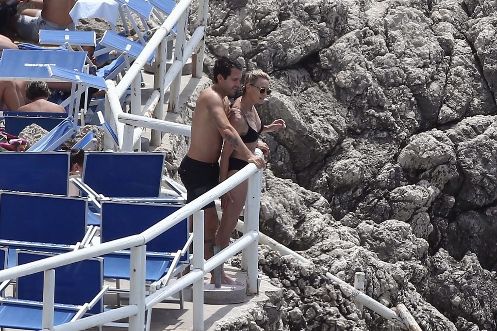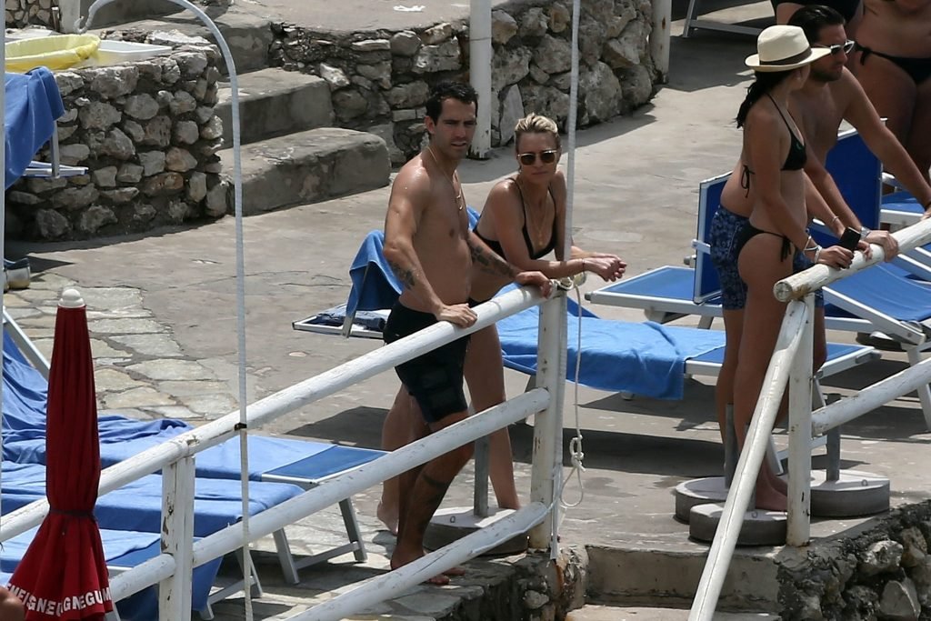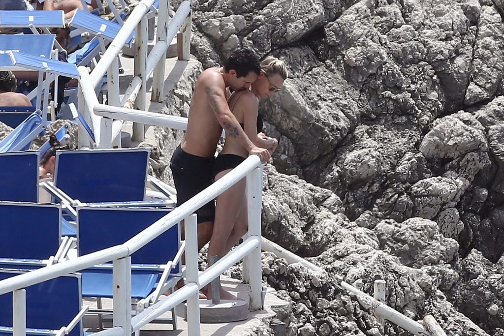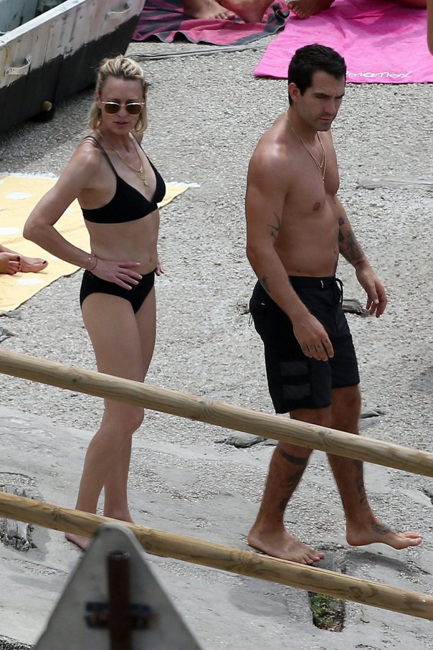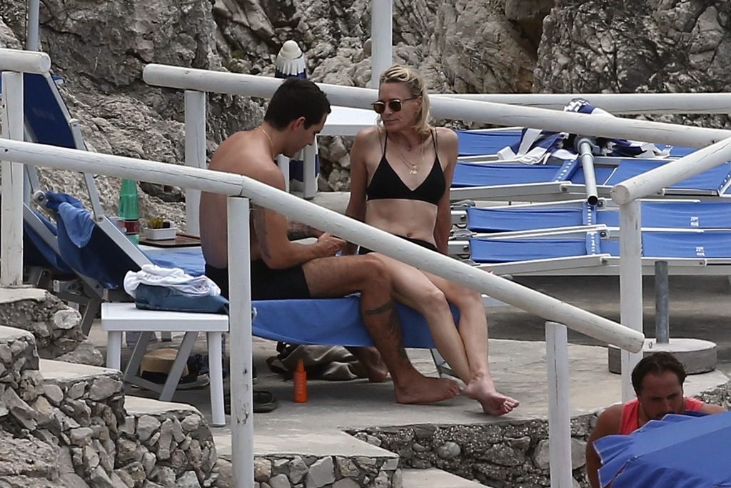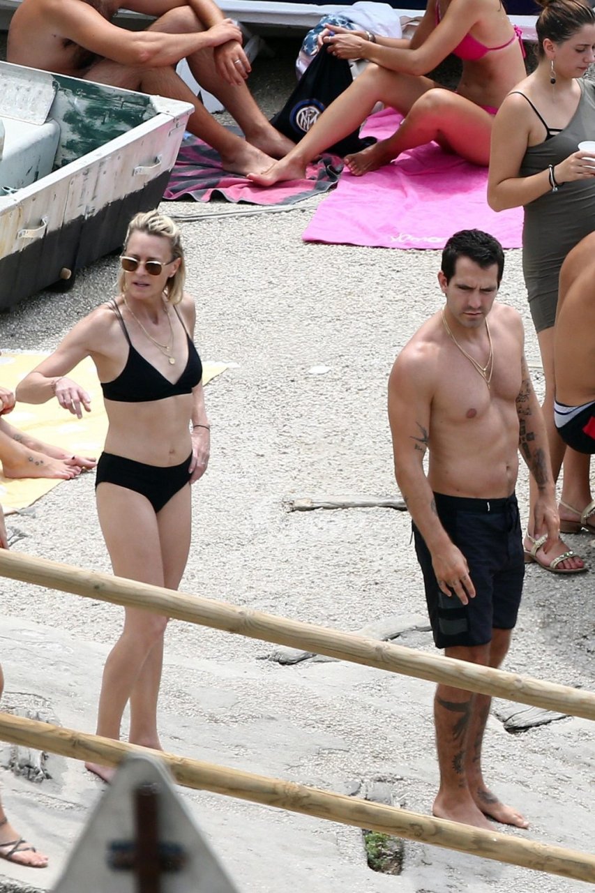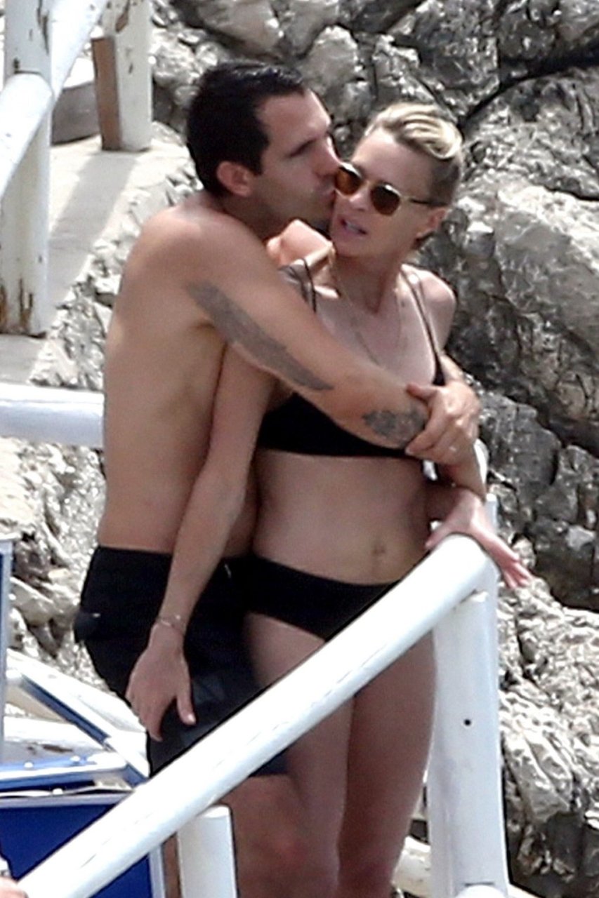 Robin Wright y el ejecutivo de Saint Laurent Clement Giraudet disfrutan de unas vacaciones románticas juntos. La pareja se muestra luciendo sus cuerpos en traje de baño mientras disfrutan del área de piscina de su hotel, e incluso se muestran cariñosos con abrazos y besos, 22/07/2018.