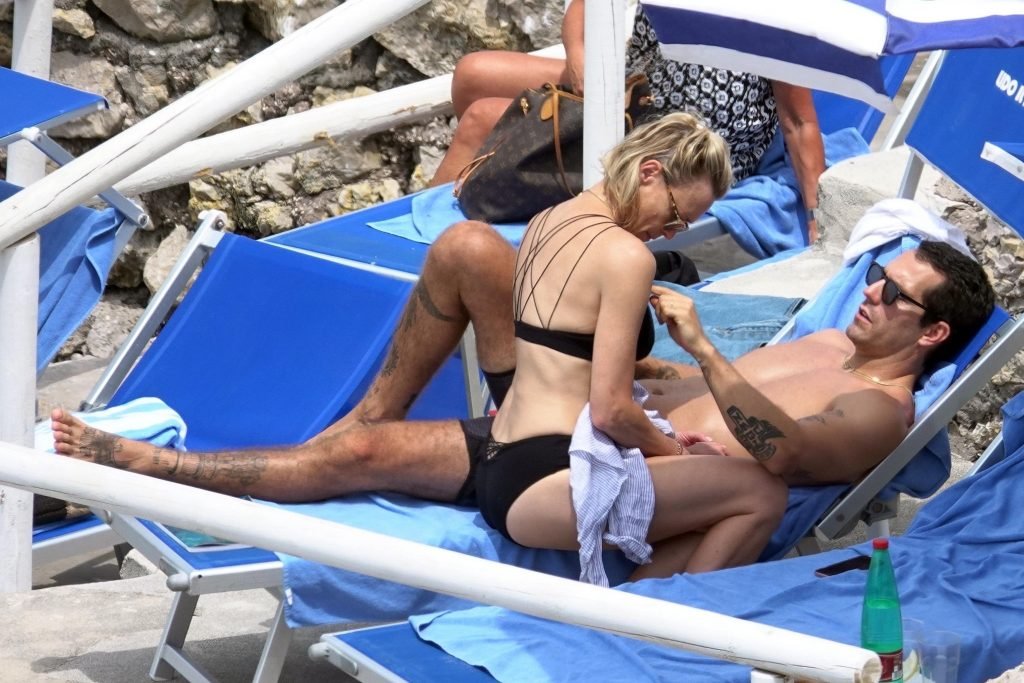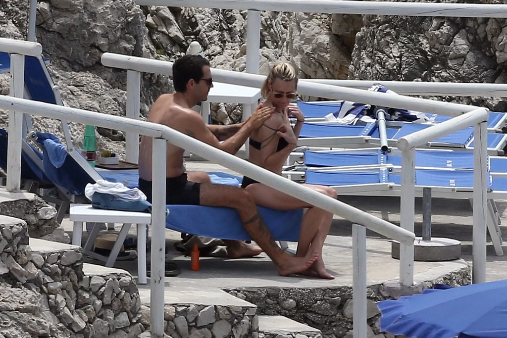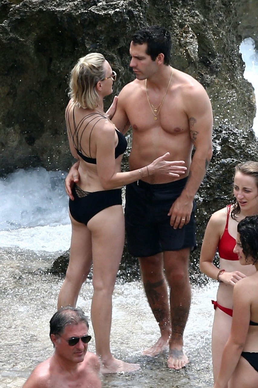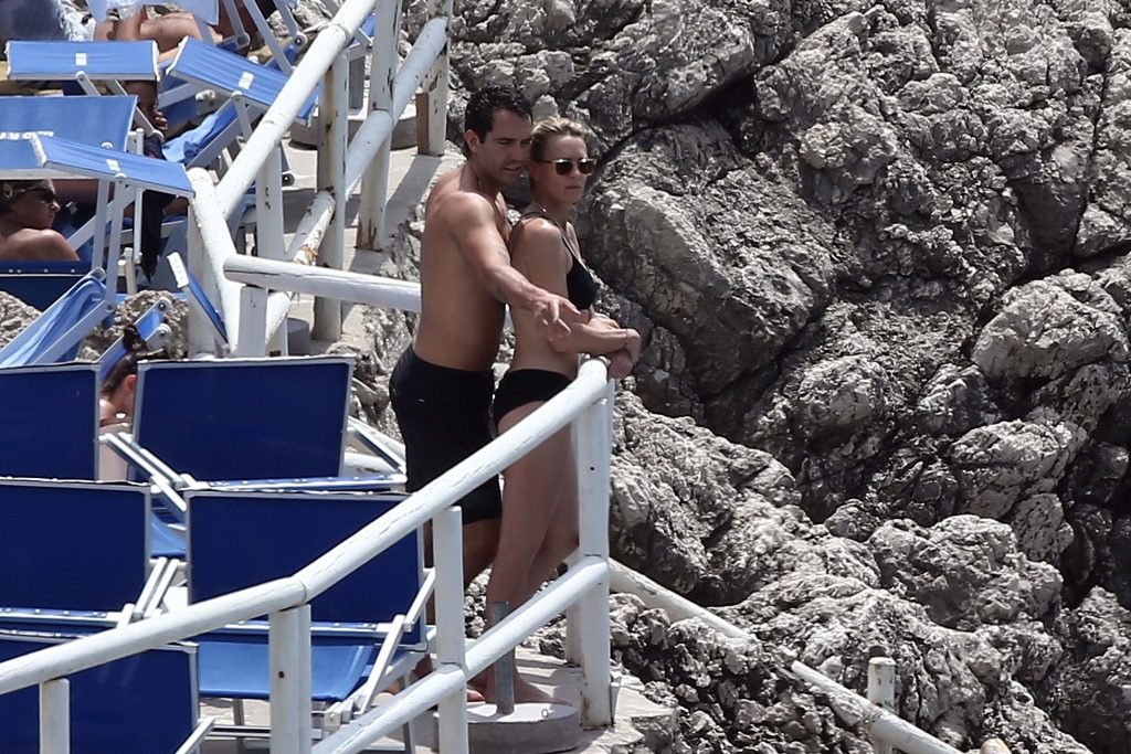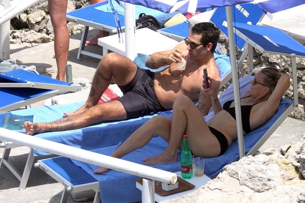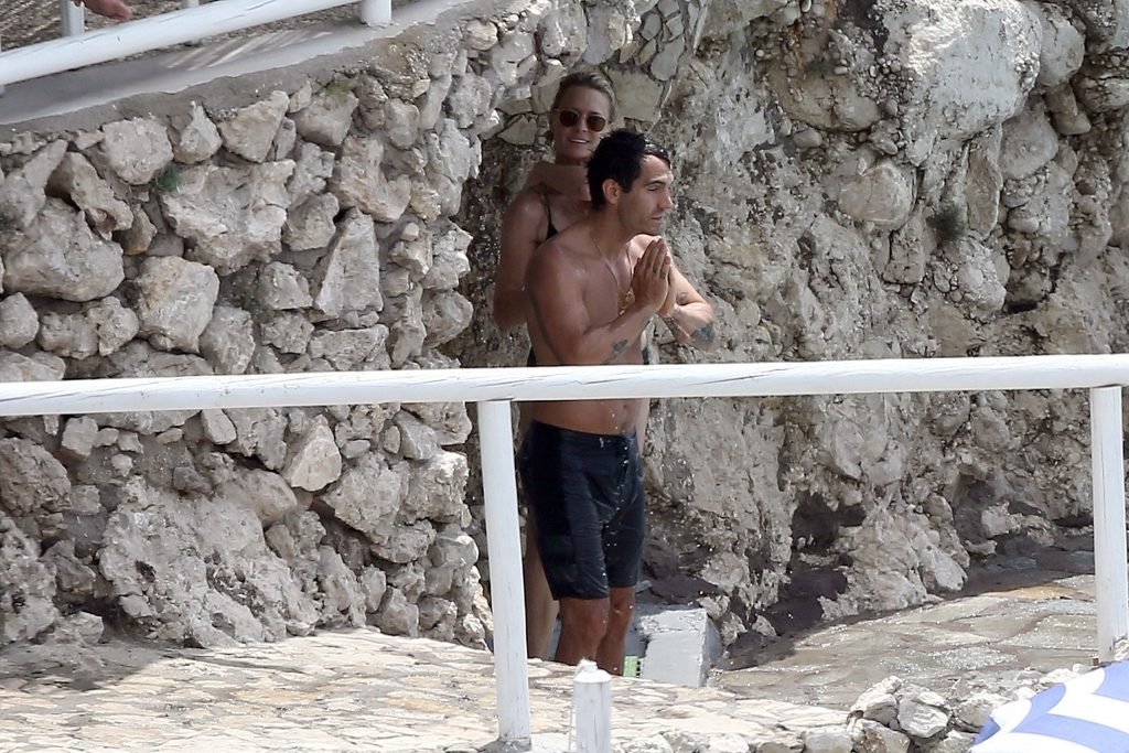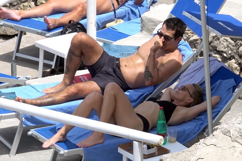 Robin Wright y el ejecutivo de Saint Laurent Clement Giraudet disfrutan de unas vacaciones románticas juntos. La pareja se muestra luciendo sus cuerpos en traje de baño mientras disfrutan del área de piscina de su hotel, e incluso se muestran cariñosos con abrazos y besos, 22/07/2018.