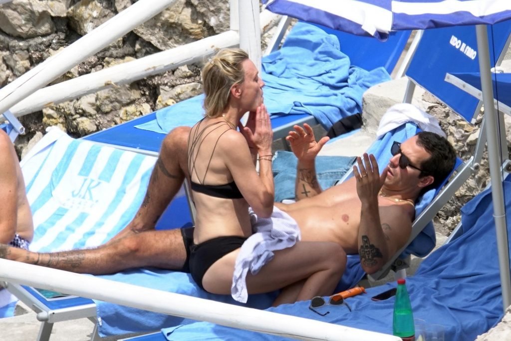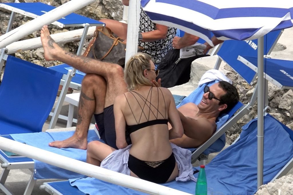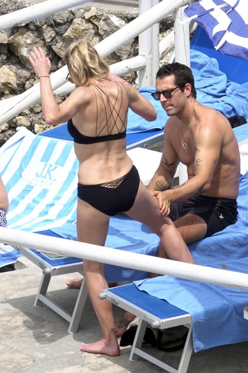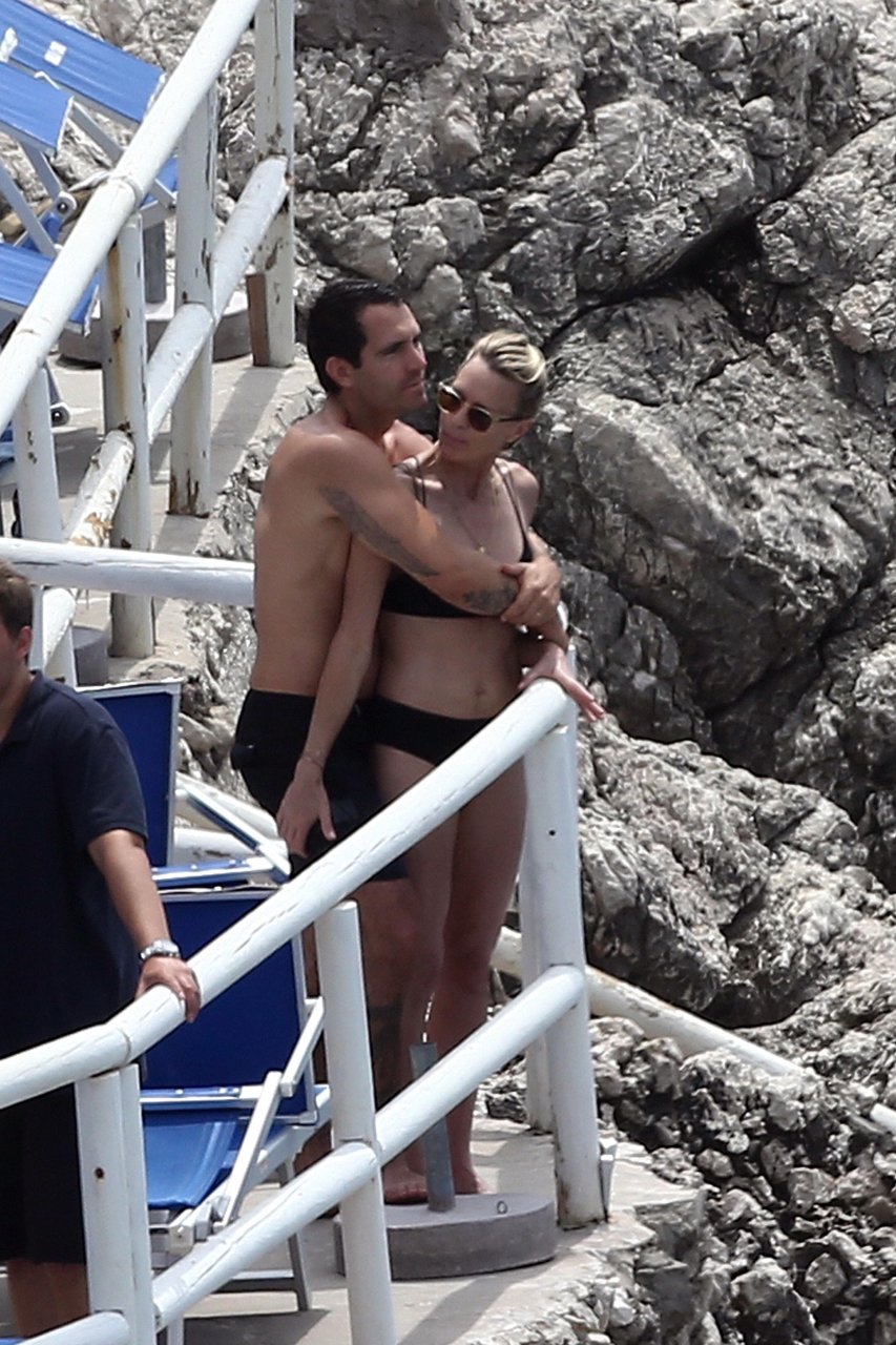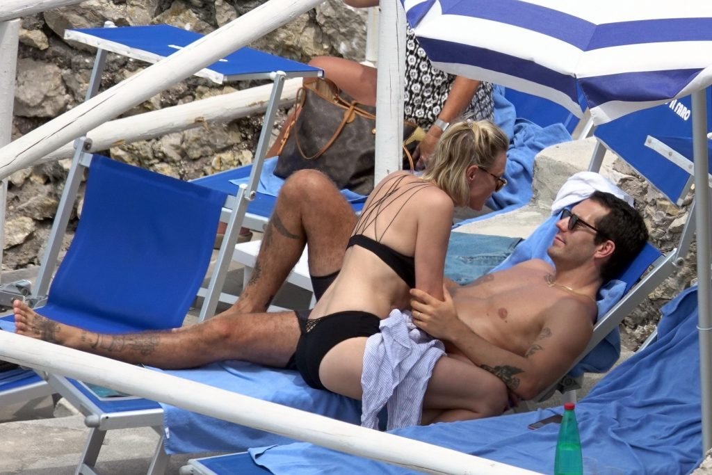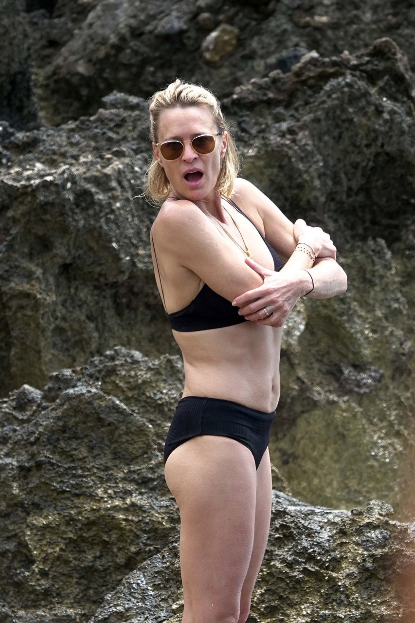Robin Wright y el ejecutivo de Saint Laurent Clement Giraudet disfrutan de unas vacaciones románticas juntos. La pareja se muestra luciendo sus cuerpos en traje de baño mientras disfrutan del área de piscina de su hotel, e incluso se muestran cariñosos con abrazos y besos, 22/07/2018.