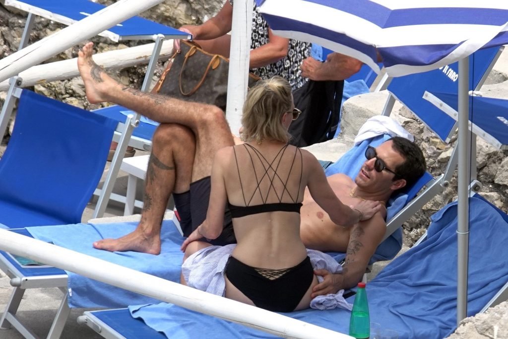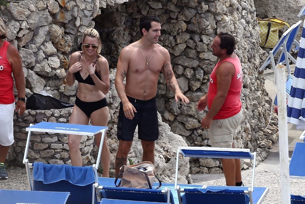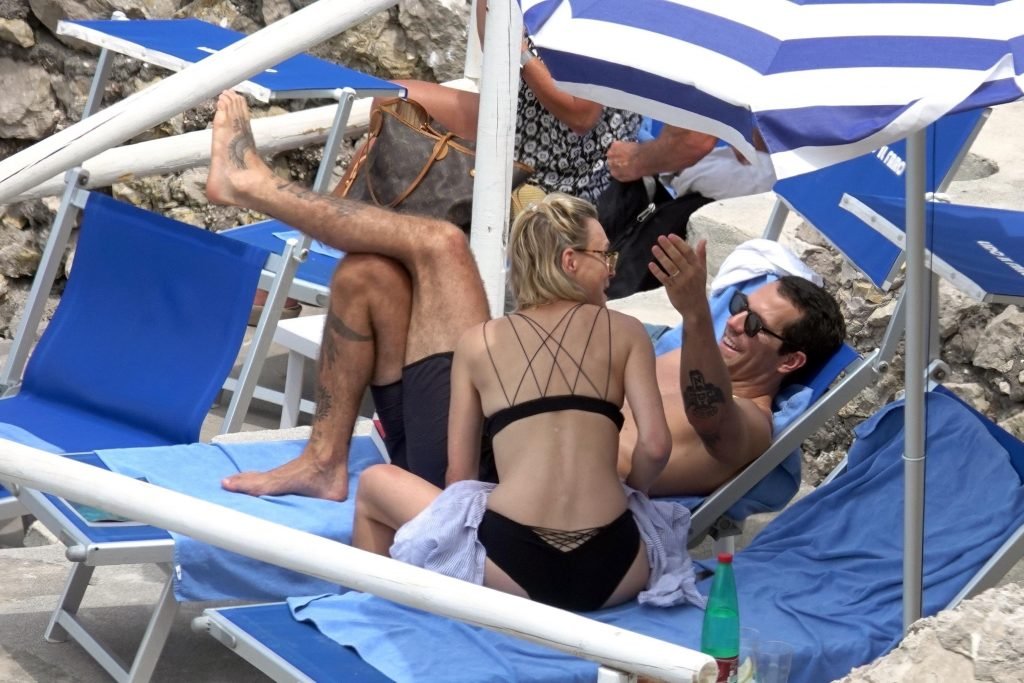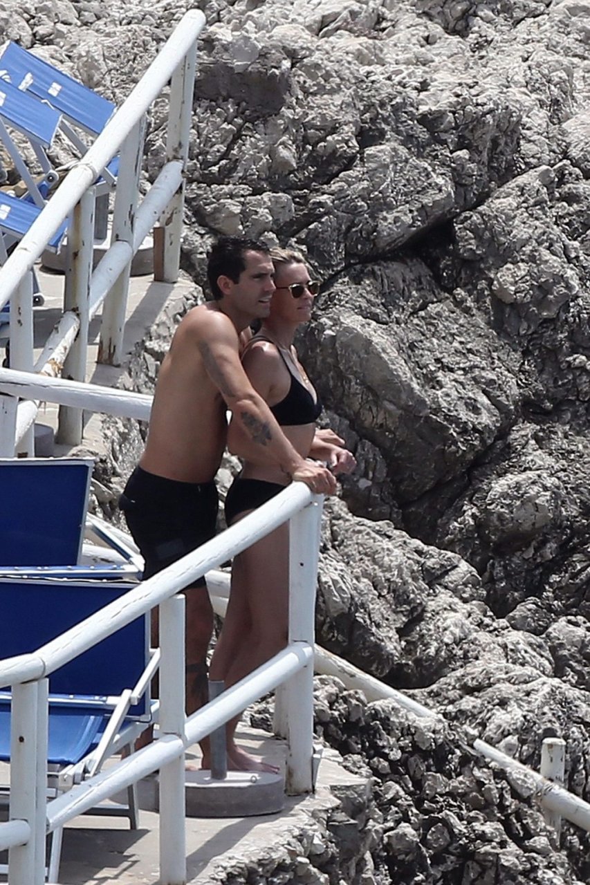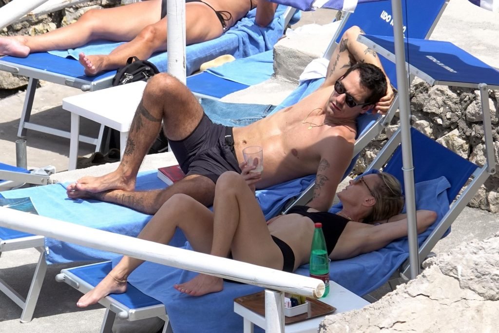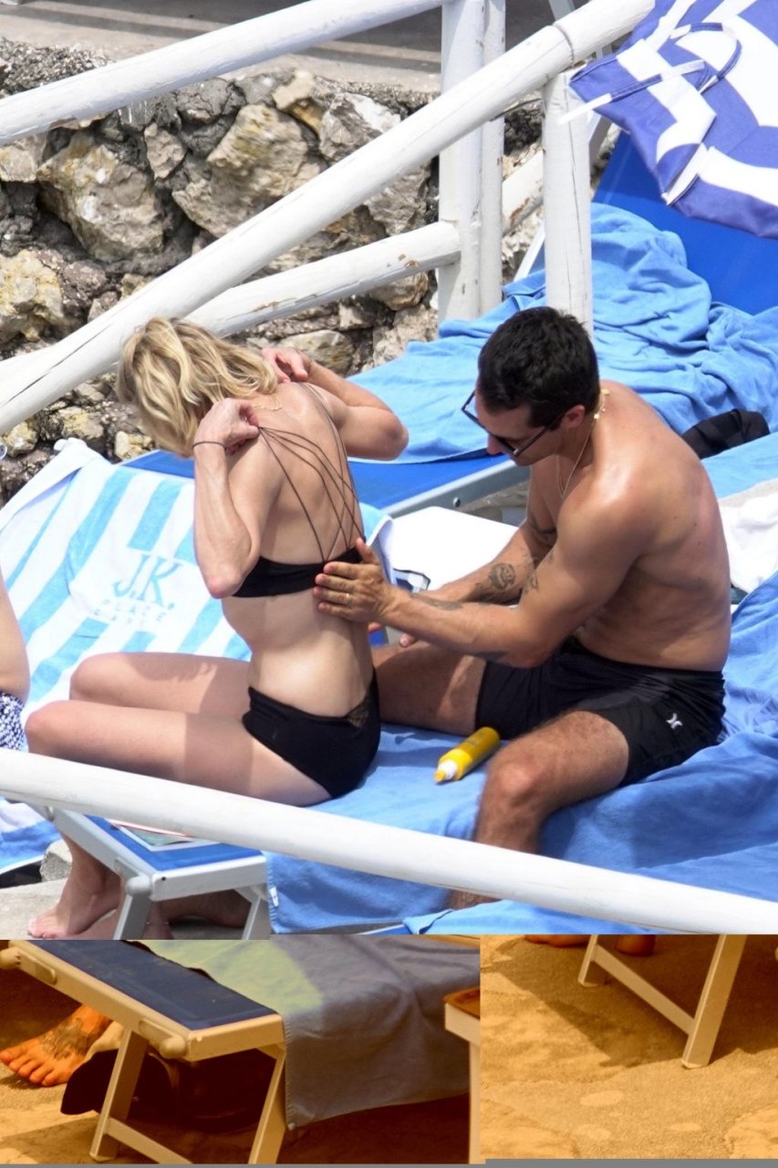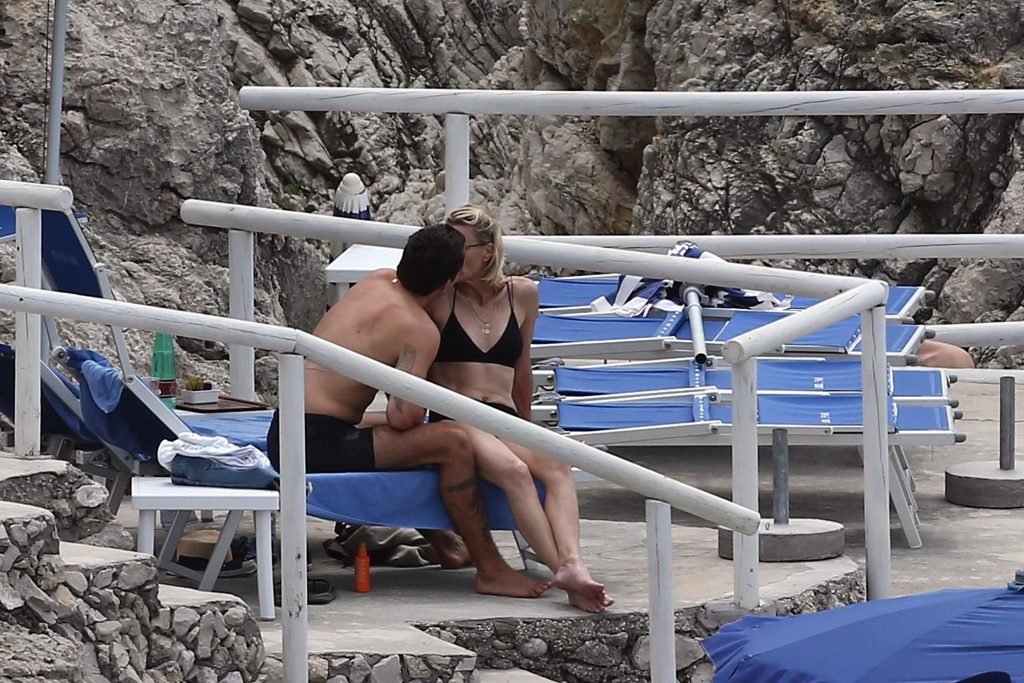 Robin Wright y el ejecutivo de Saint Laurent Clement Giraudet disfrutan de unas vacaciones románticas juntos. La pareja se muestra luciendo sus cuerpos en traje de baño mientras disfrutan del área de piscina de su hotel, e incluso se muestran cariñosos con abrazos y besos, 22/07/2018.