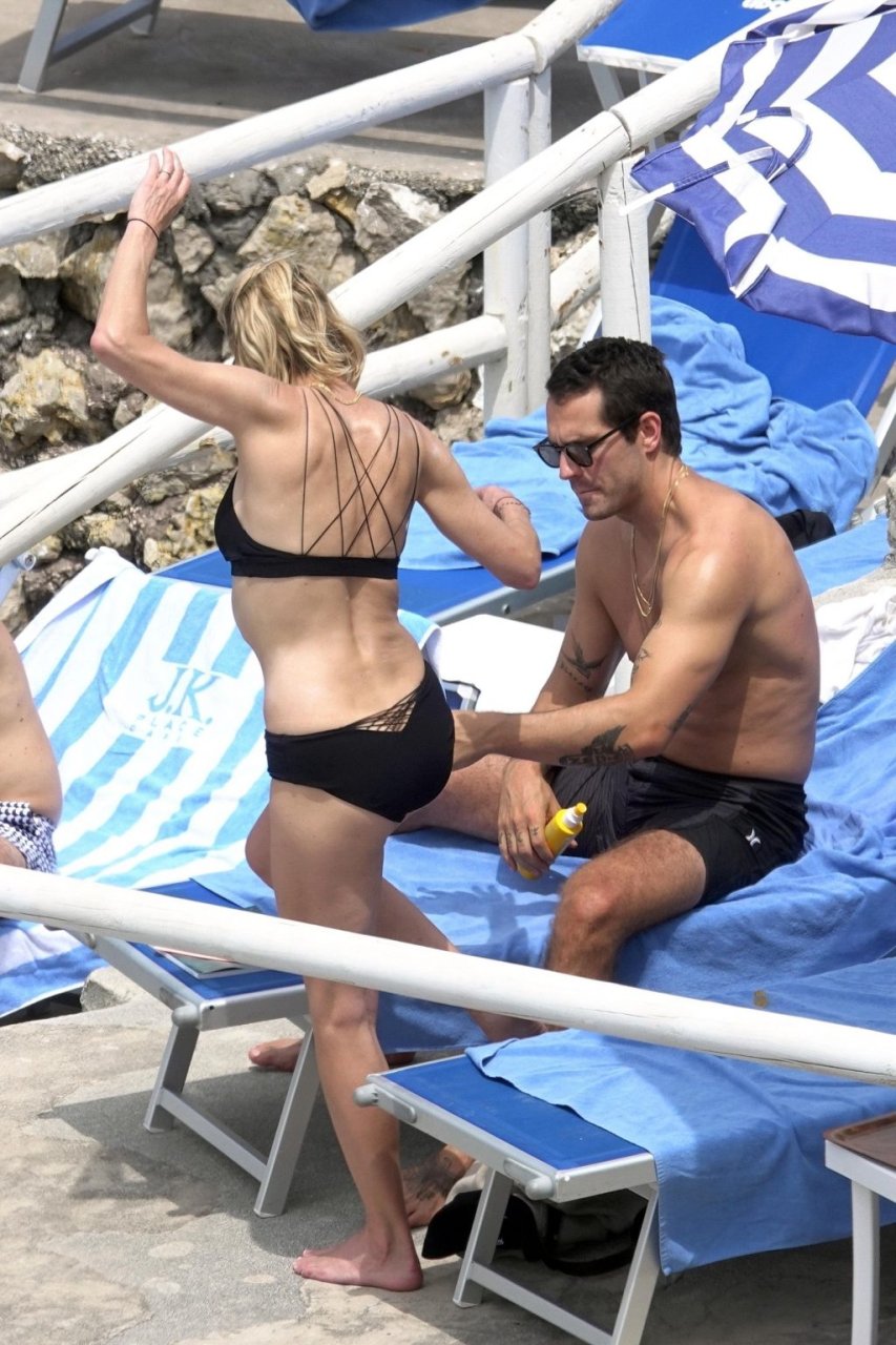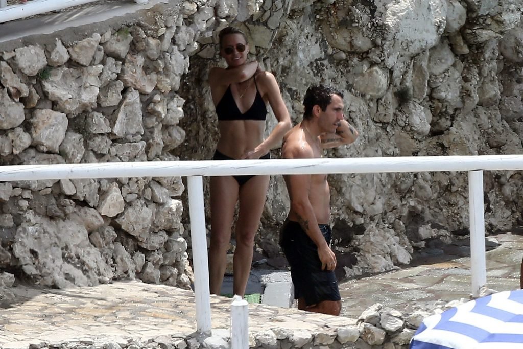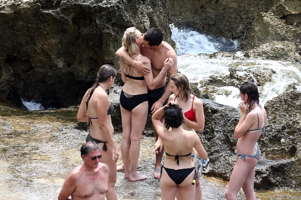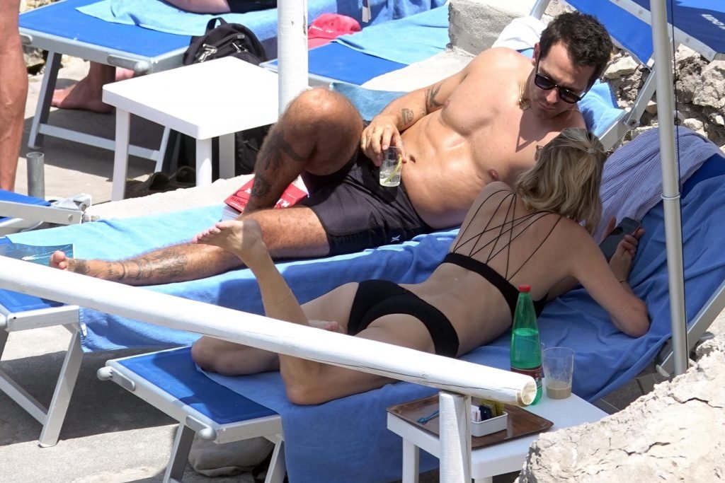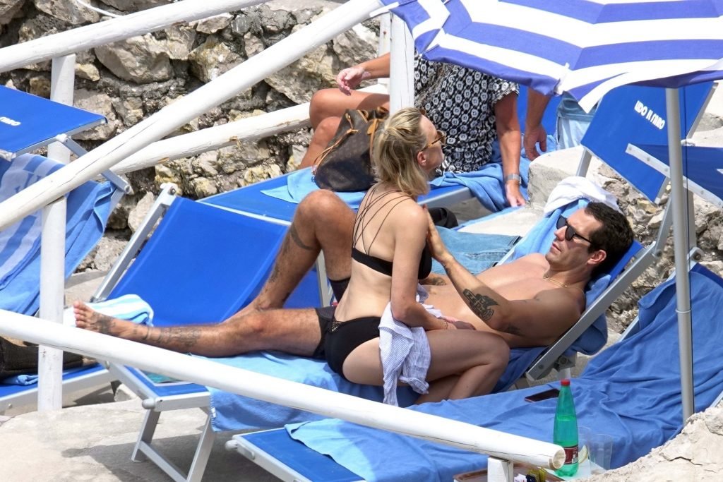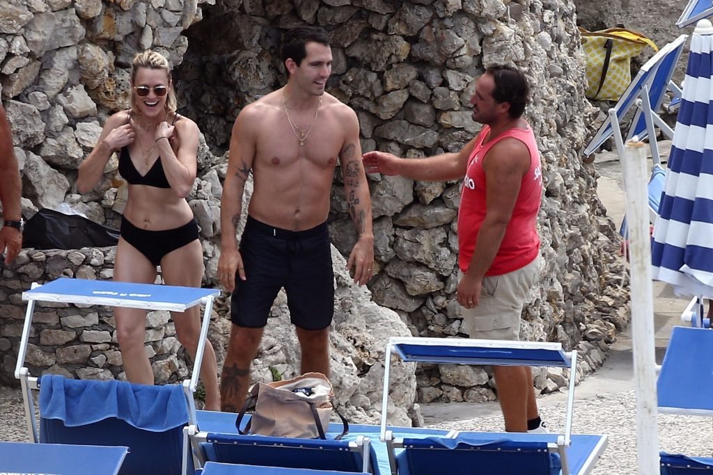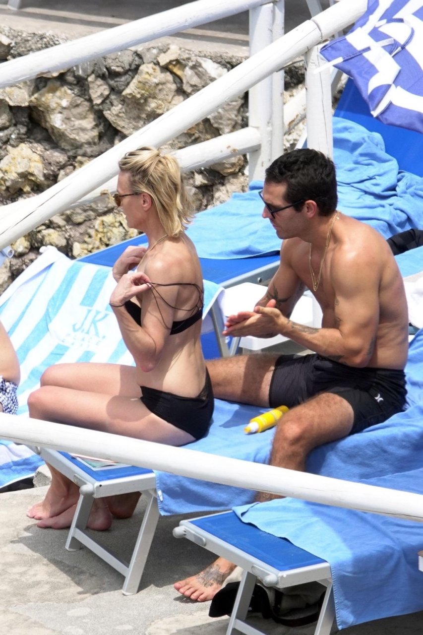 Robin Wright y el ejecutivo de Saint Laurent Clement Giraudet disfrutan de unas vacaciones románticas juntos. La pareja se muestra luciendo sus cuerpos en traje de baño mientras disfrutan del área de piscina de su hotel, e incluso se muestran cariñosos con abrazos y besos, 22/07/2018.