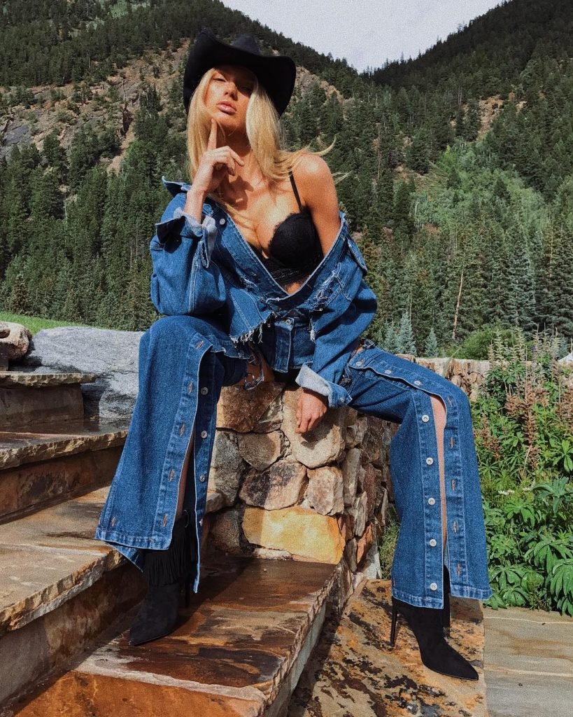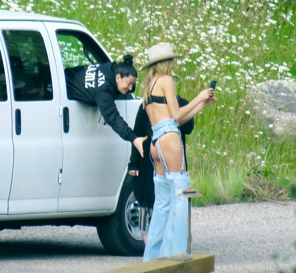 Supermodelo Romee Strijd fue vista usando un sexy atuendo de vaquera mientras filmaba para el próximo catálogo navideño de Victoria’s Secret en Aspen, 14/08/2017.
