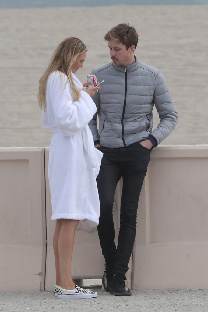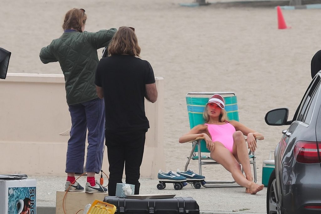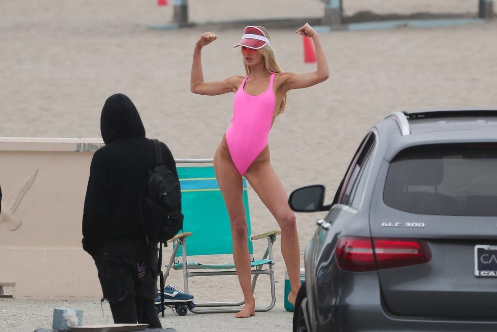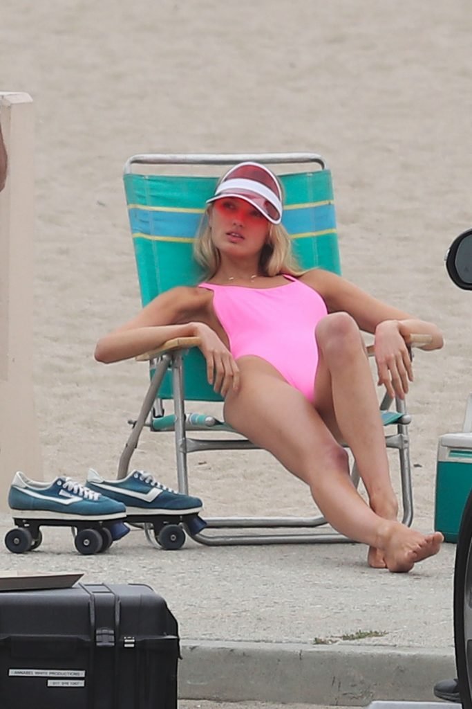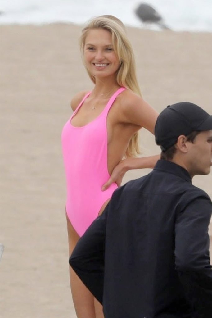 Modelo neerlandesa, el Ángel de Victoria’s Secret Romee Van Strijd (22) posa en la playa para una sesión de fotos en Malibu, 13/05/2018. Romee mostraba su cuerpo tonificado con un traje de baño rosa.