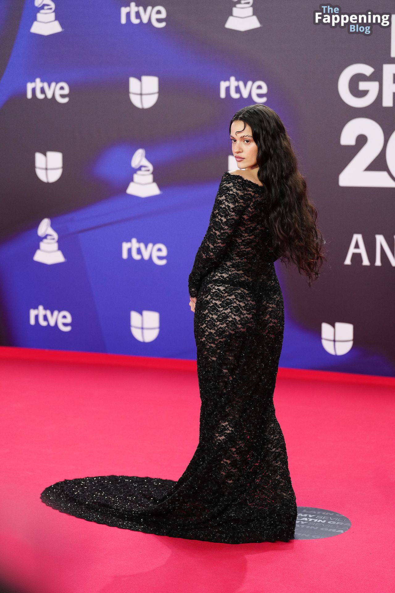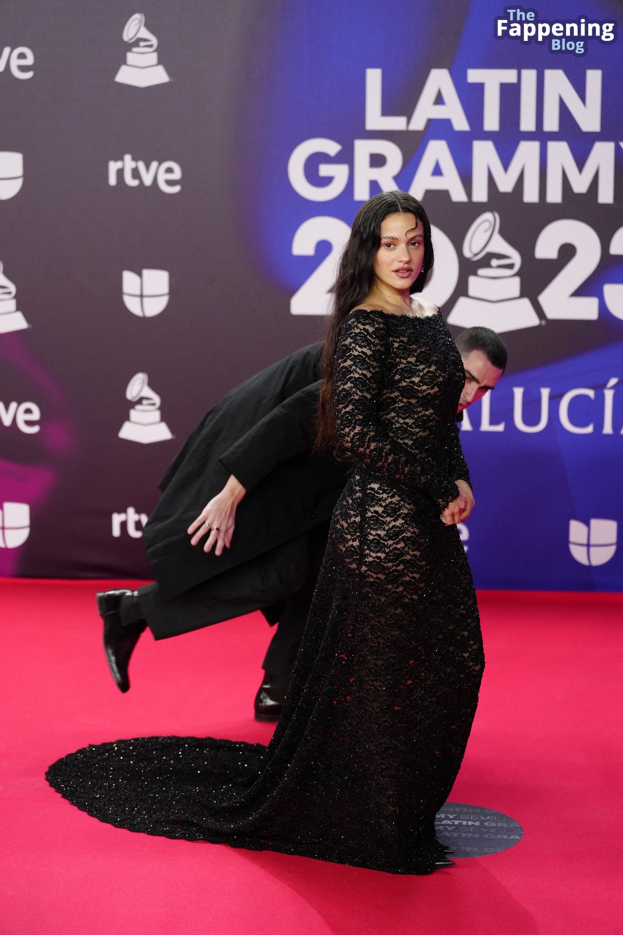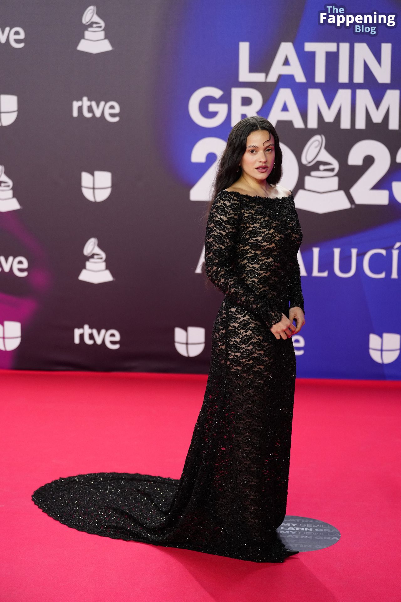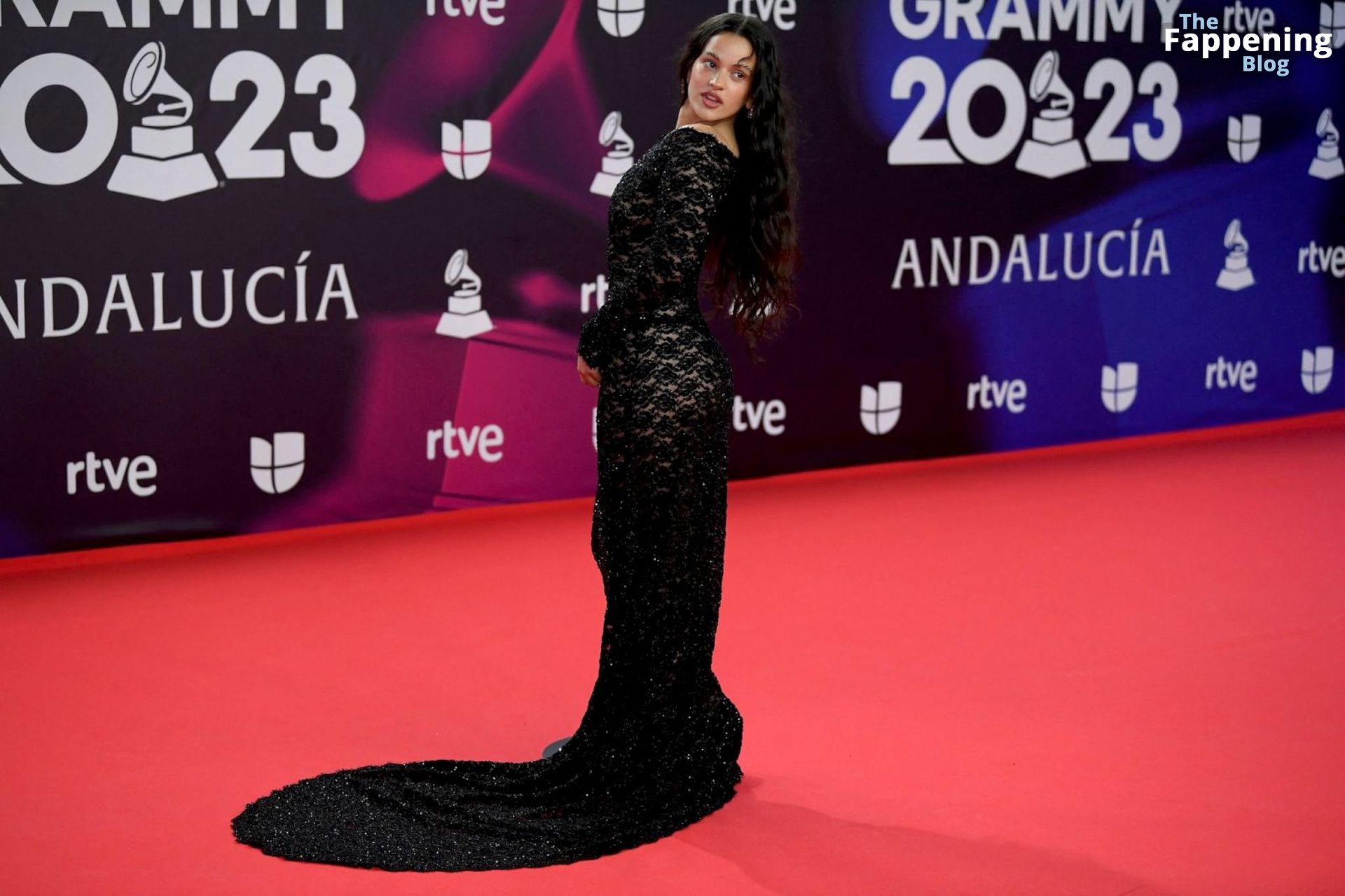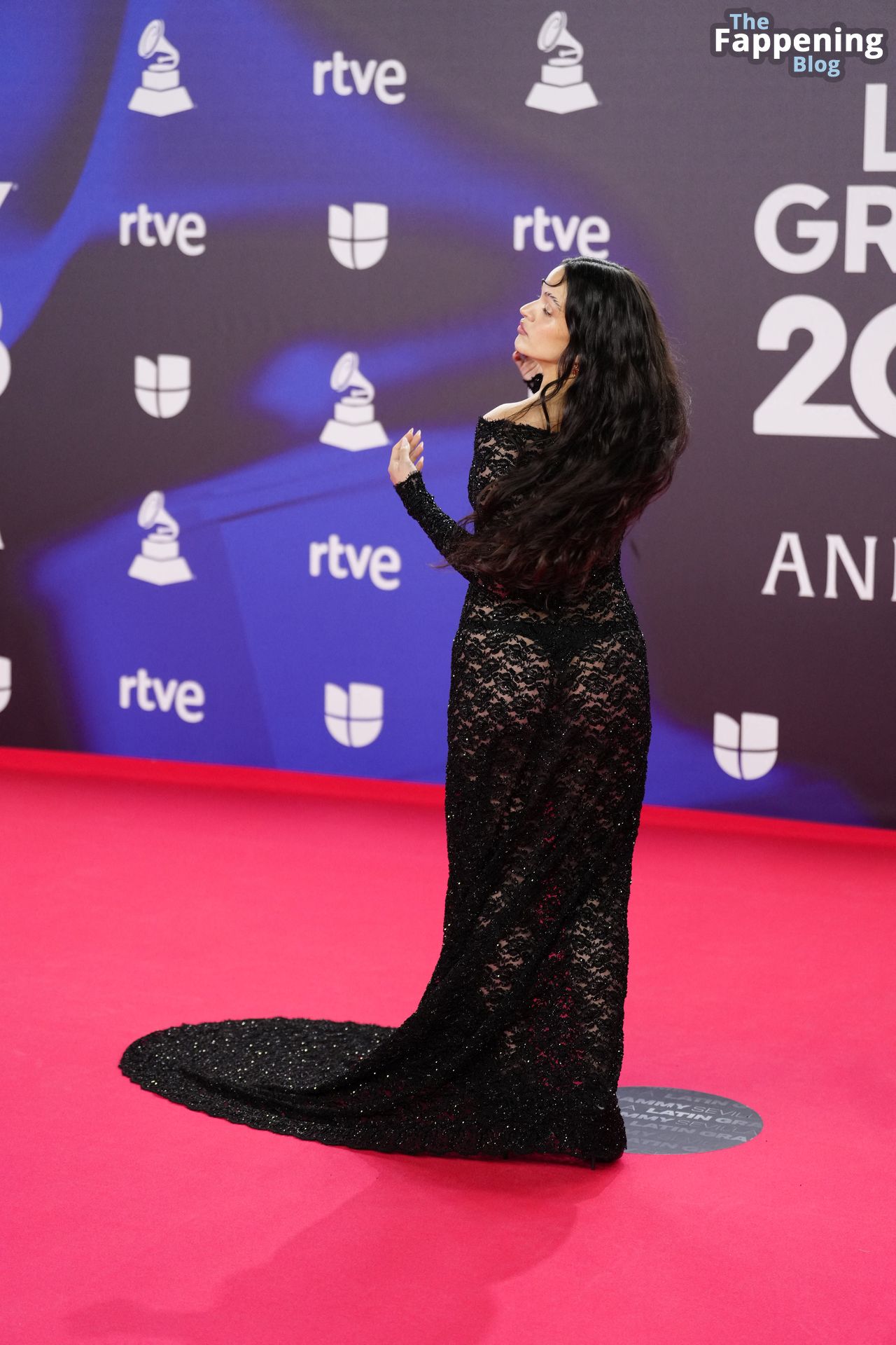 Prepárate para sorprenderte con el estilo impresionante de Rosalia en los Latin GRAMMY Awards en Sevilla. Ella luce un vestido negro transparente que deja ver una sexy tanga negra y un trasero absolutamente espectacular. La sesión de fotos en la entrada del evento estaba llena de celebridades mostrando su presencia.