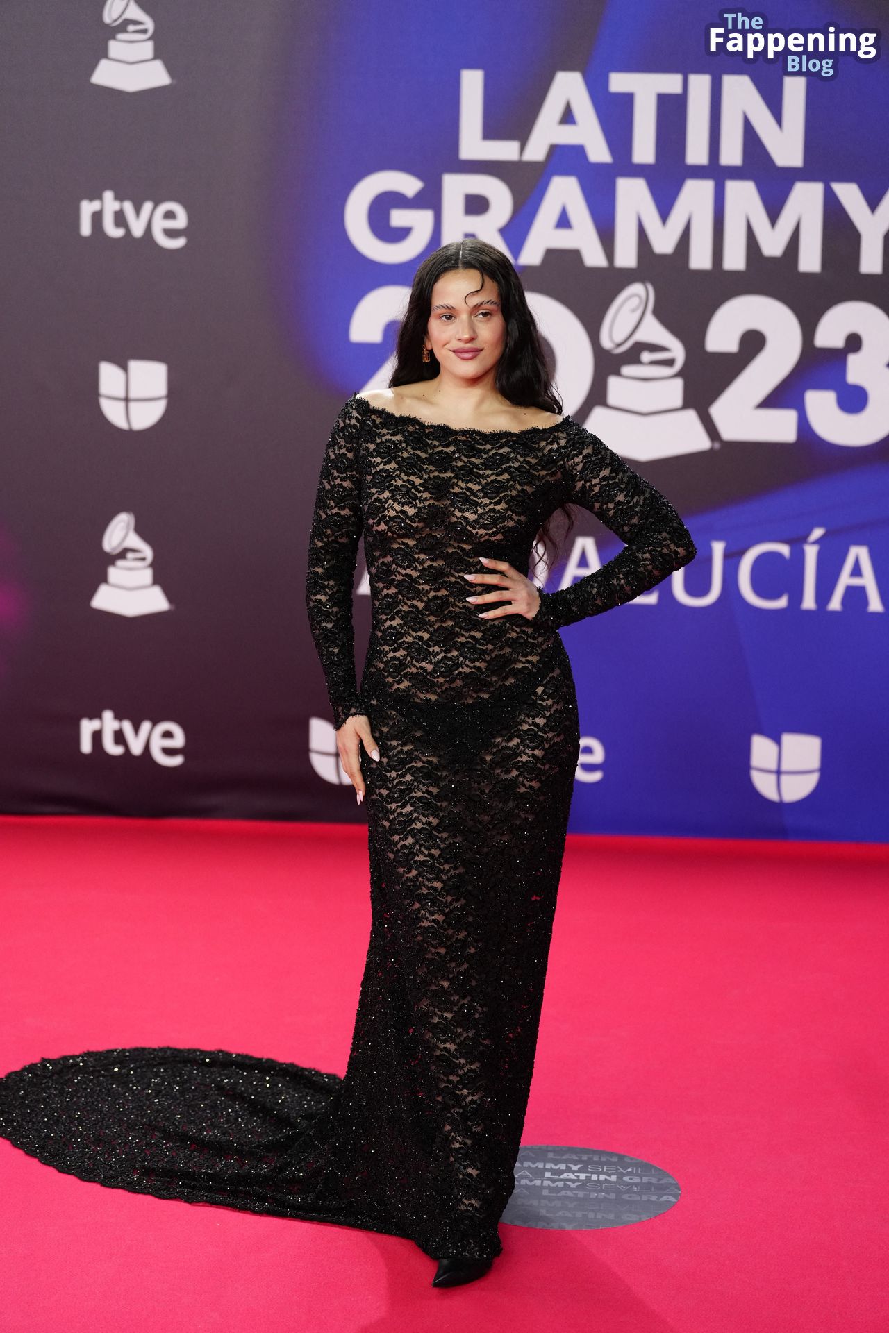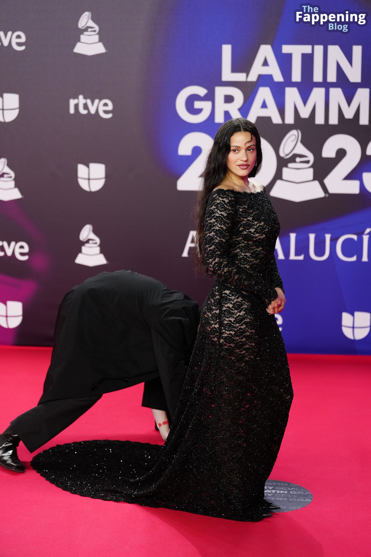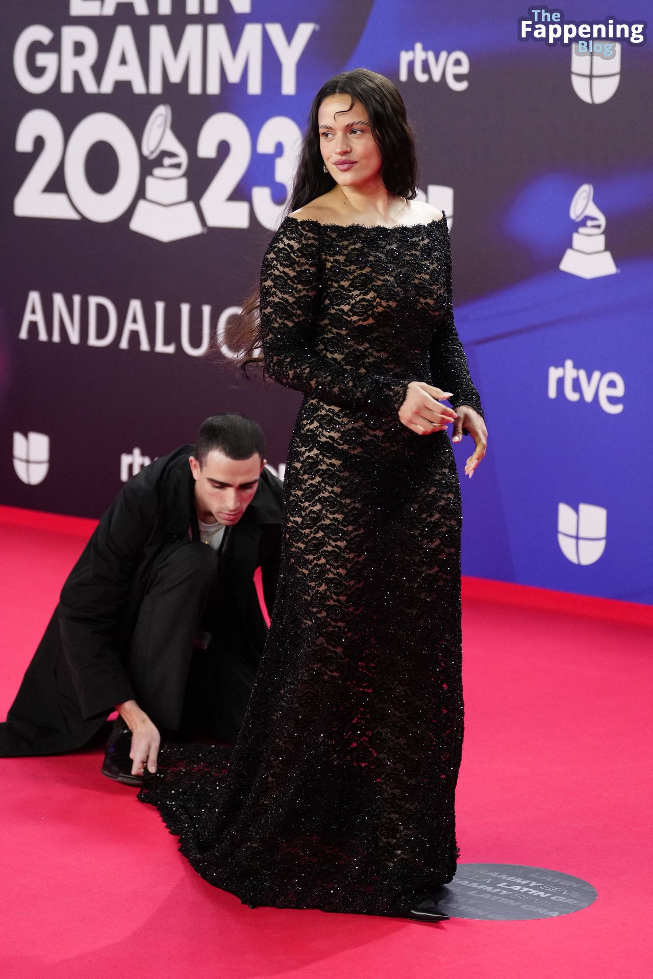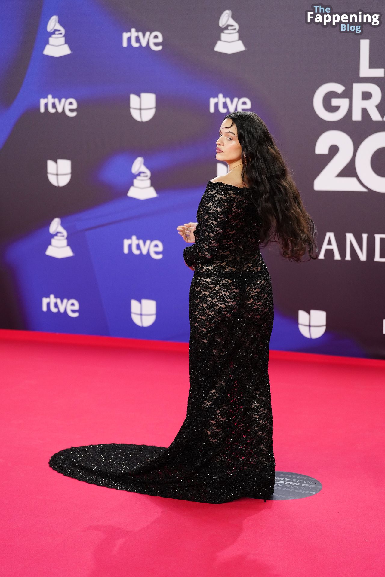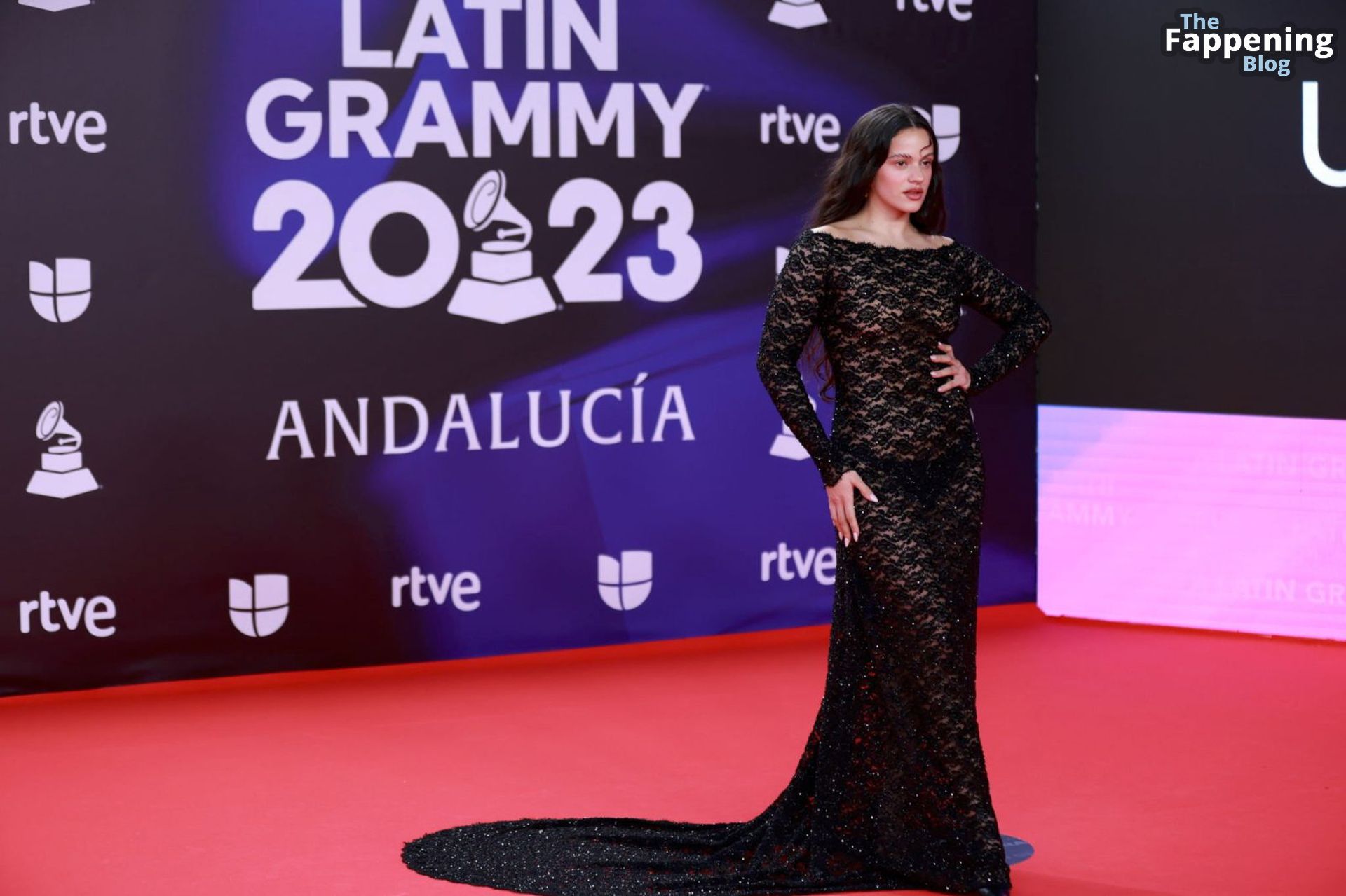 Prepárate para sorprenderte con el estilo impresionante de Rosalia en los Latin GRAMMY Awards en Sevilla. Ella luce un vestido negro transparente que deja ver una sexy tanga negra y un trasero absolutamente espectacular. La sesión de fotos en la entrada del evento estaba llena de celebridades mostrando su presencia.
