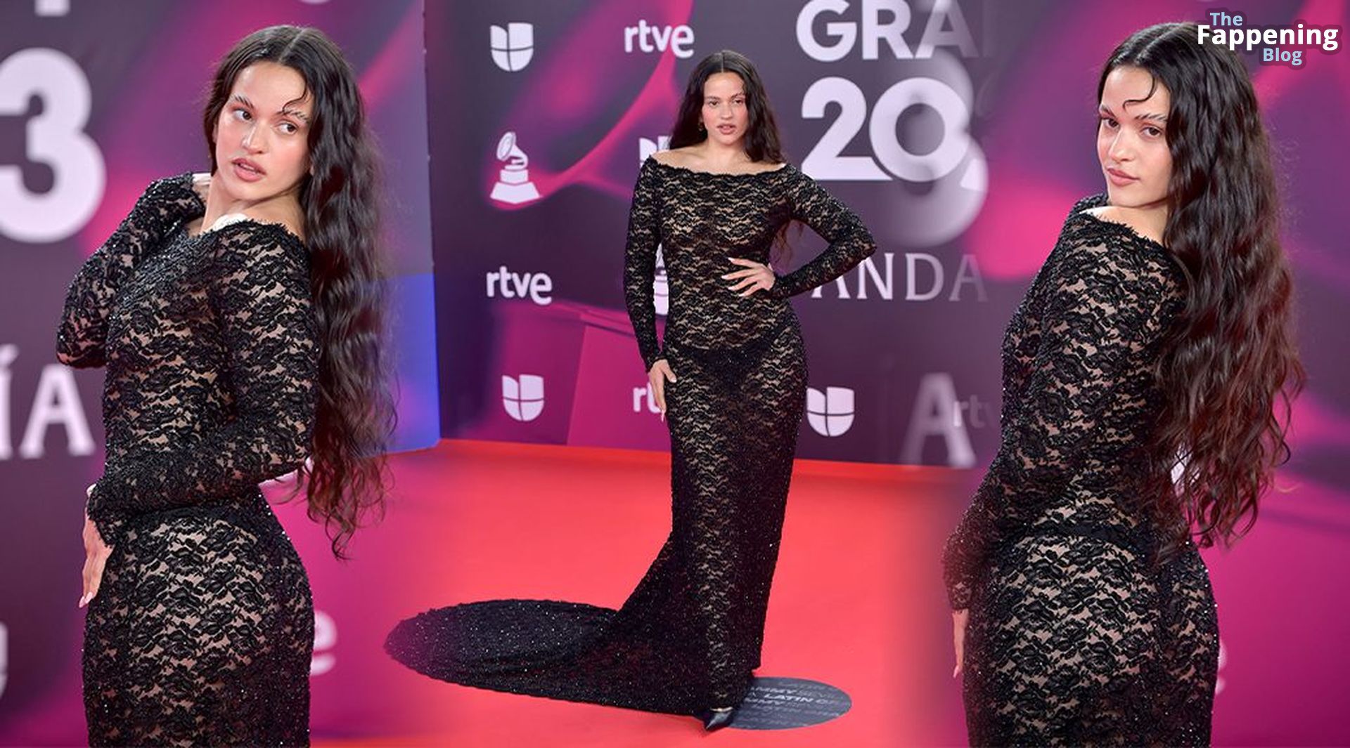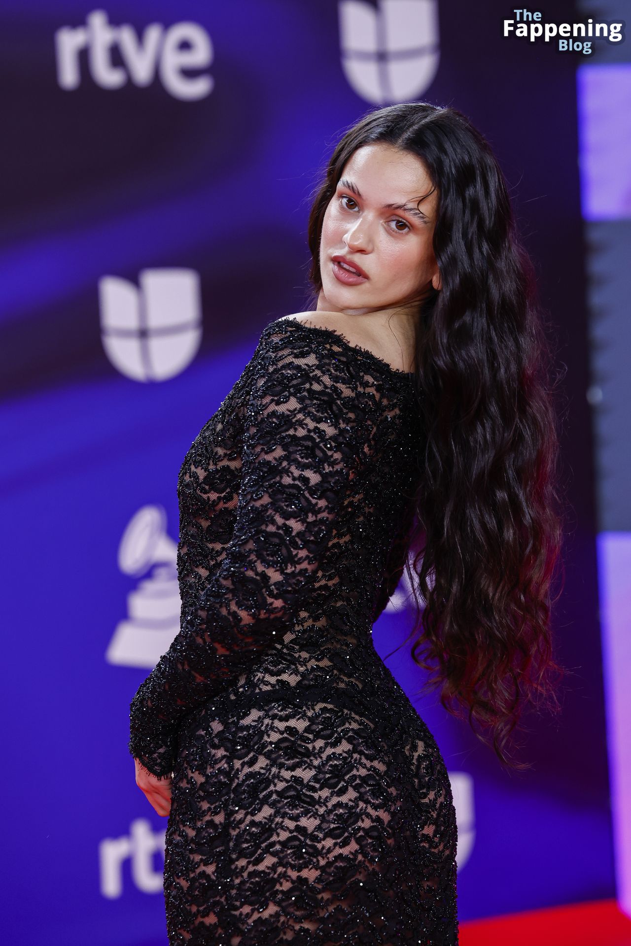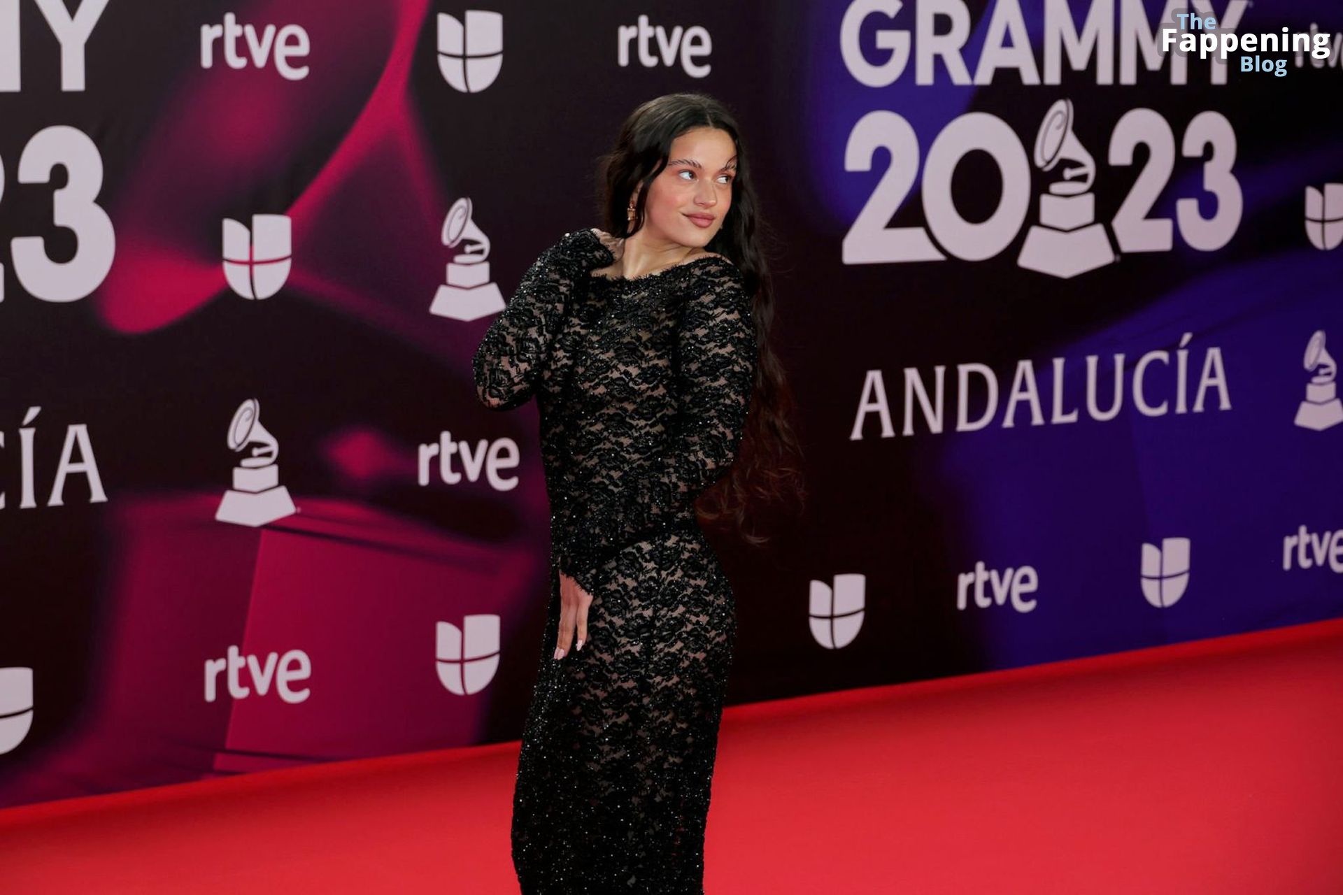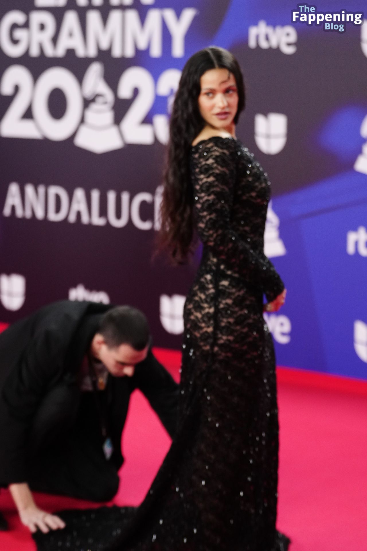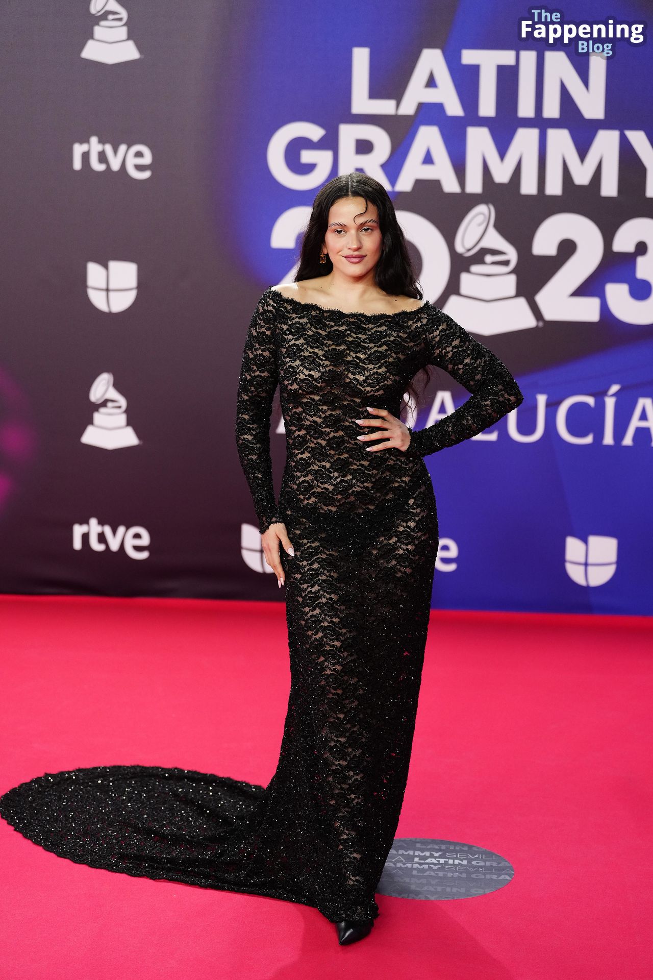 Prepárate para sorprenderte con el estilo impresionante de Rosalia en los Latin GRAMMY Awards en Sevilla. Ella luce un vestido negro transparente que deja ver una sexy tanga negra y un trasero absolutamente espectacular. La sesión de fotos en la entrada del evento estaba llena de celebridades mostrando su presencia.