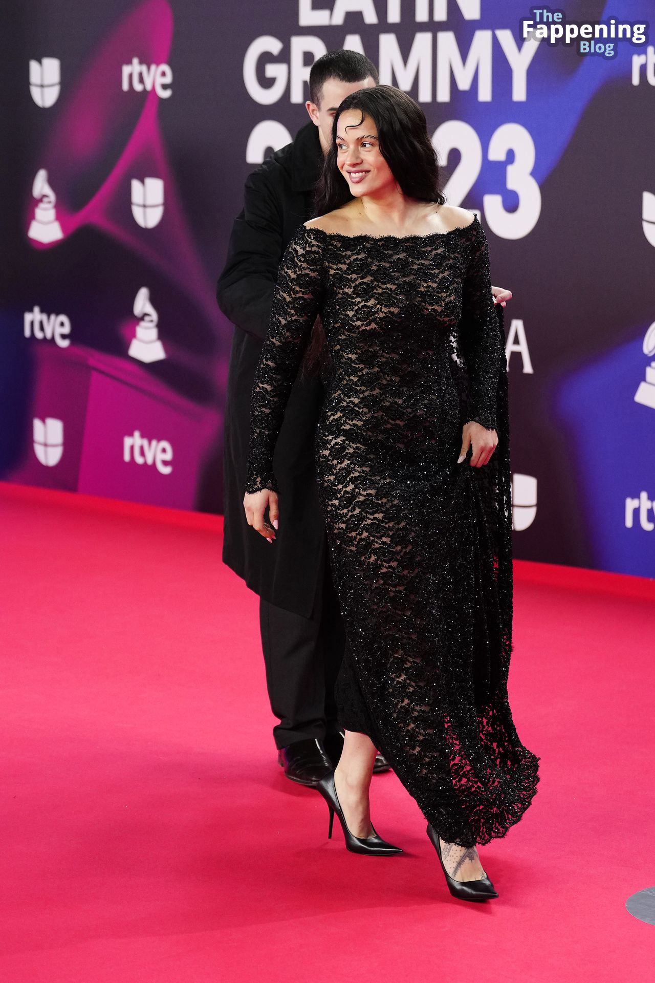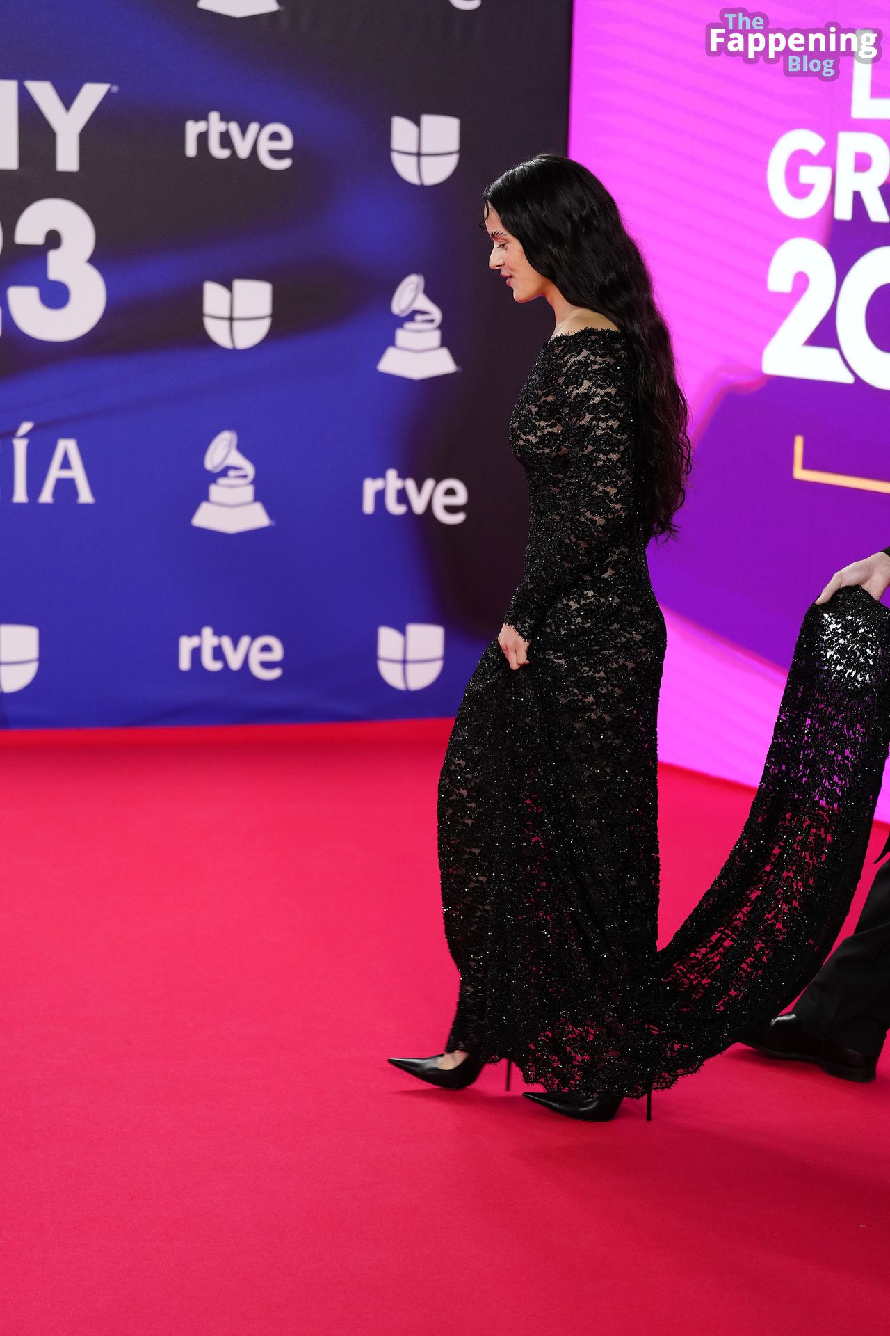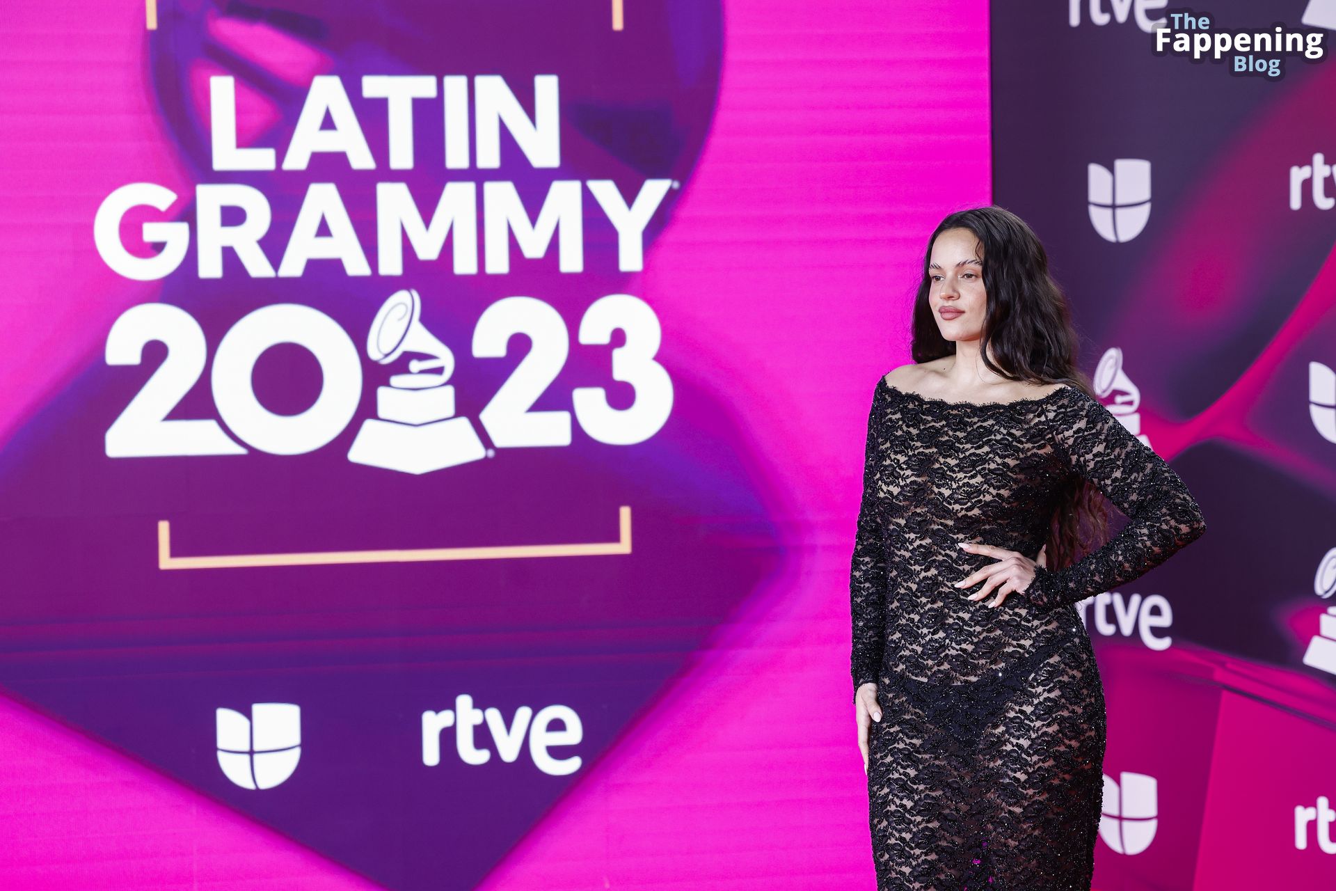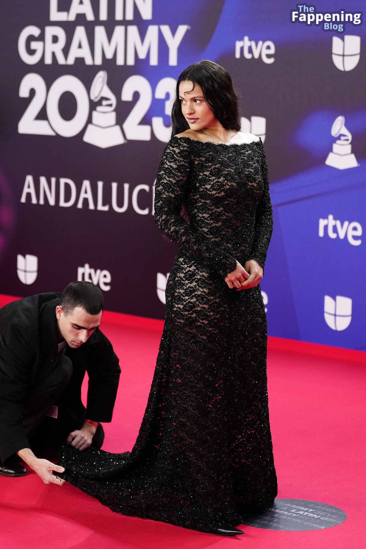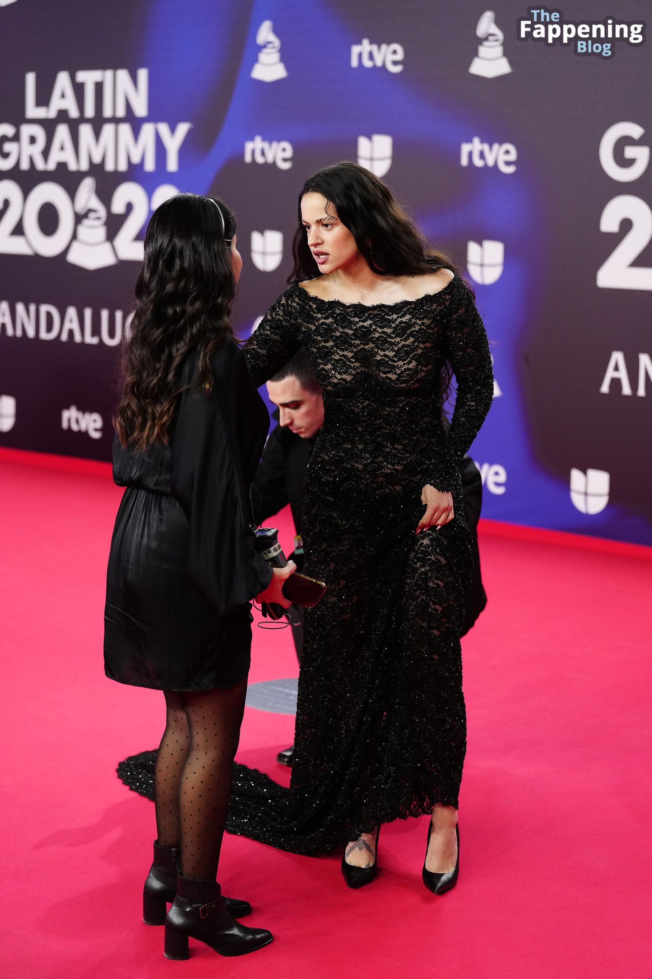 Prepárate para sorprenderte con el estilo impresionante de Rosalia en los Latin GRAMMY Awards en Sevilla. Ella luce un vestido negro transparente que deja ver una sexy tanga negra y un trasero absolutamente espectacular. La sesión de fotos en la entrada del evento estaba llena de celebridades mostrando su presencia.