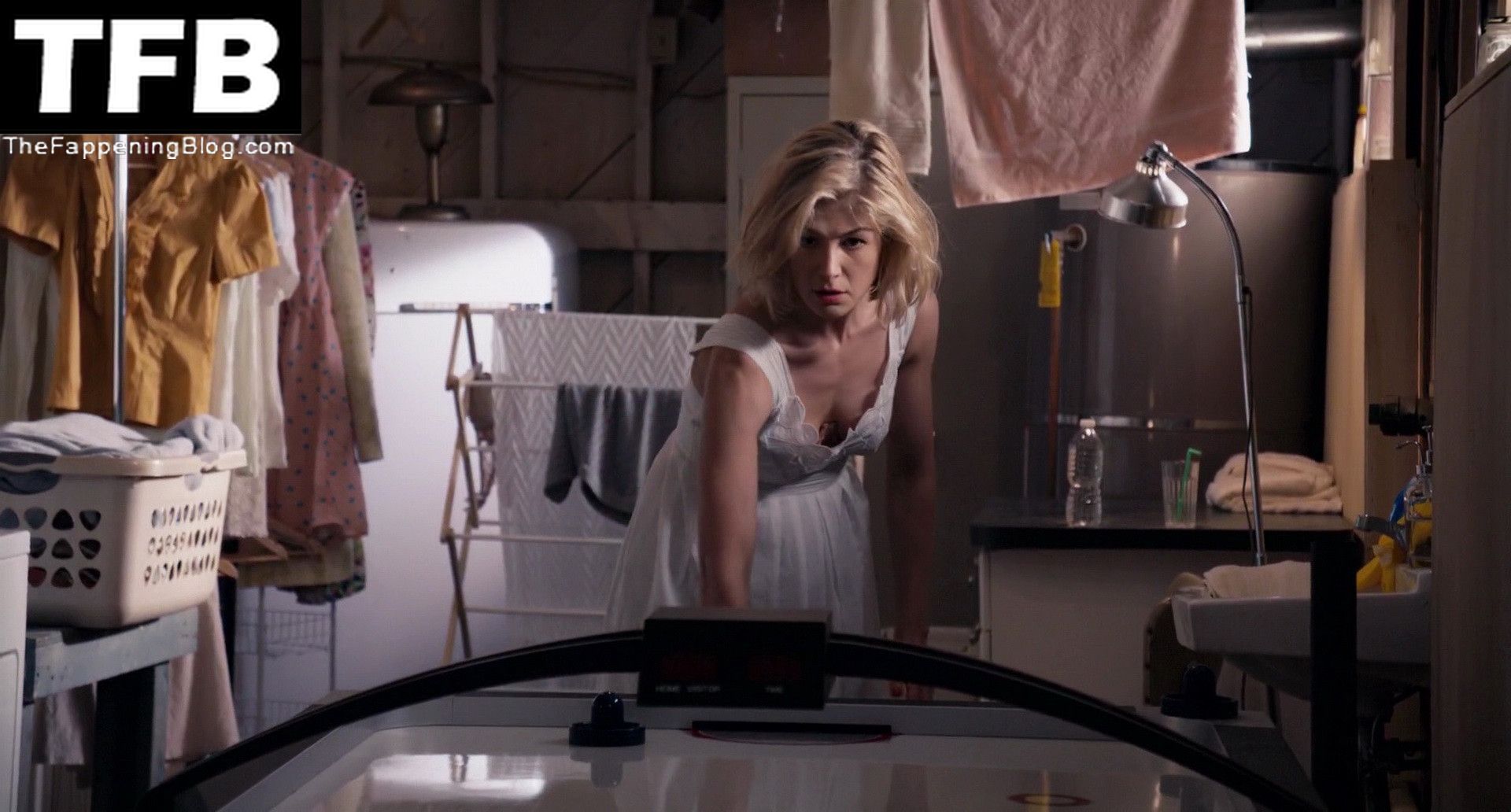 Mira las capturas de pantalla de Rosamund Pike de su colección con escenas desnudas y sexys de “Radioactive”, “Hector and the Search for Happiness” y “Return to Sender”.