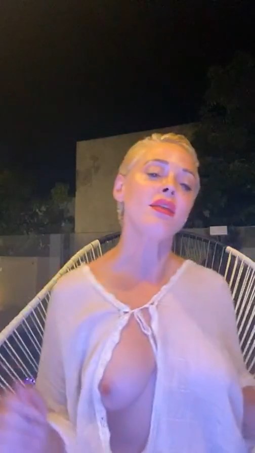 La actriz/cantante Rose McGowan muestra sus tetas desnudas durante un Instagram Live de baja calidad, 10/05/2020. Es una gran promoción de la estrella de The Fappening.