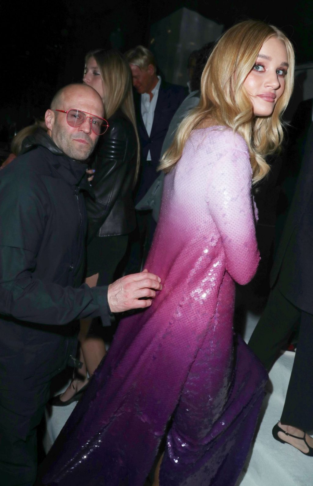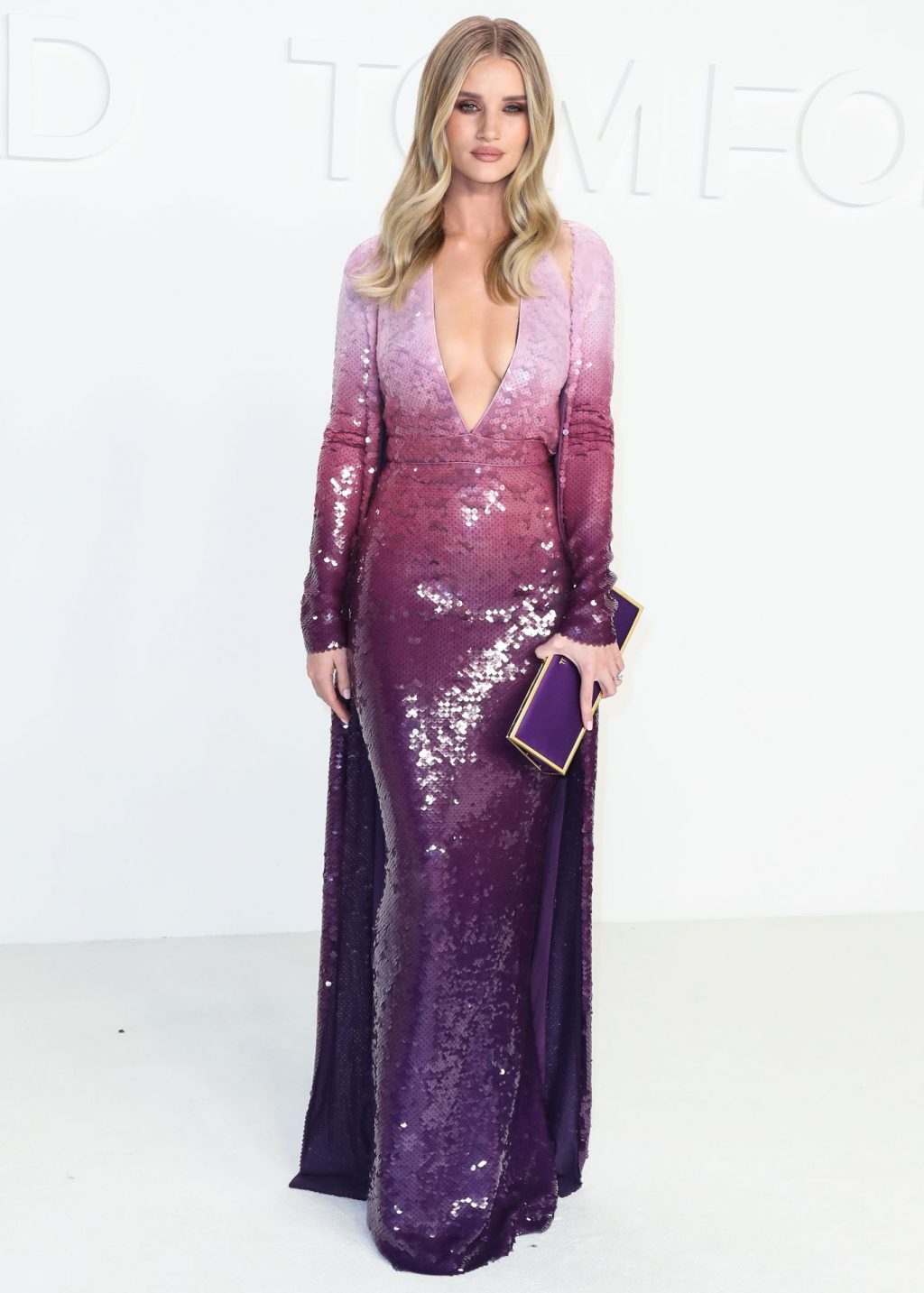 Model Rosie Huntington-Whiteley fue fotografiada con un vestido púrpura-rosado en la alfombra roja del Desfile de Moda Tom Ford: Otoño/Invierno 2020 celebrado en Milk Studios en Hollywood, 07/02/2020.