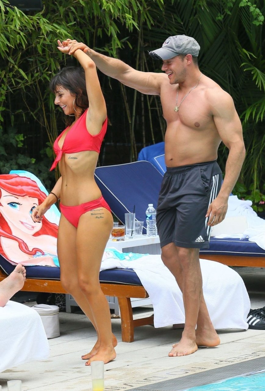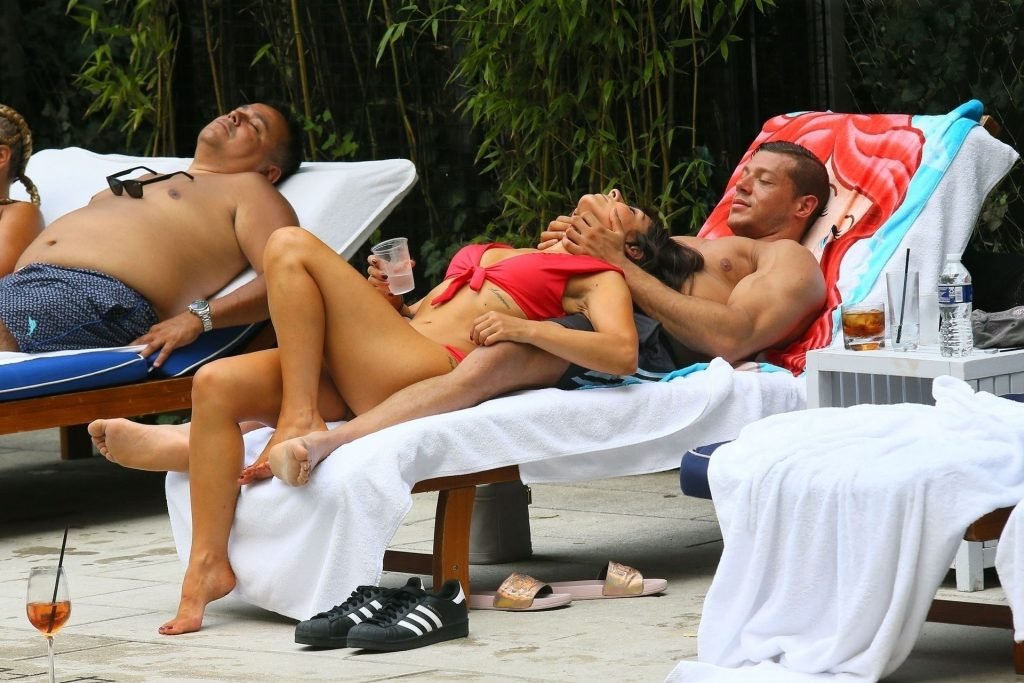 Roxanne Pallett y su nuevo novio Jason Carrion fueron vistos en una fiesta en la piscina en Manhattan, Nueva York, 19/08/2019.