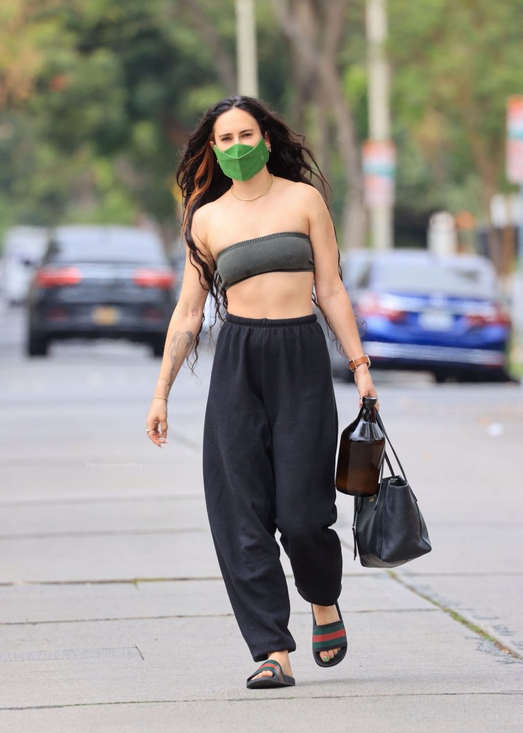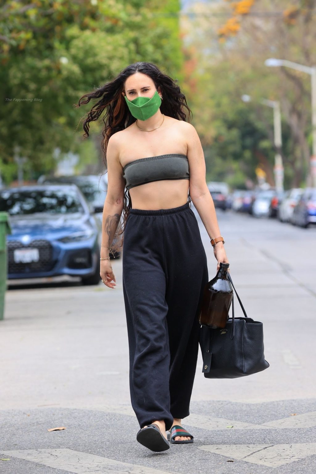 La actriz Rumer Willis muestra su abdomen tonificado y sus pechos mientras termina una sesión de Pilates en West Hollywood, 13/05/2021.