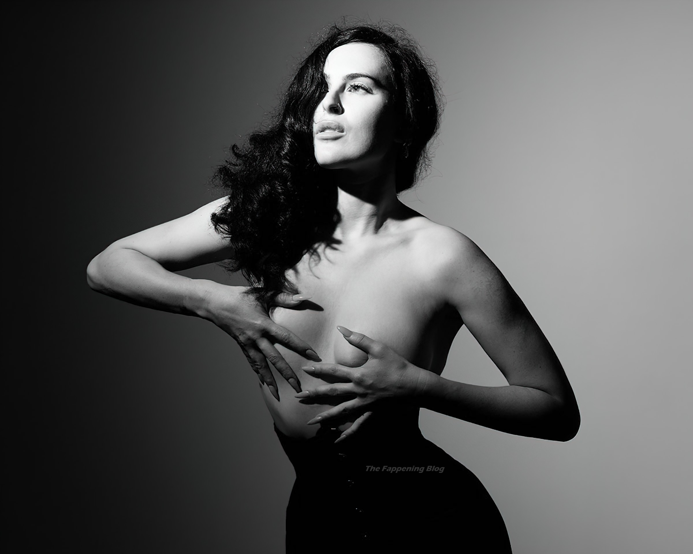 La actriz Rumer Willis posa desnuda, cubriendo sus pequeños pechos desnudos en una sesión fotográfica de Tyler Shields – Instagram, 18/05/2021.