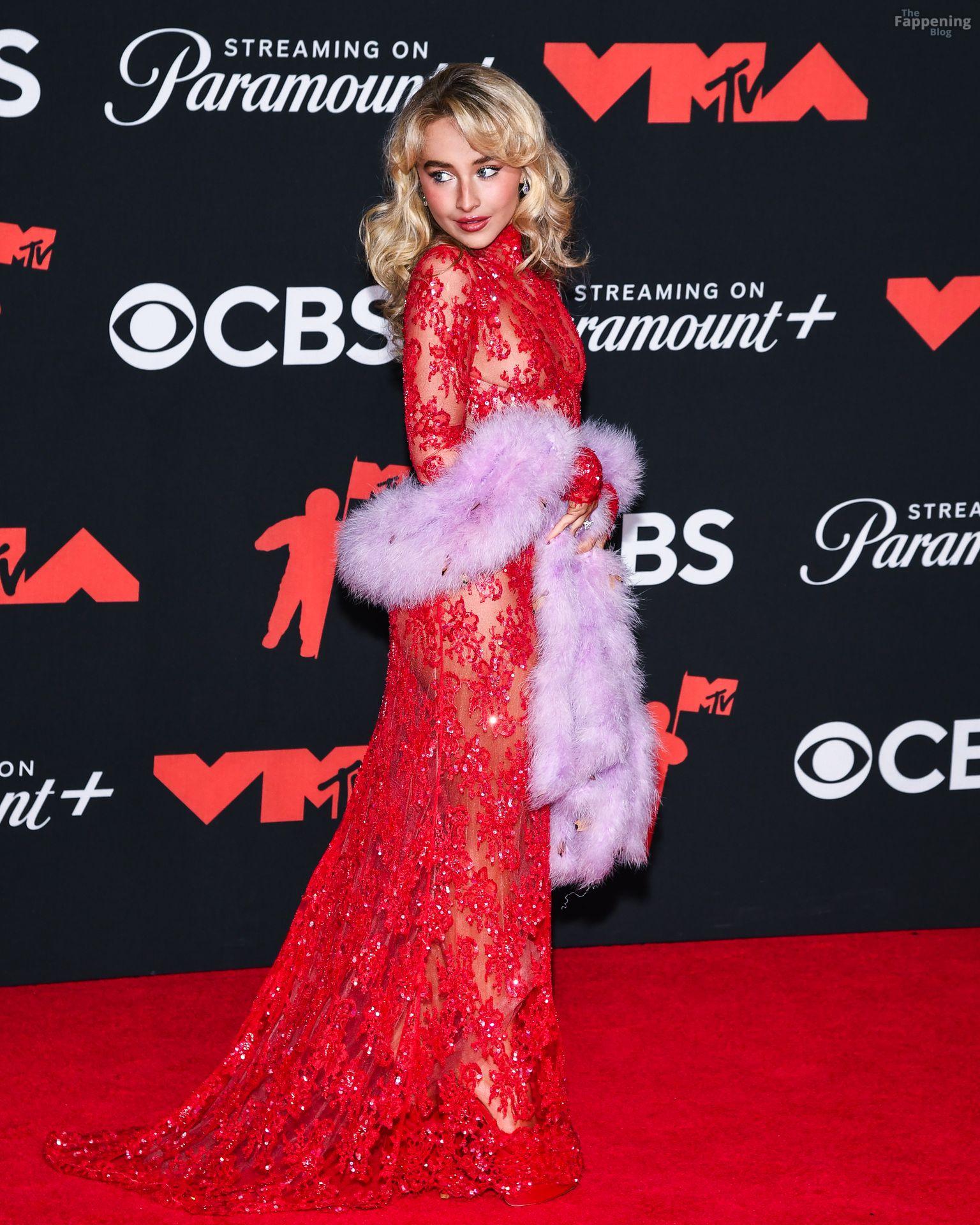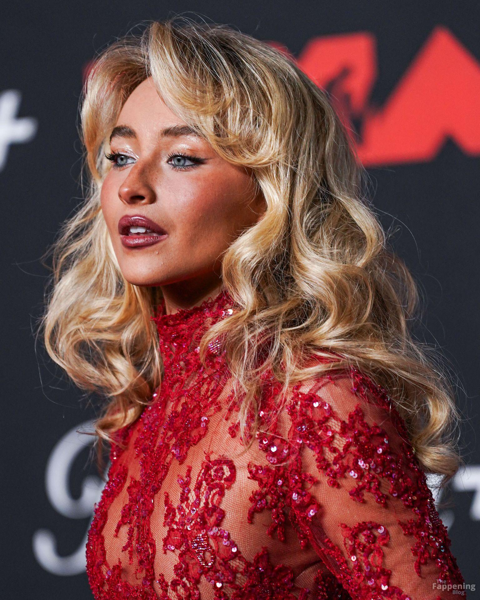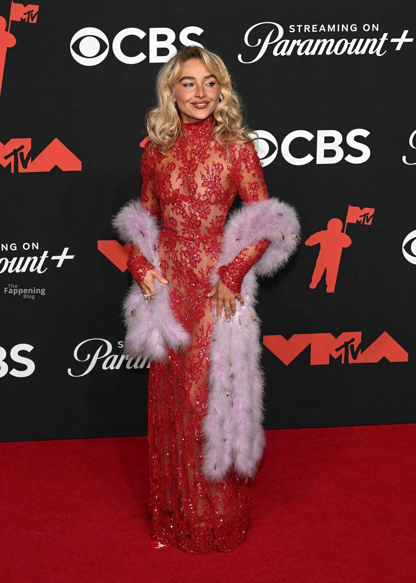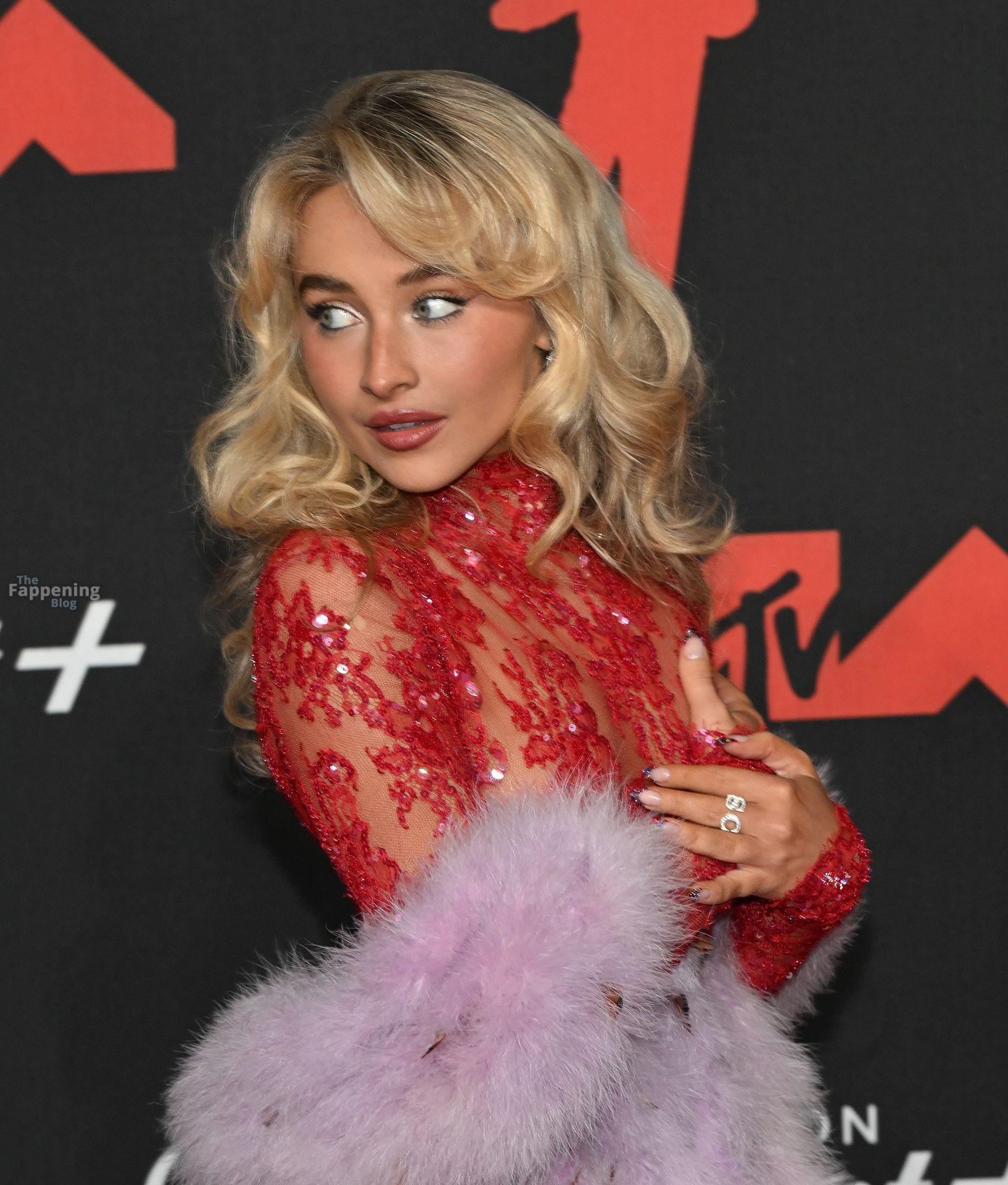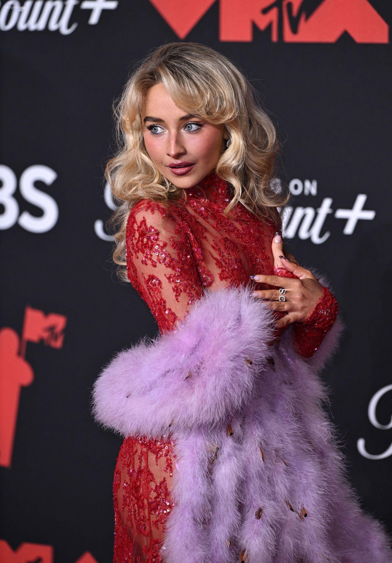 Sabrina Carpenter dominó los MTV Video Music Awards 2025 en UBS Arena el 7 de septiembre de 2025 en Elmont. Caminó por la alfombra roja con un vestido de encaje rojo transparente cubierto de lentejuelas, que abrazaba su figura pequeña y mostraba sus pechos.