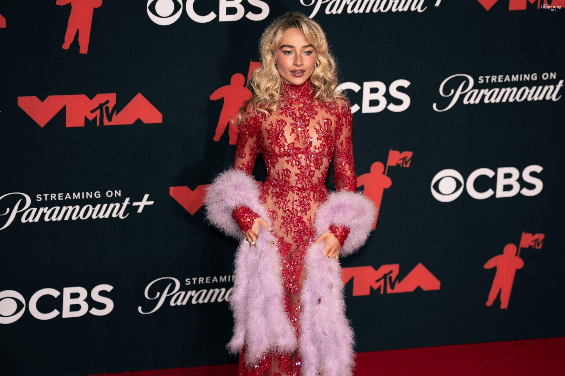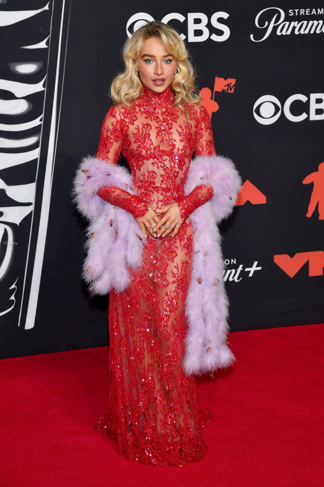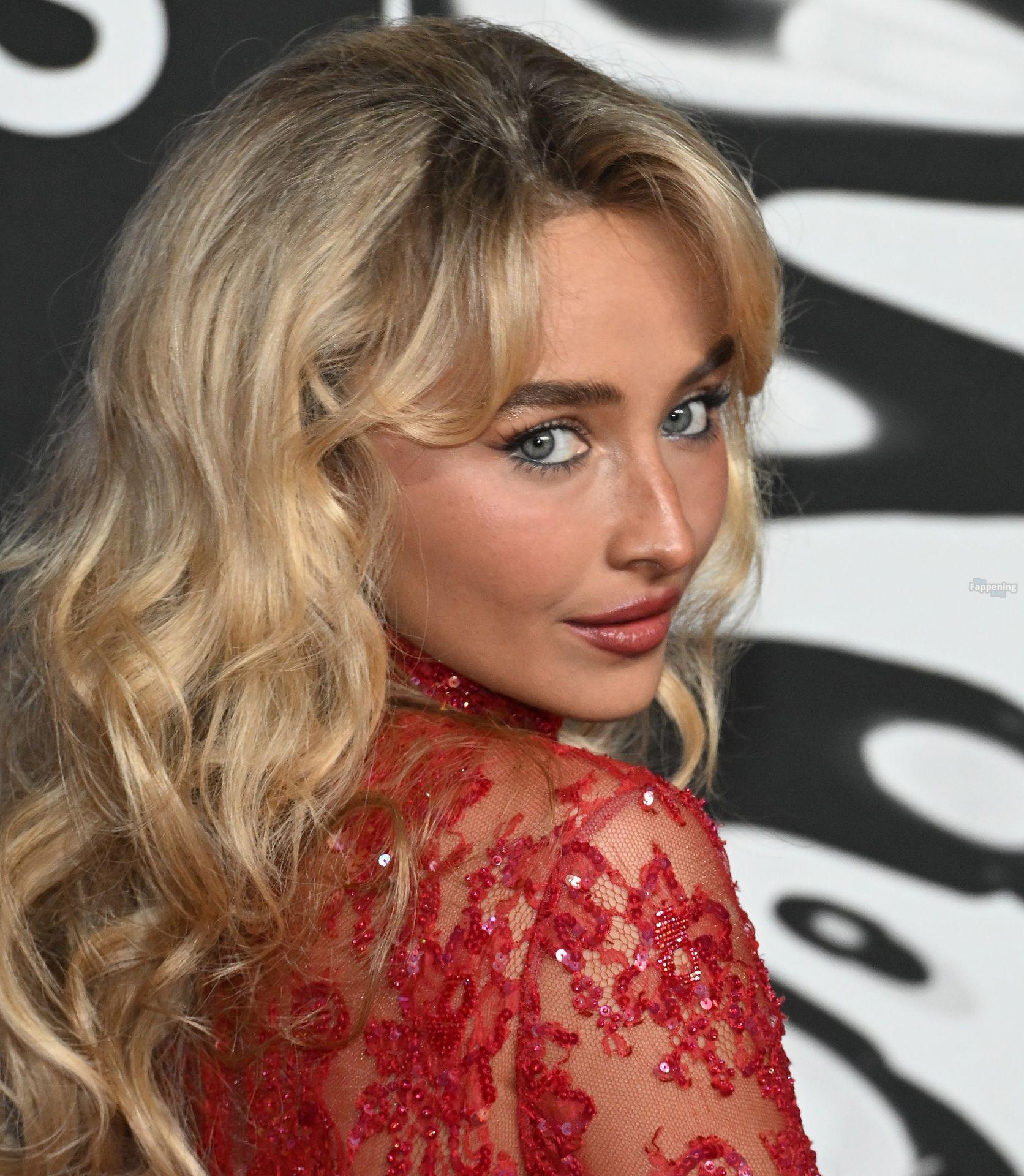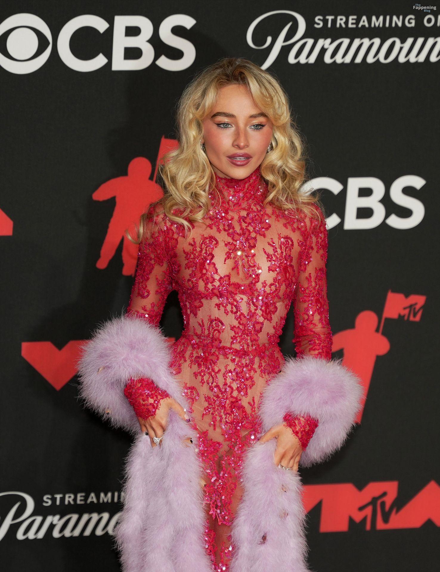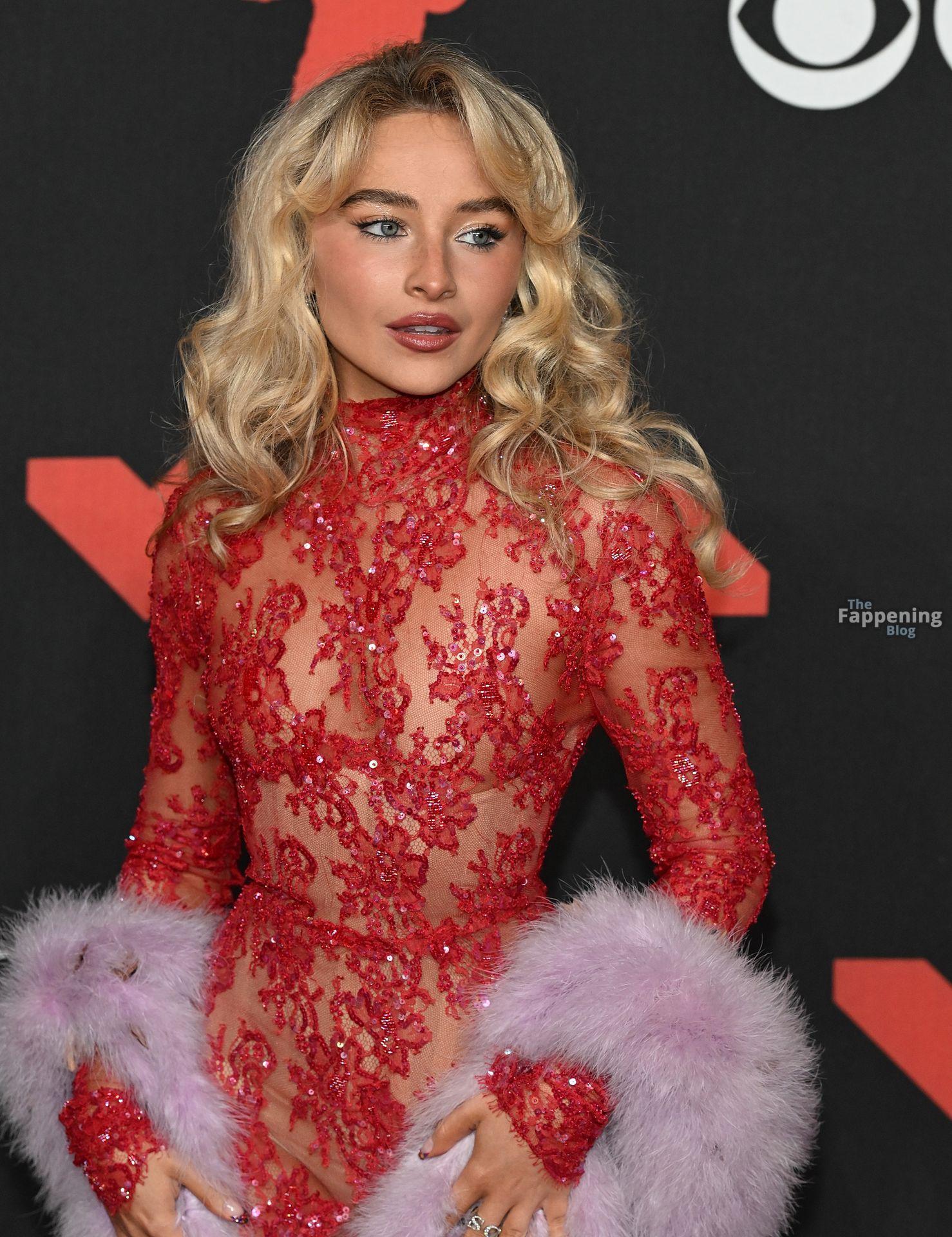 Sabrina Carpenter dominó los MTV Video Music Awards 2025 en UBS Arena el 7 de septiembre de 2025 en Elmont. Caminó por la alfombra roja con un vestido de encaje rojo transparente cubierto de lentejuelas, que abrazaba su figura pequeña y mostraba sus pechos.