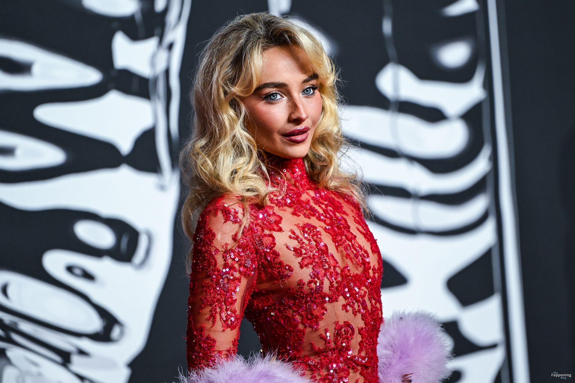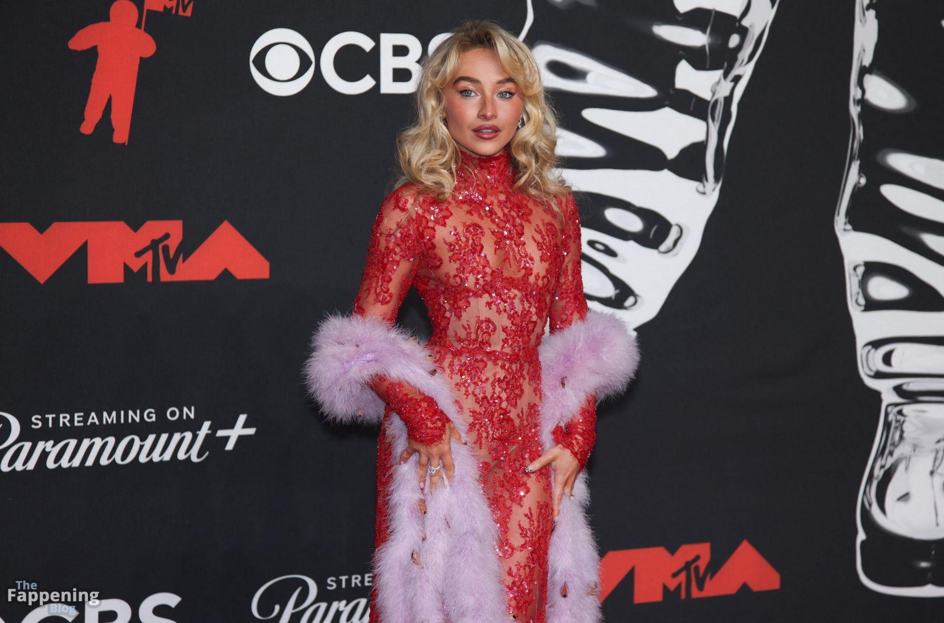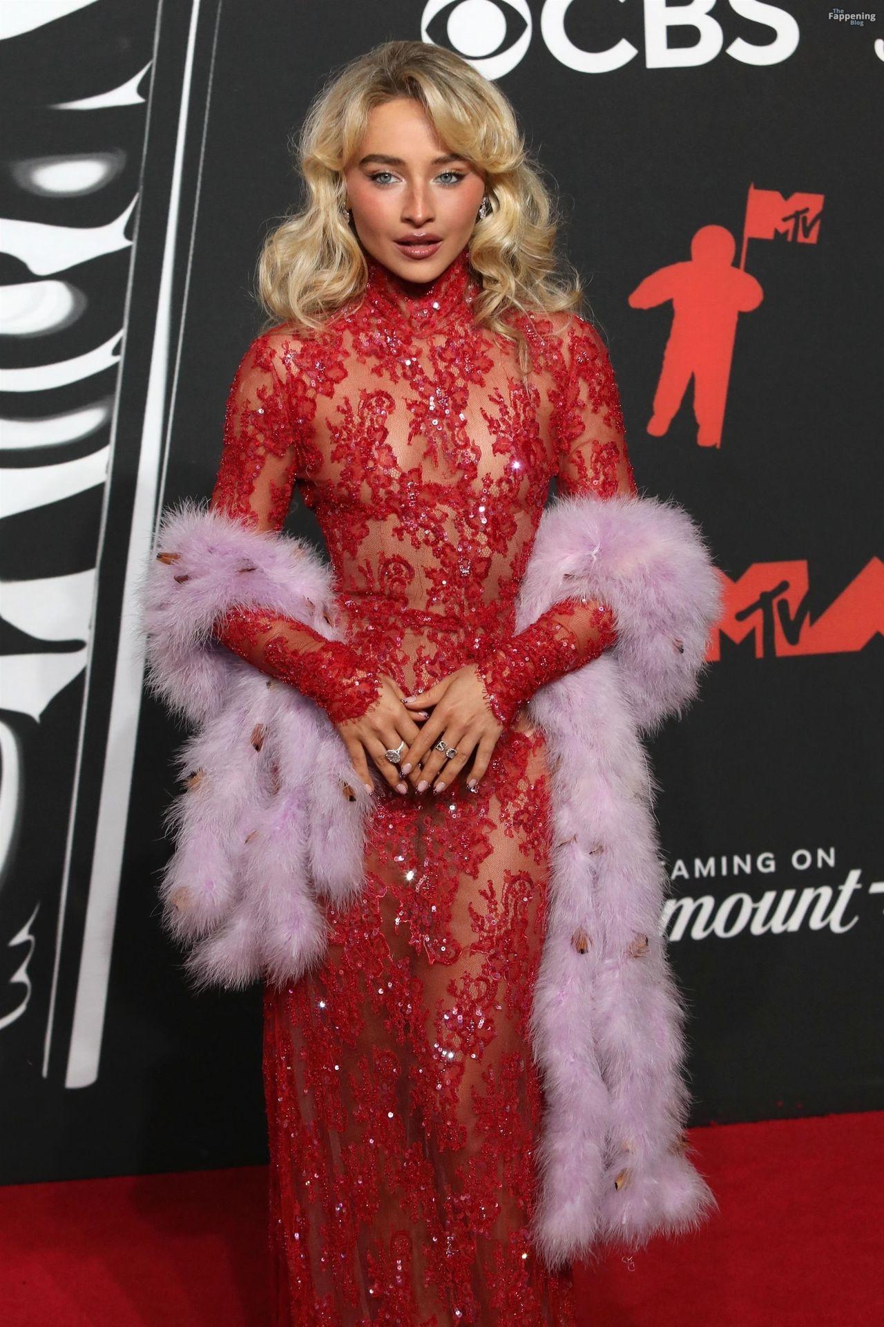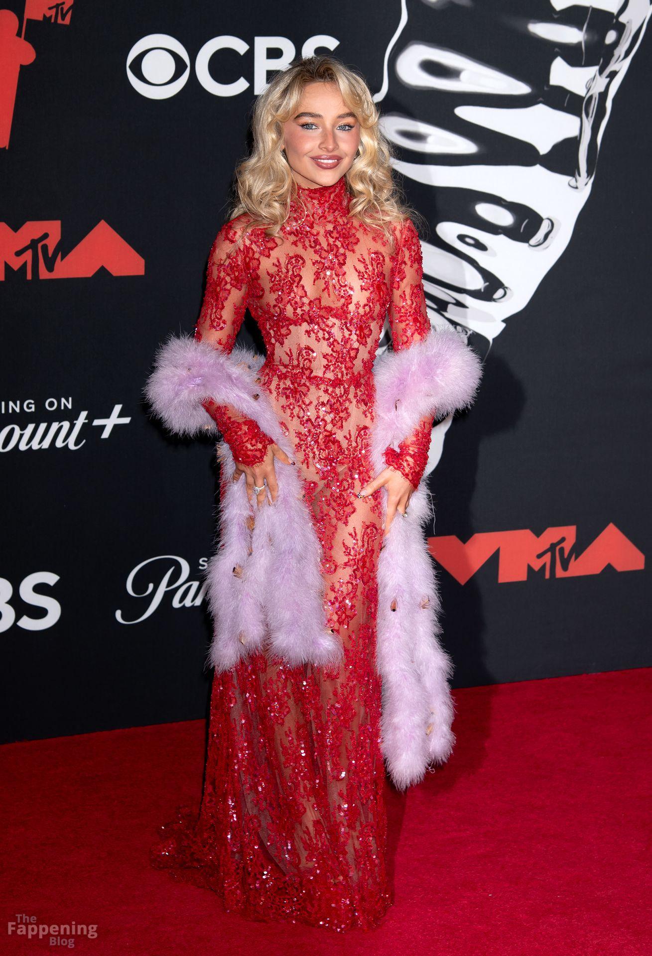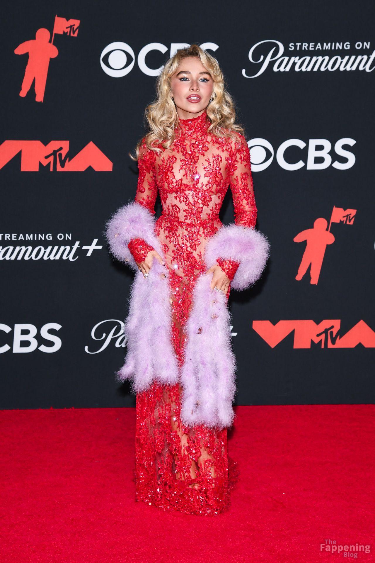 Sabrina Carpenter dominó los MTV Video Music Awards 2025 en UBS Arena el 7 de septiembre de 2025 en Elmont. Caminó por la alfombra roja con un vestido de encaje rojo transparente cubierto de lentejuelas, que abrazaba su figura pequeña y mostraba sus pechos.