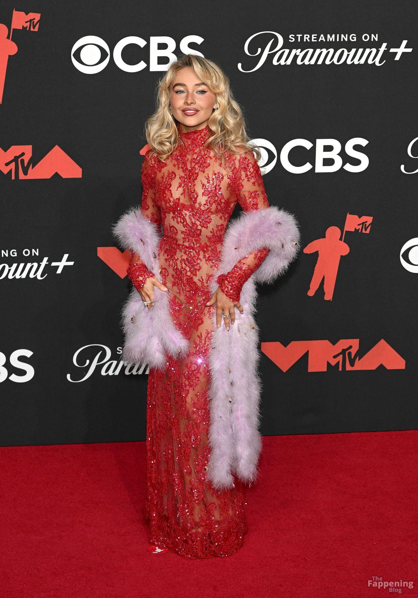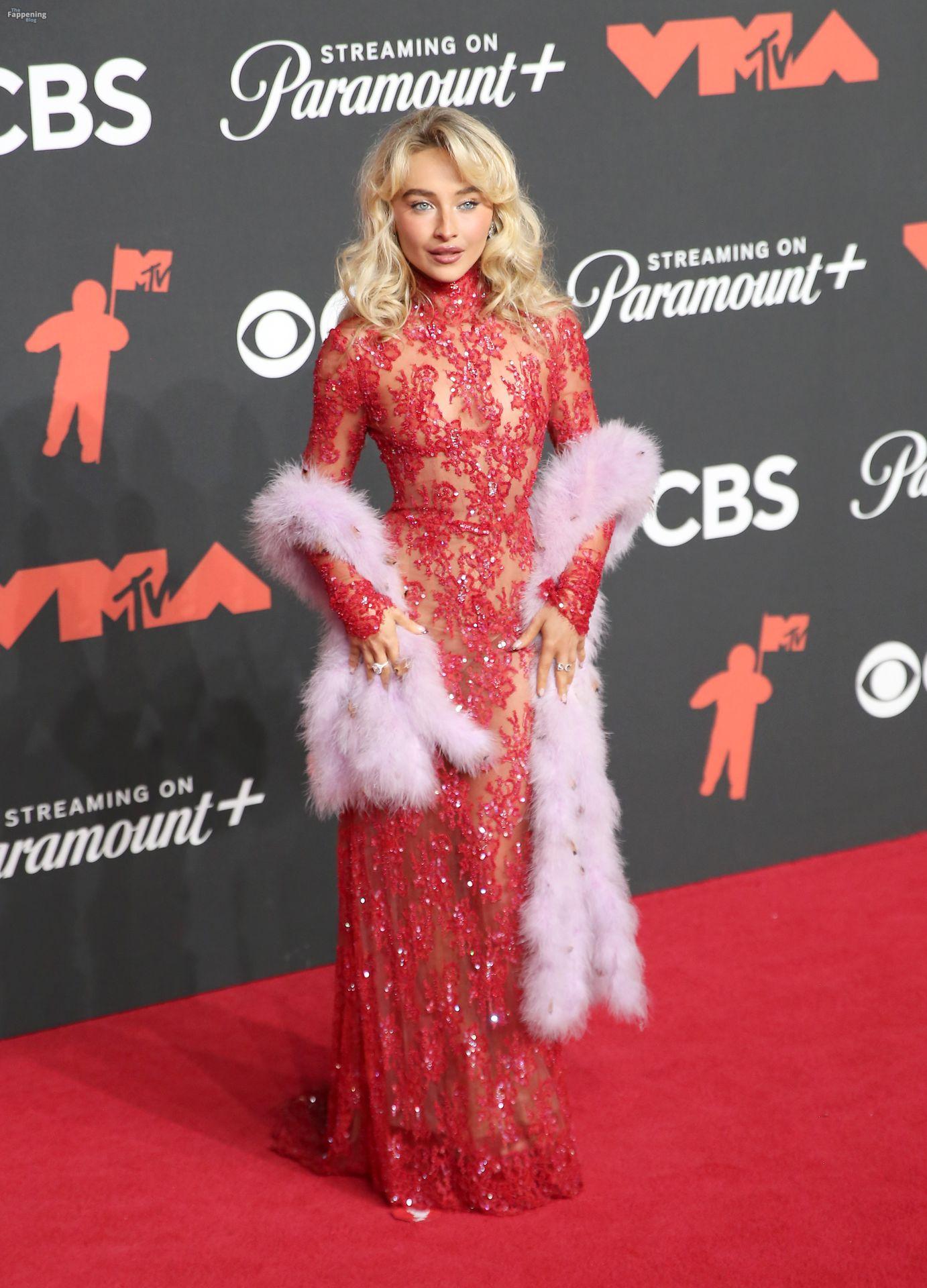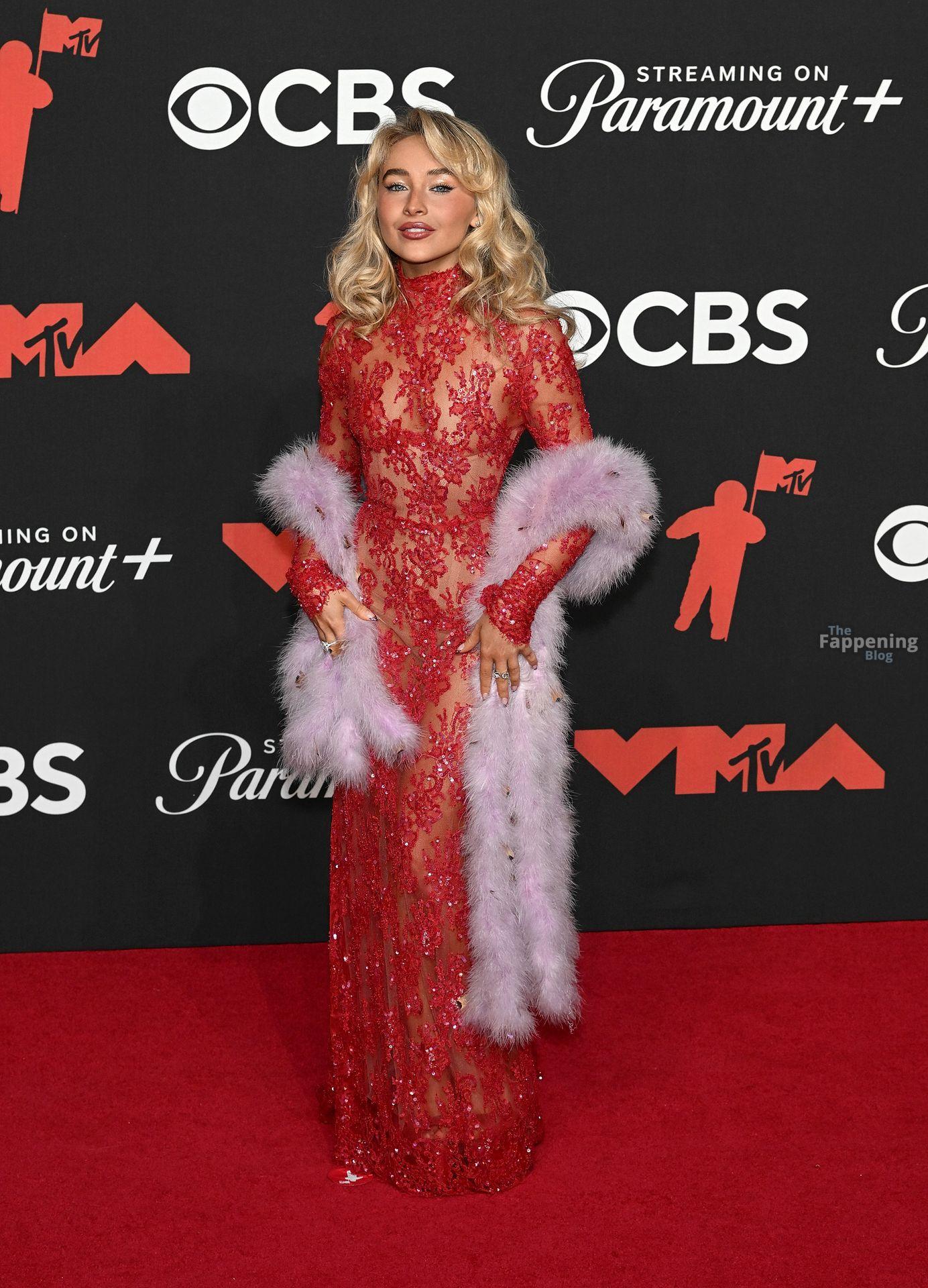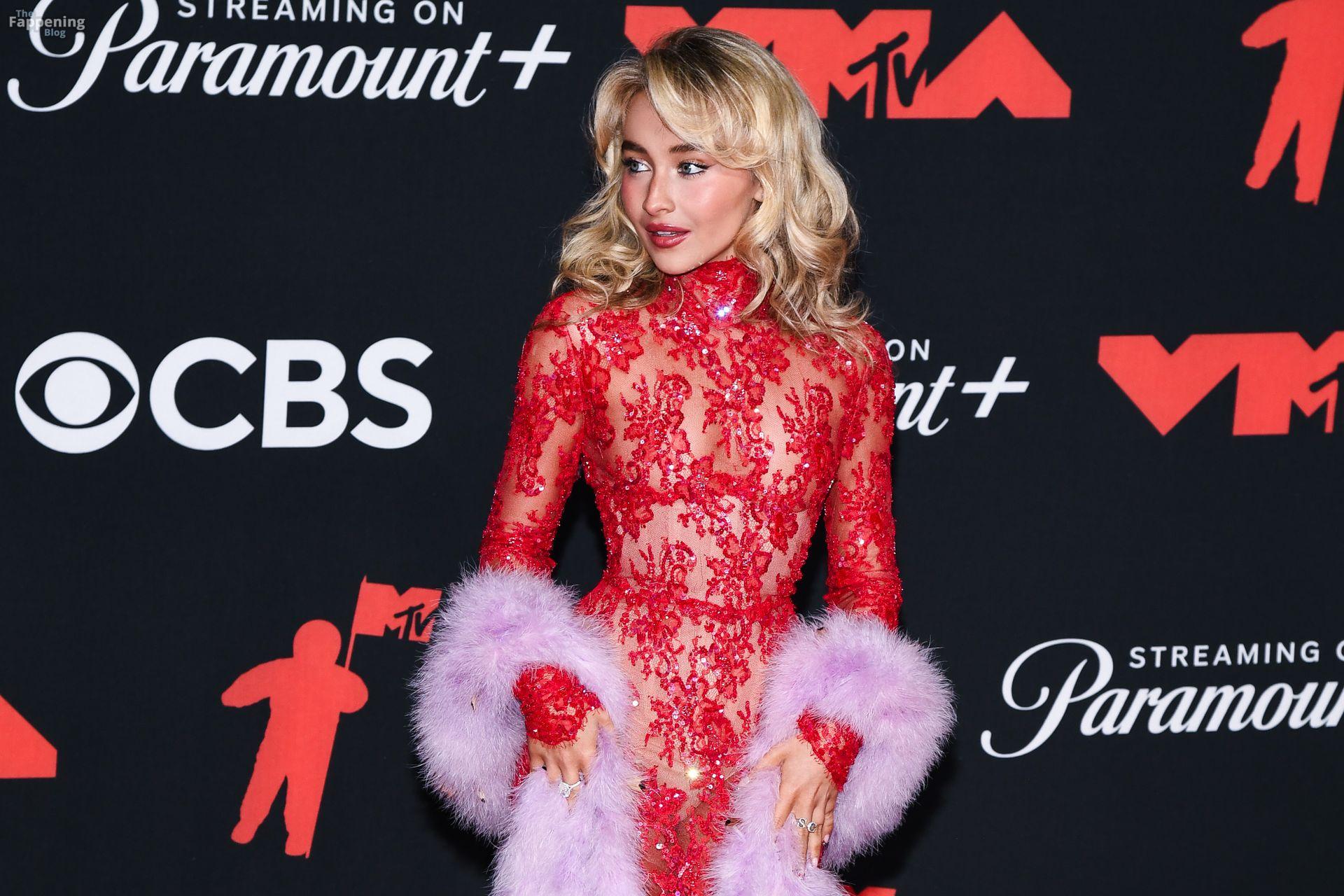 Sabrina Carpenter dominó los MTV Video Music Awards 2025 en UBS Arena el 7 de septiembre de 2025 en Elmont. Caminó por la alfombra roja con un vestido de encaje rojo transparente cubierto de lentejuelas, que abrazaba su figura pequeña y mostraba sus pechos.