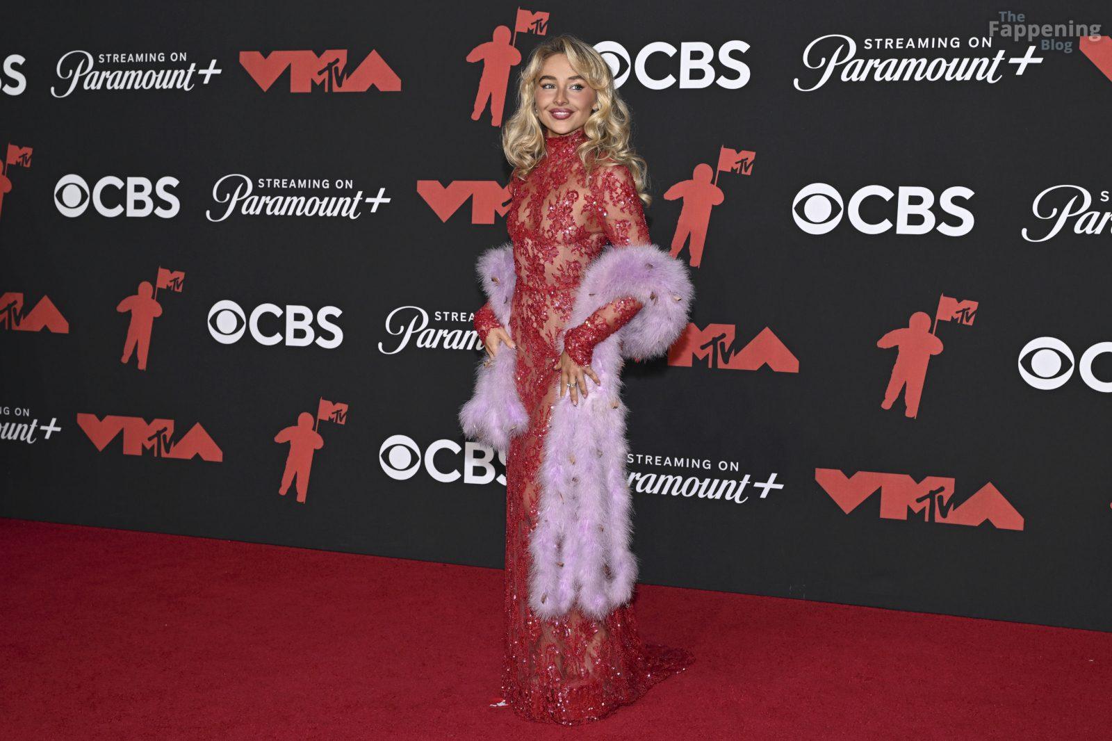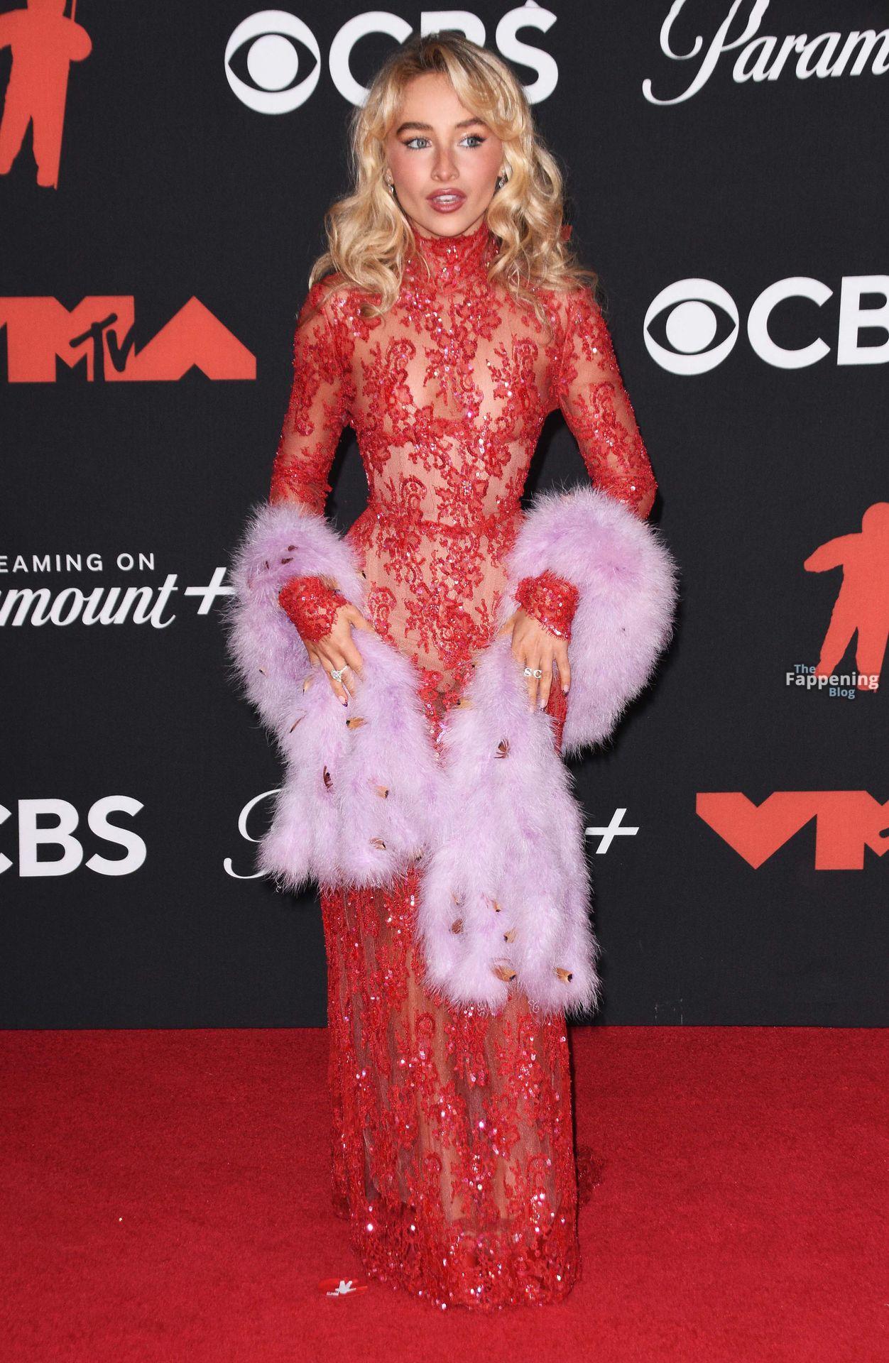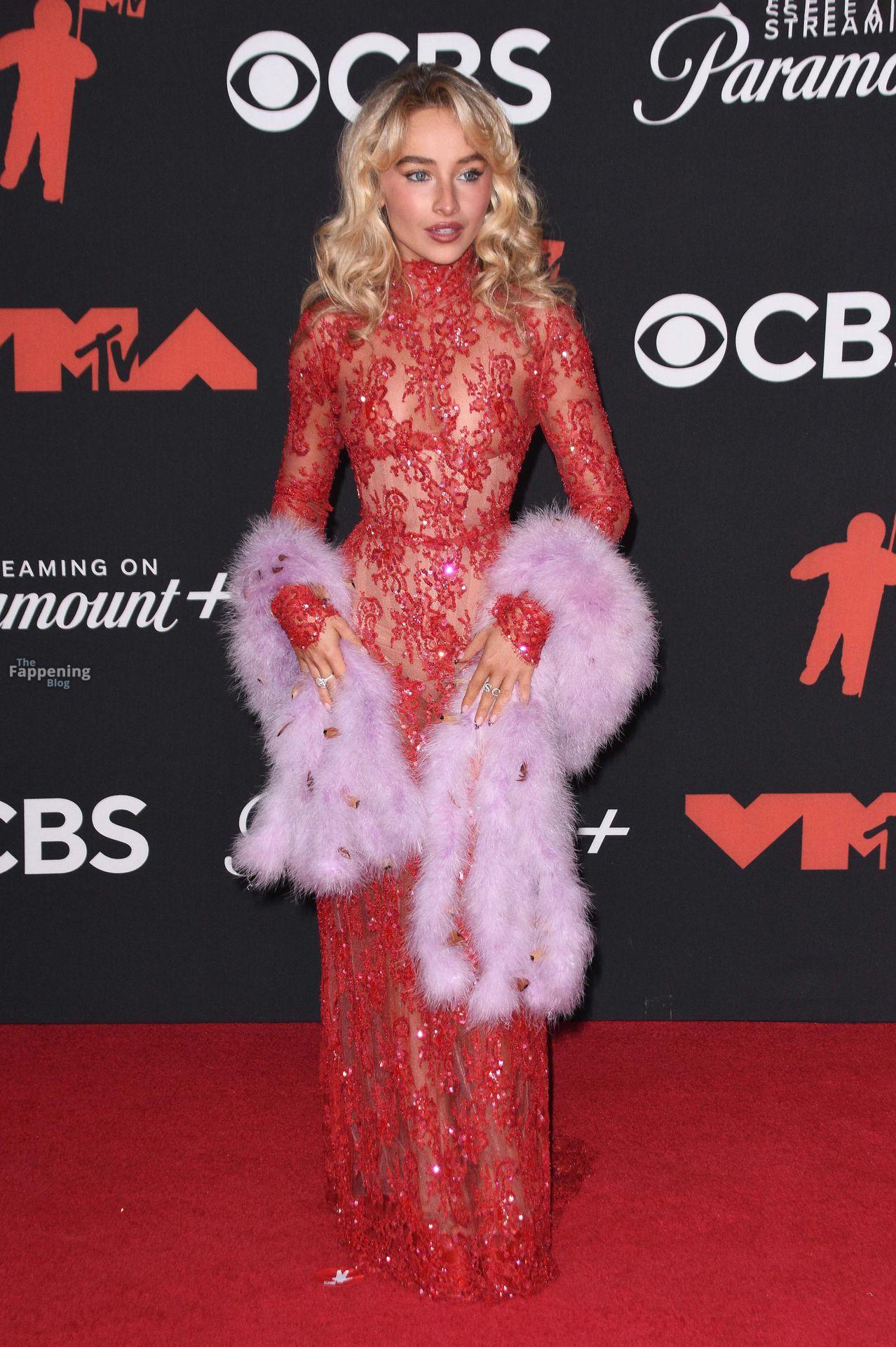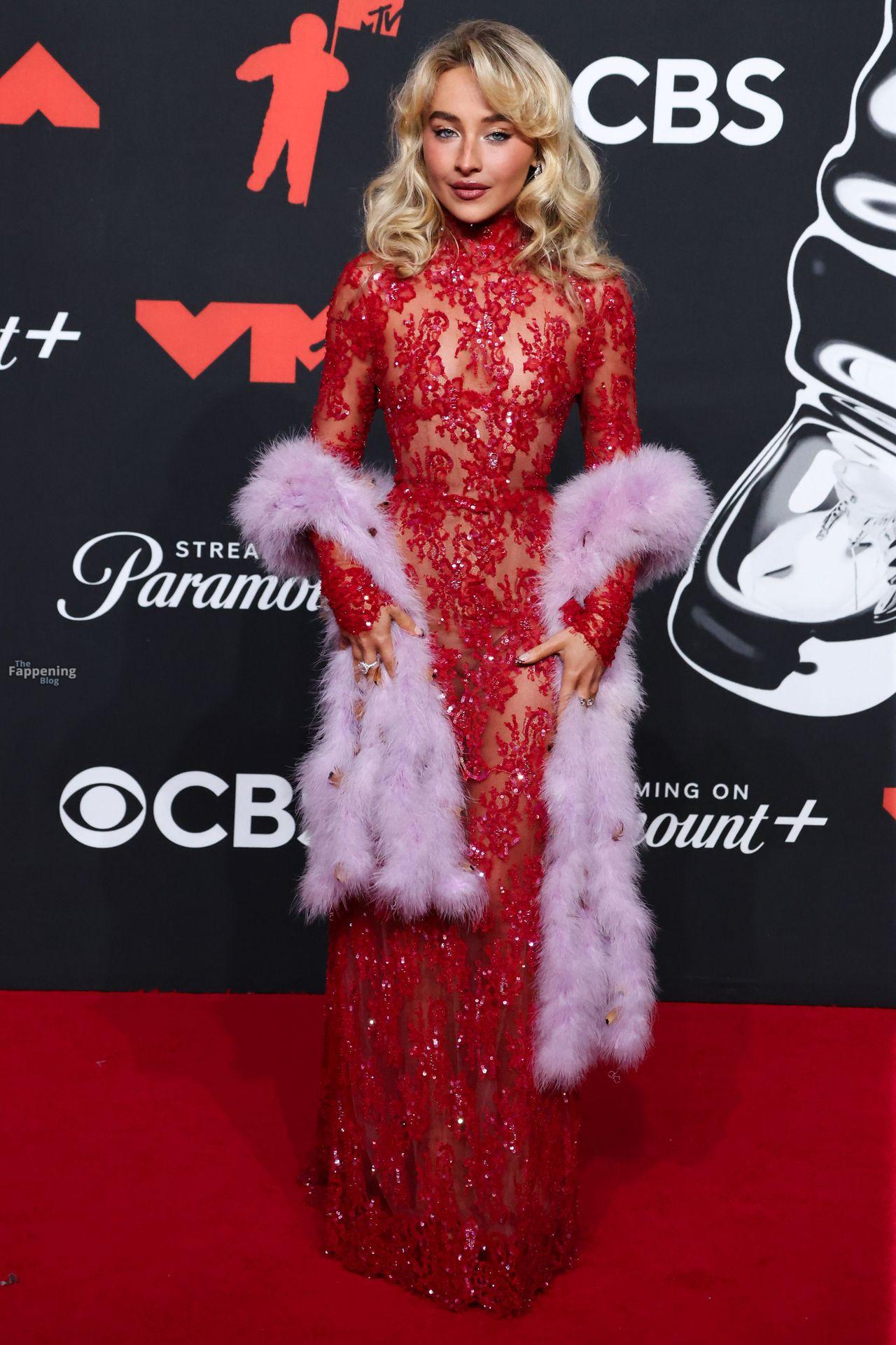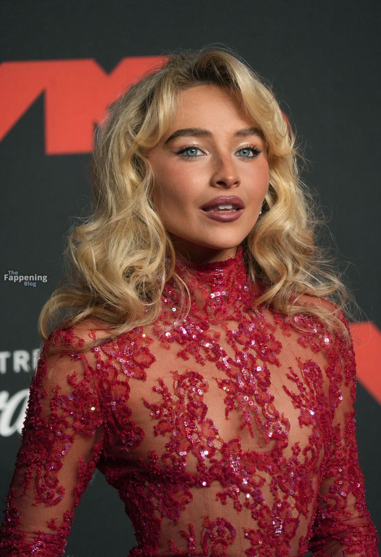 Sabrina Carpenter dominó los MTV Video Music Awards 2025 en UBS Arena el 7 de septiembre de 2025 en Elmont. Caminó por la alfombra roja con un vestido de encaje rojo transparente cubierto de lentejuelas, que abrazaba su figura pequeña y mostraba sus pechos.