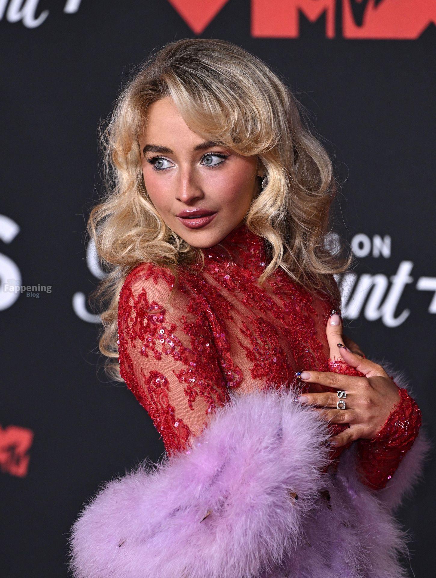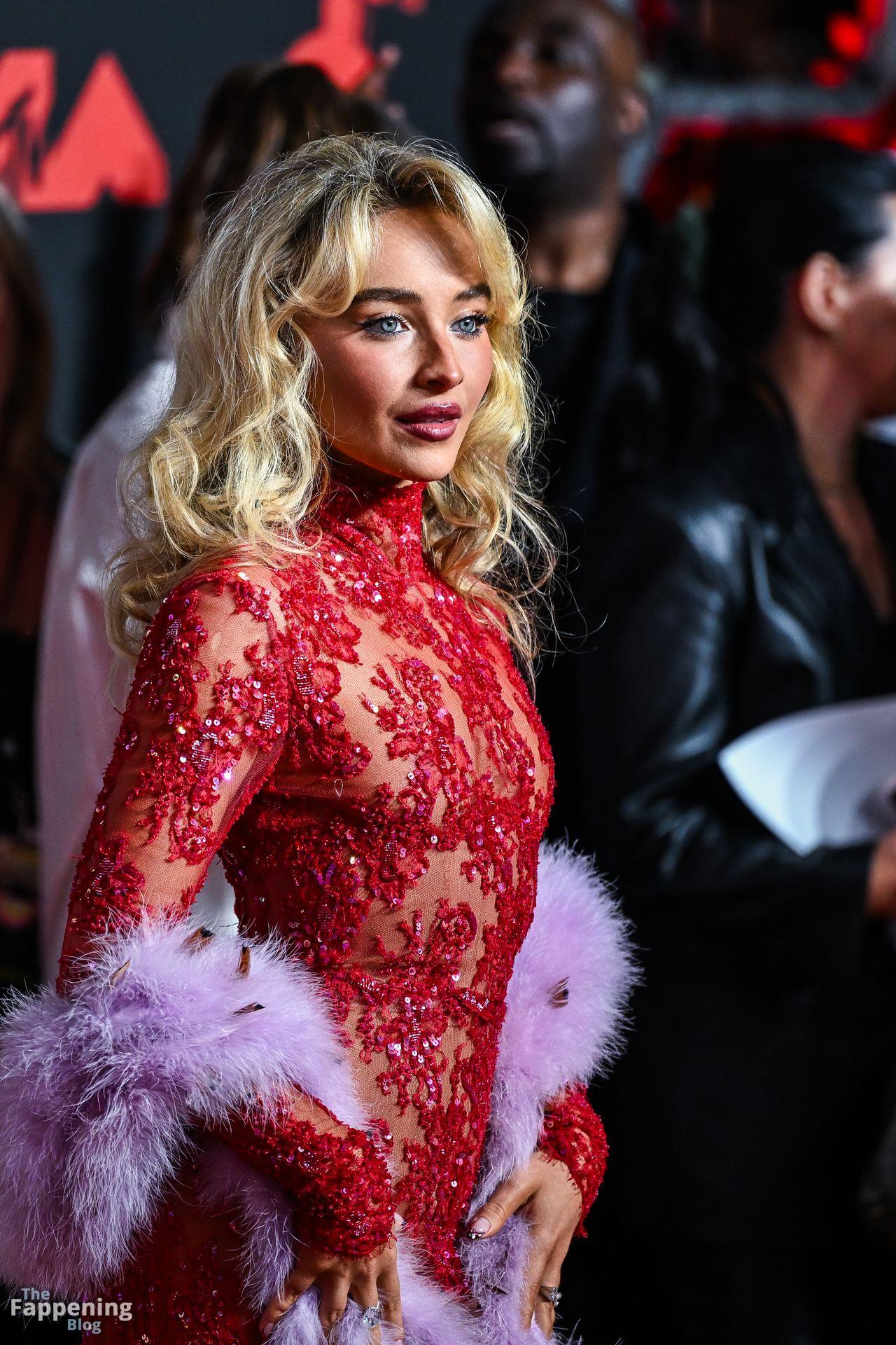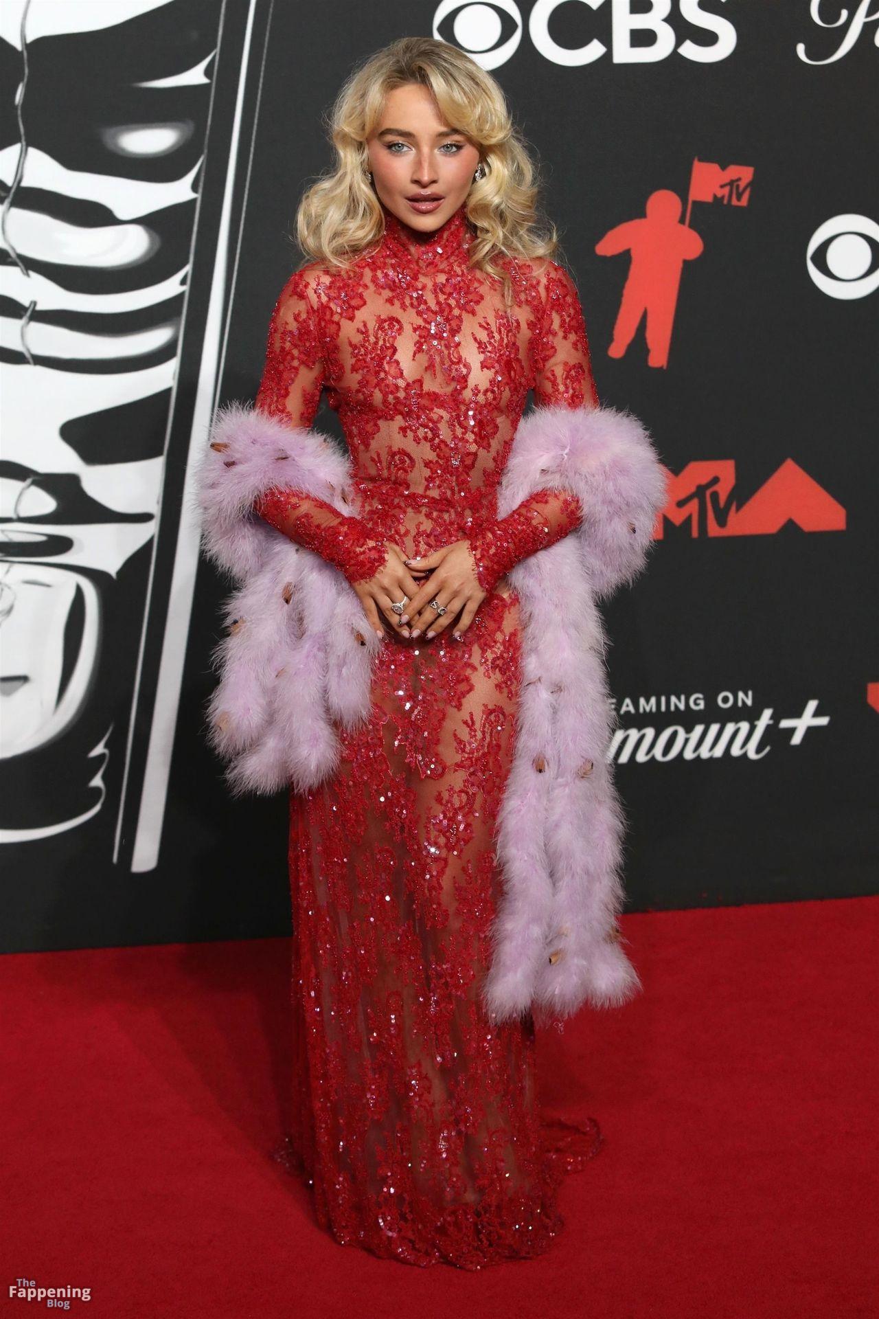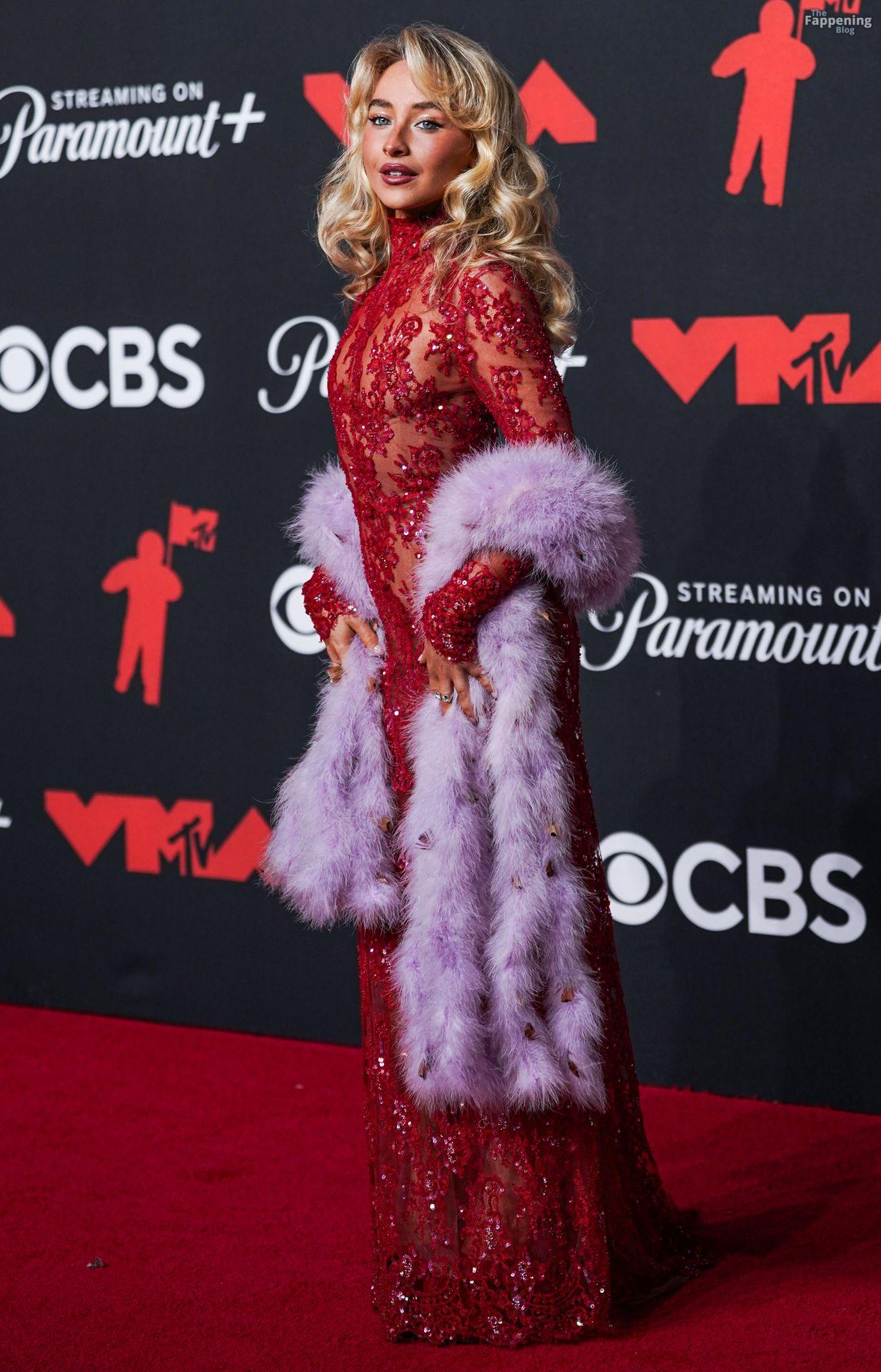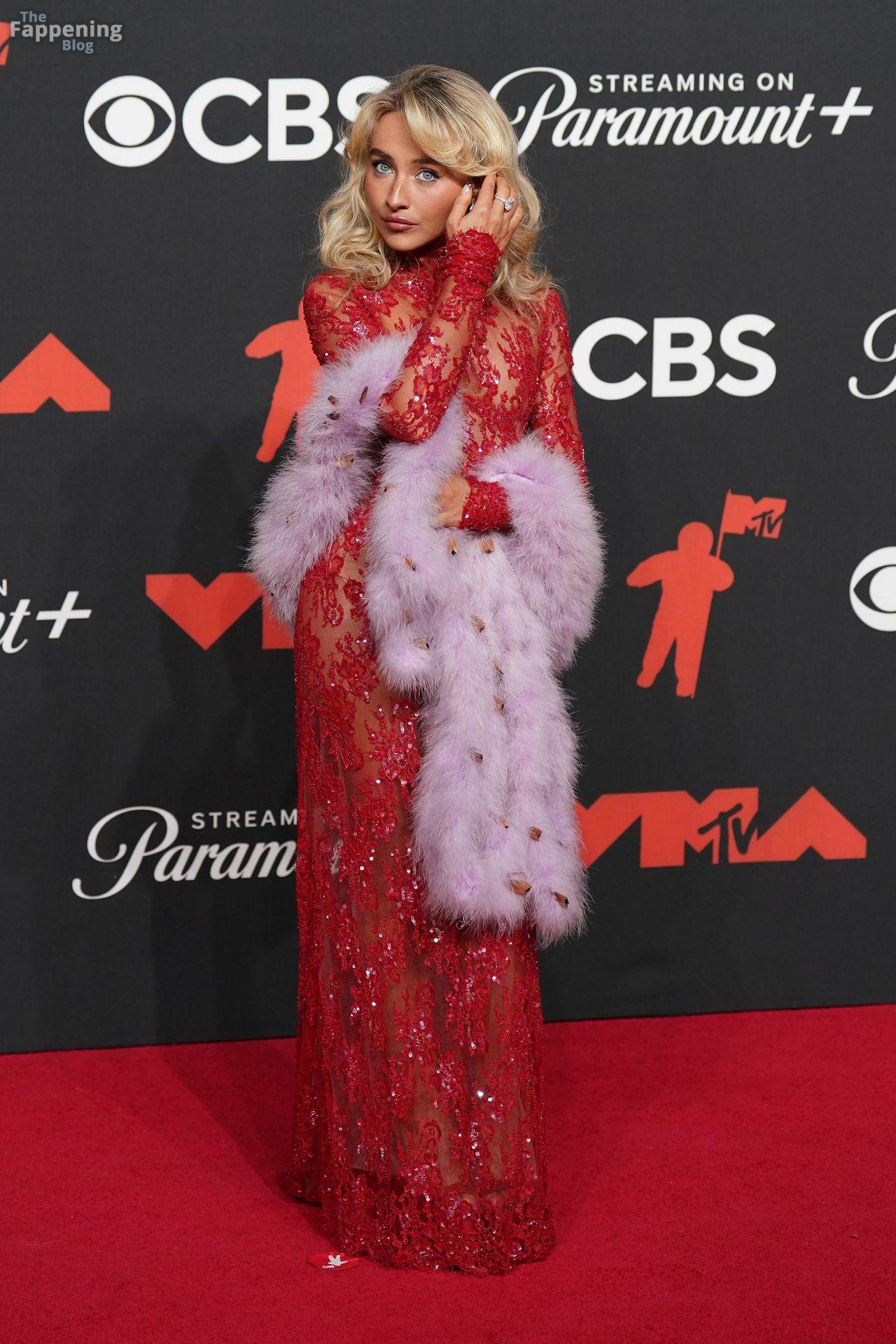 Sabrina Carpenter dominó los MTV Video Music Awards 2025 en UBS Arena el 7 de septiembre de 2025 en Elmont. Caminó por la alfombra roja con un vestido de encaje rojo transparente cubierto de lentejuelas, que abrazaba su figura pequeña y mostraba sus pechos.