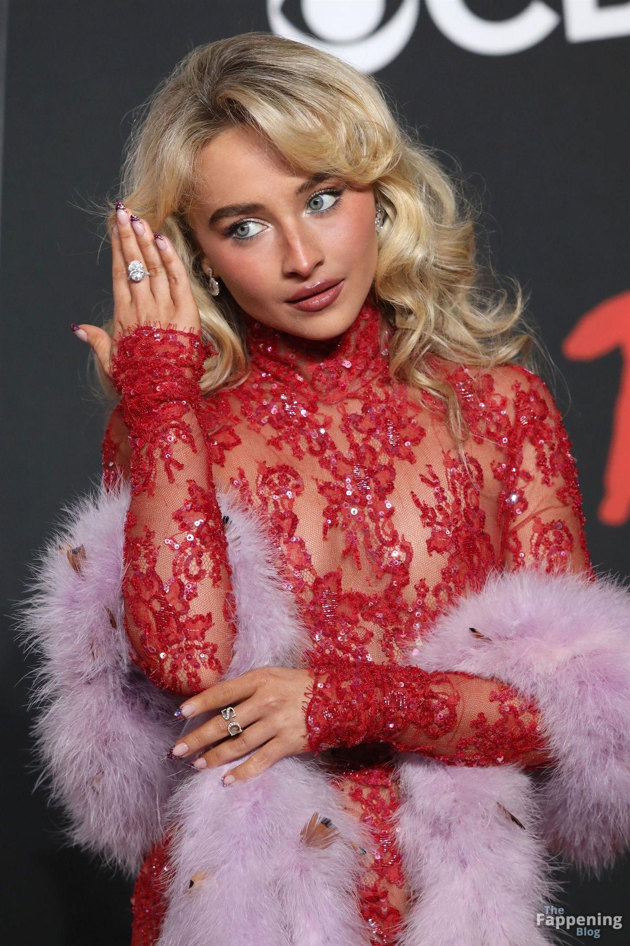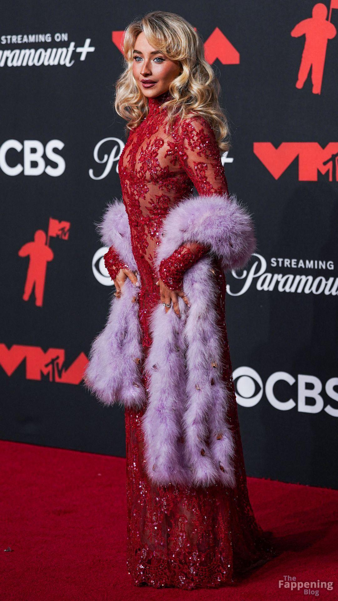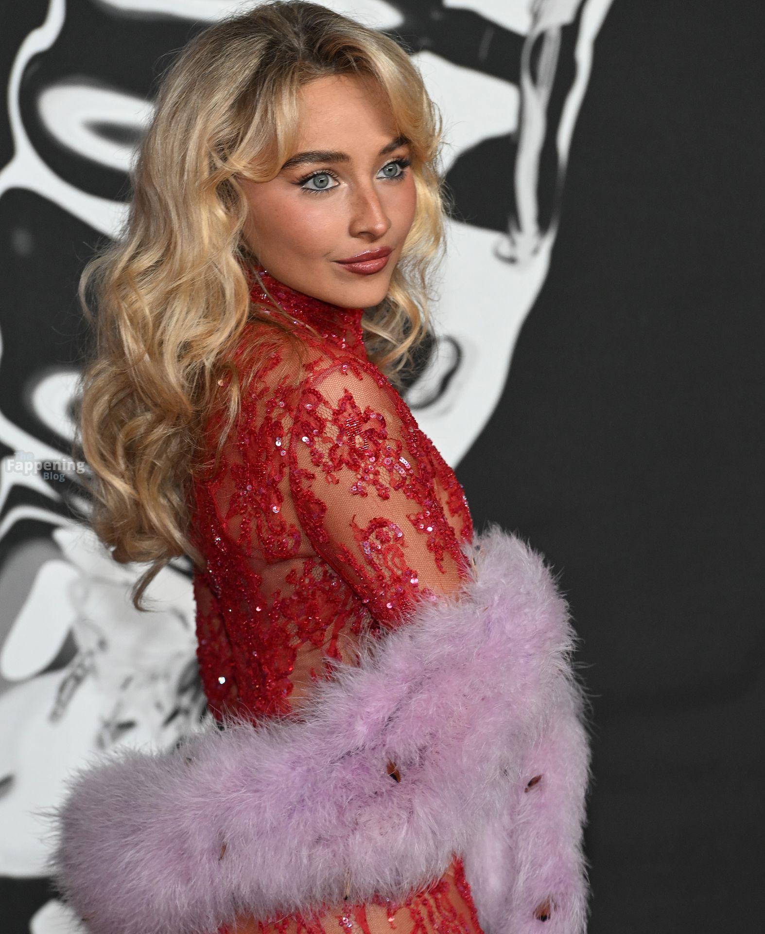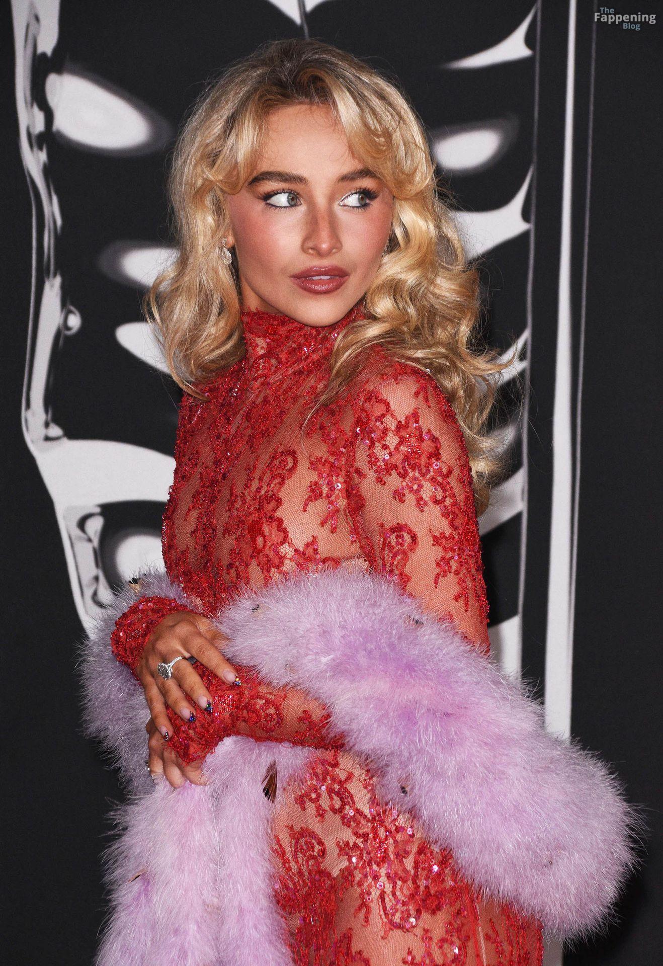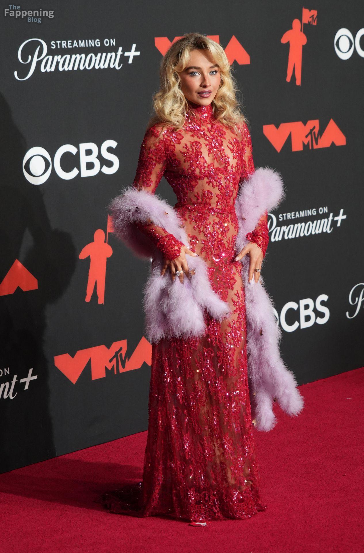 Sabrina Carpenter dominó los MTV Video Music Awards 2025 en UBS Arena el 7 de septiembre de 2025 en Elmont. Caminó por la alfombra roja con un vestido de encaje rojo transparente cubierto de lentejuelas, que abrazaba su figura pequeña y mostraba sus pechos.