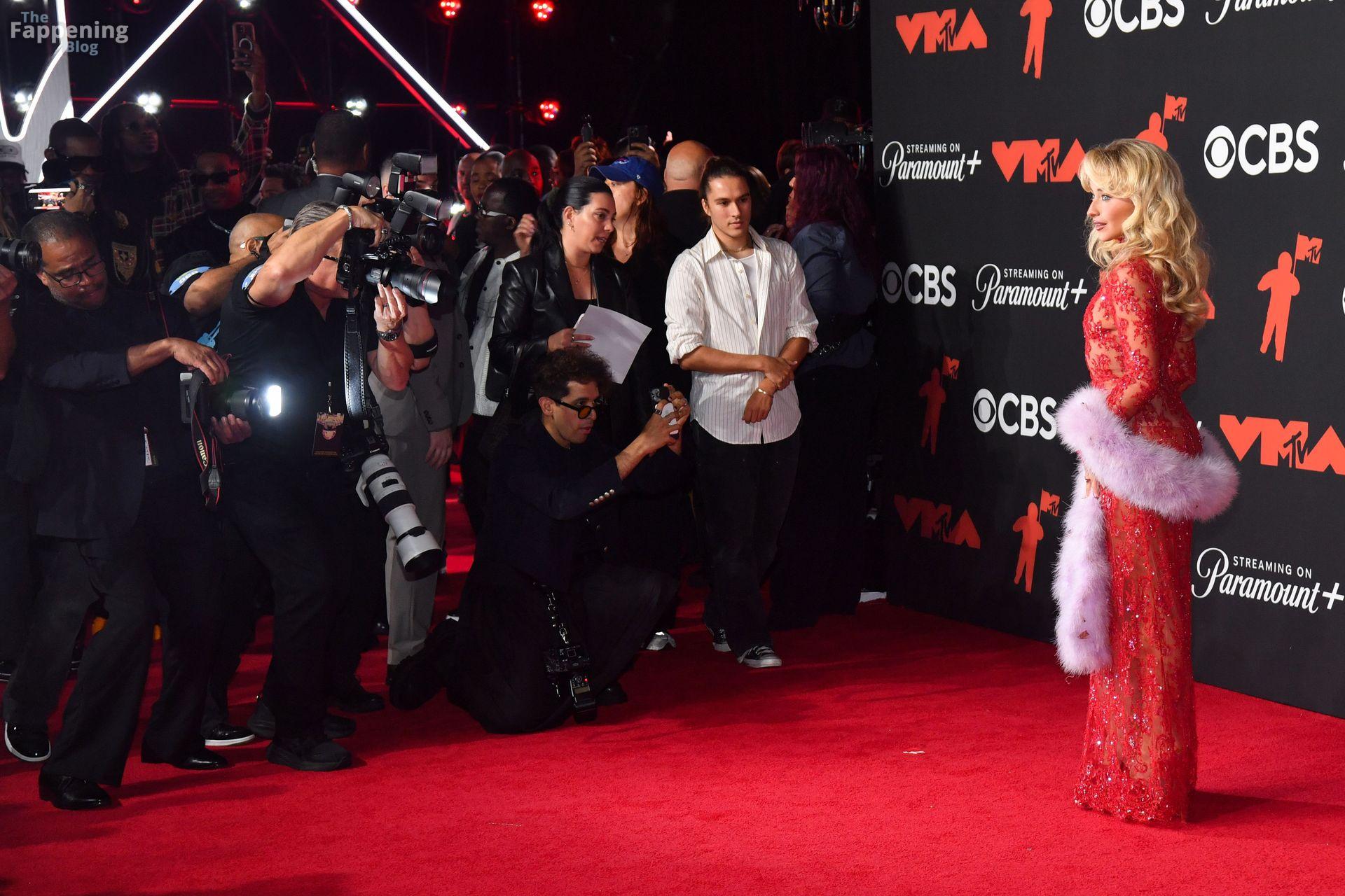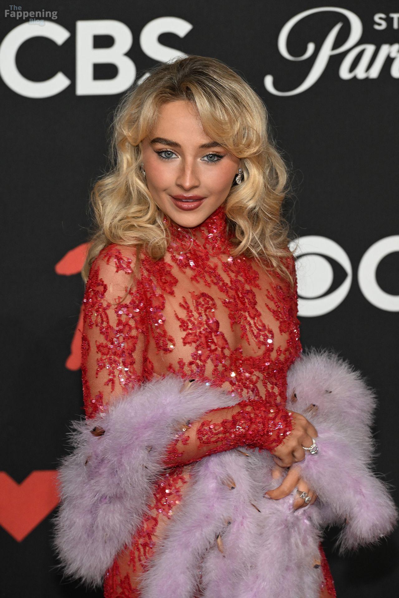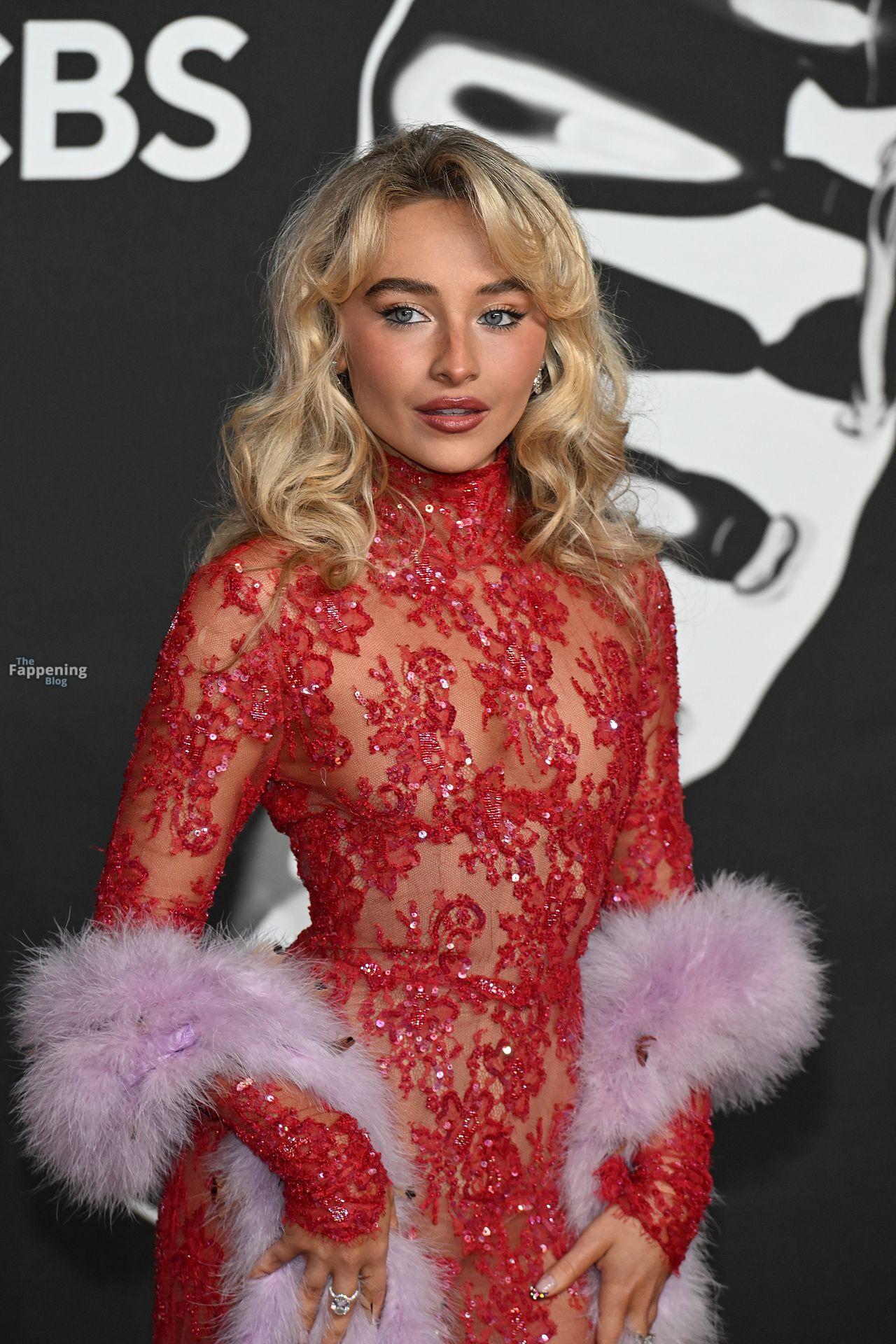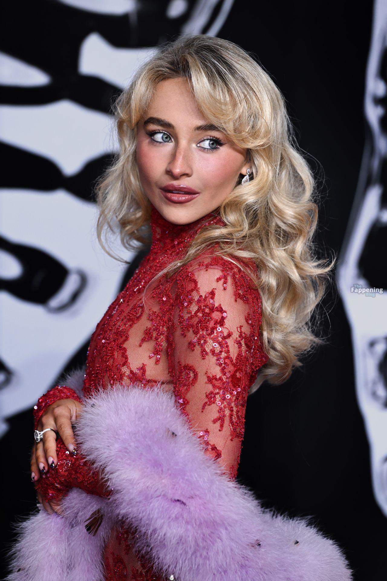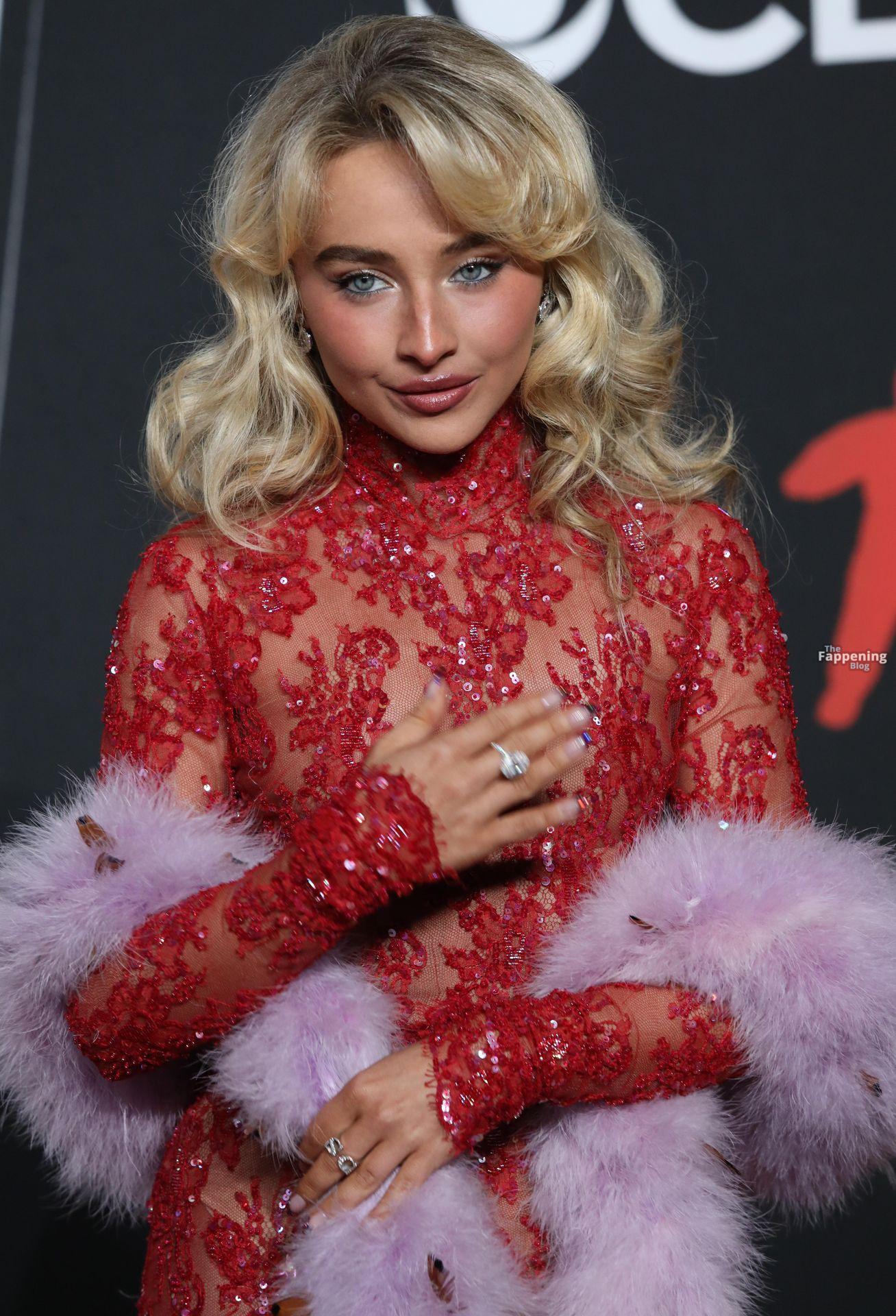 Sabrina Carpenter dominó los MTV Video Music Awards 2025 en UBS Arena el 7 de septiembre de 2025 en Elmont. Caminó por la alfombra roja con un vestido de encaje rojo transparente cubierto de lentejuelas, que abrazaba su figura pequeña y mostraba sus pechos.