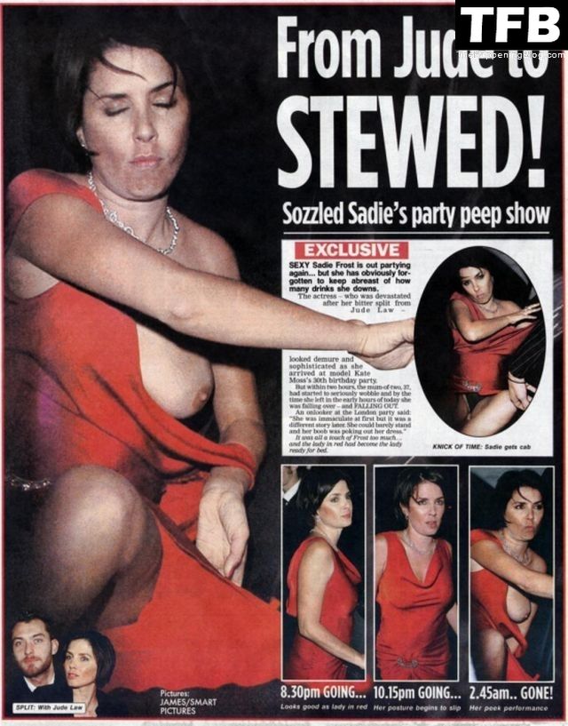 Consulta las fotos desnudas y sexys de Sadie Frost de los archivos de paparazzi, eventos oficiales y capturas de pantalla con escenas desnudas y sexuales de “Dark Obsession” y “Rancid Aluminium”.