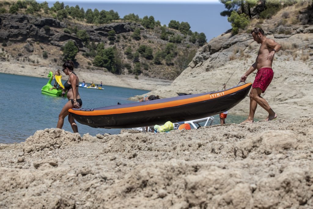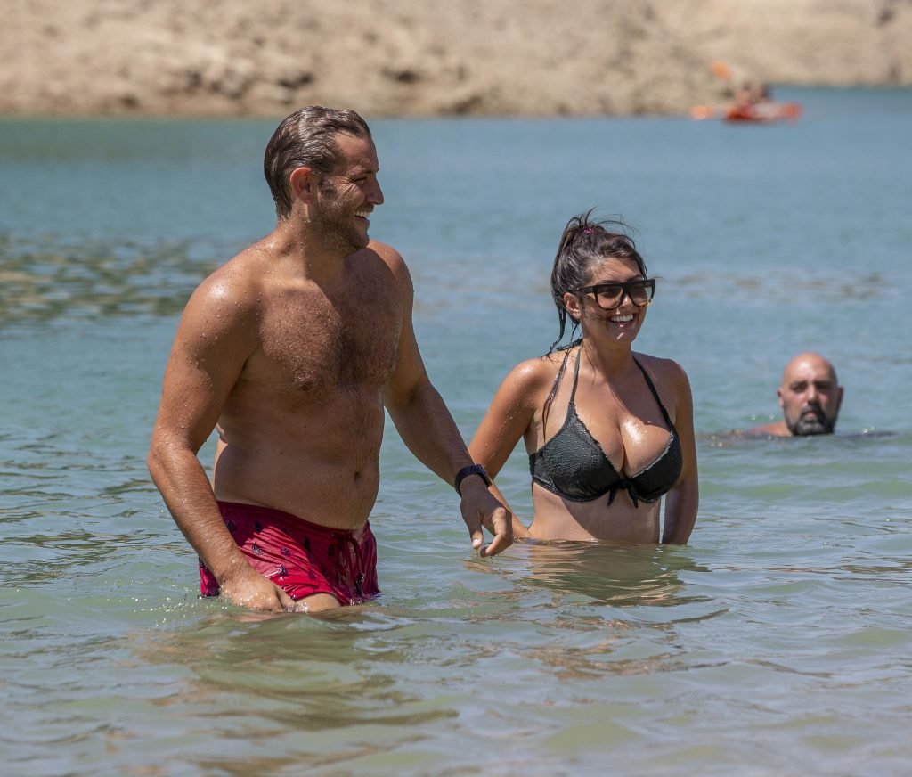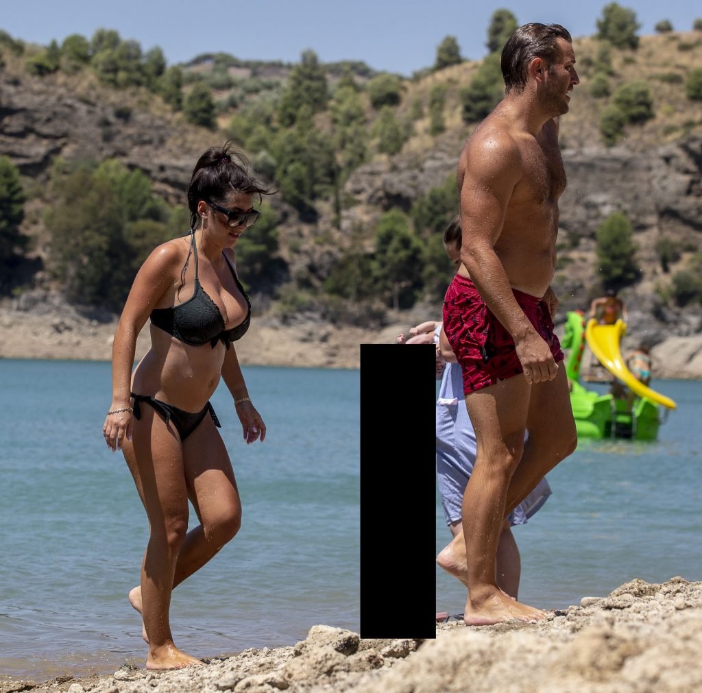 Pregnant Sadie Stuart and husband Elliott Wright were spotted in Marbella, Spain, 08/26/2018. They spent the day in the Mountain Lakes by enjoying their time kayaking and swimming in the Spanish sun. Sadie is now 5 months pregnant as she shows off her glowing baby bump in a bikini. At one point their kayak capsizes, as they laugh Elliott helps Sadie get back on.
