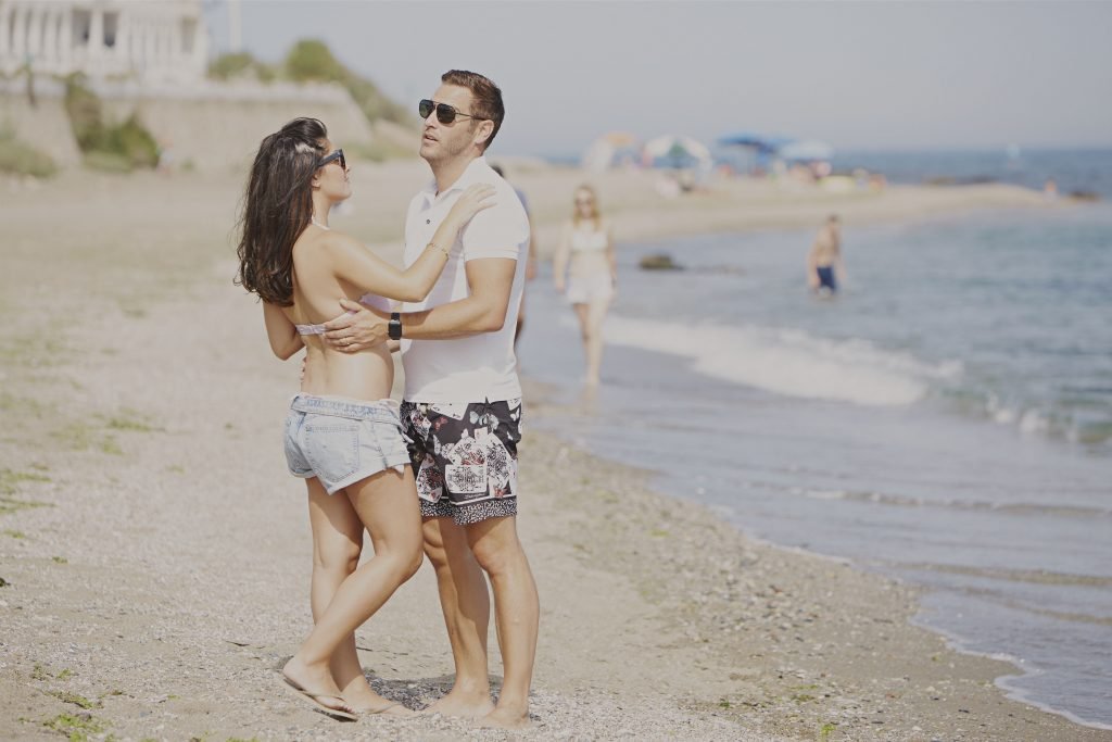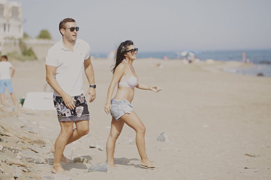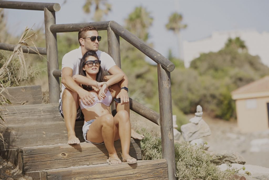 Elliott y Sadie Wright fueron vistos en un paseo vespertino por la playa en Marbella, España, 13/08/2018. La voluptuosa Sadie fue vista mostrando su creciente barriga de embarazada. Sadie Stuart (Wright) es cantante, compositora, modelo y personalidad de la televisión de realidad. Nacida: 7 de febrero de 1992.