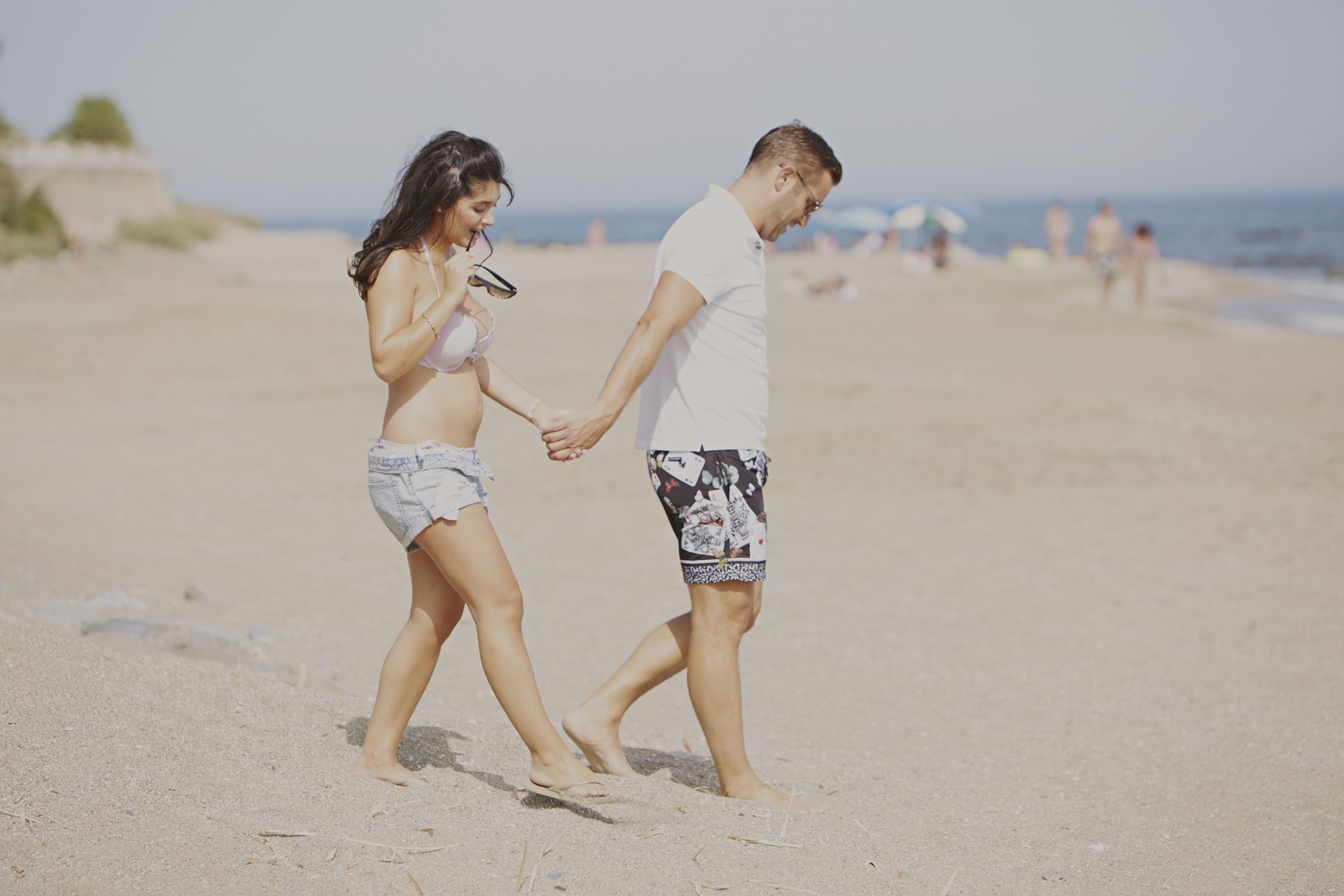 Elliott y Sadie Wright fueron vistos en un paseo vespertino por la playa en Marbella, España, 13/08/2018. La voluptuosa Sadie fue vista mostrando su creciente barriga de embarazada. Sadie Stuart (Wright) es cantante, compositora, modelo y personalidad de la televisión de realidad. Nacida: 7 de febrero de 1992.