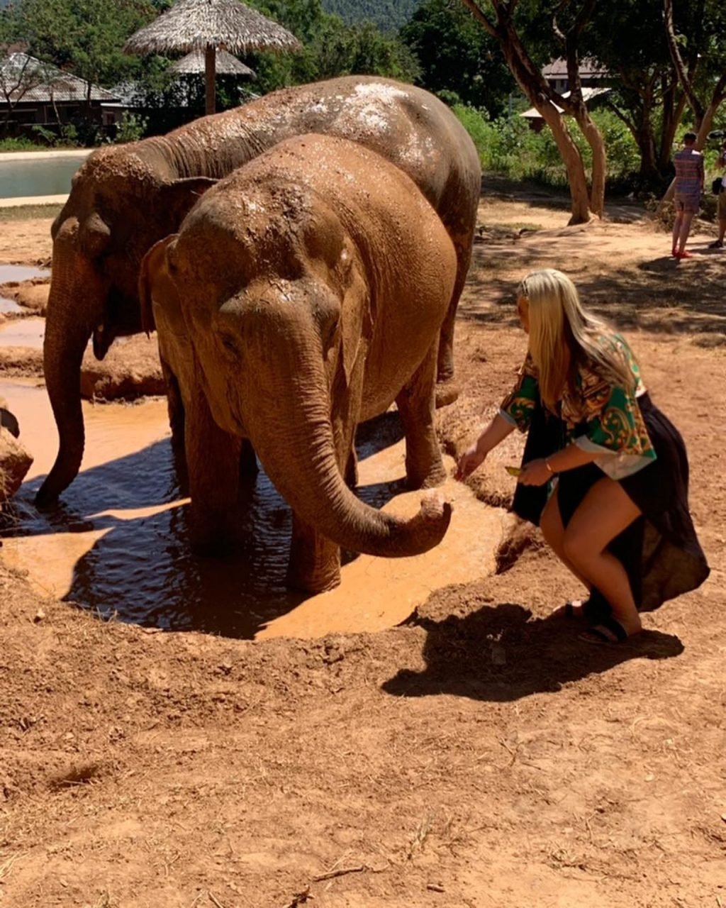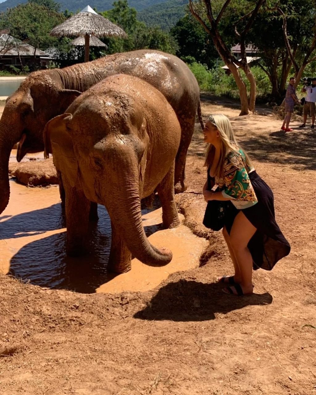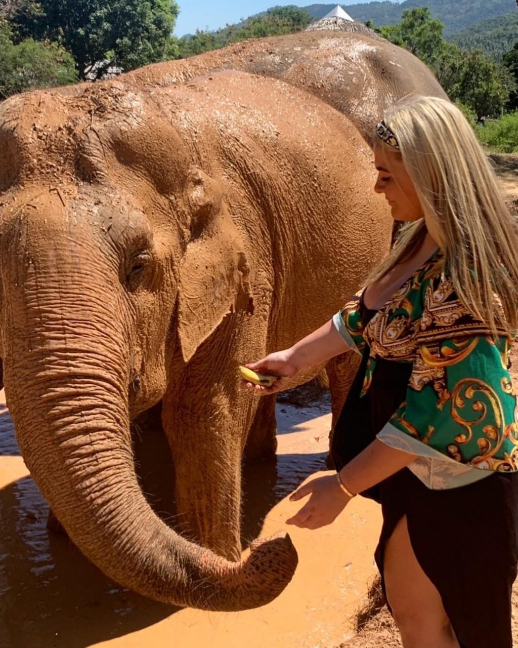 Las estrellas de TOWIE, Saffron Lempriere, Pete Wicks, Chloe Sims y Bobby Norris visitan el santuario de elefantes de Samui mientras están en Tailandia, 03/09/2019.