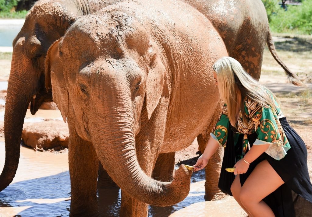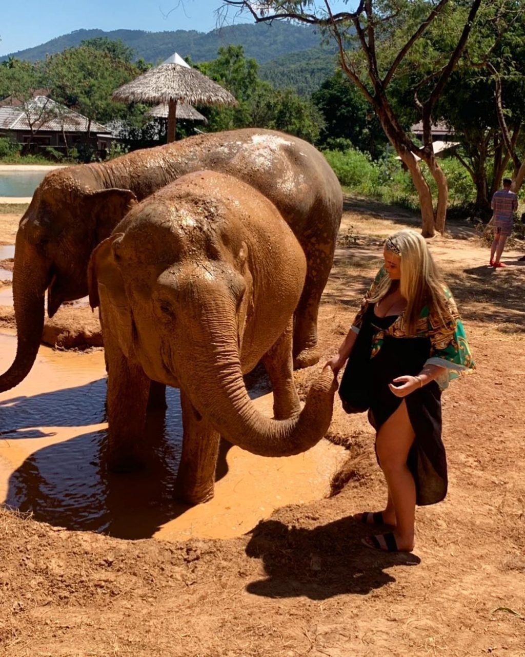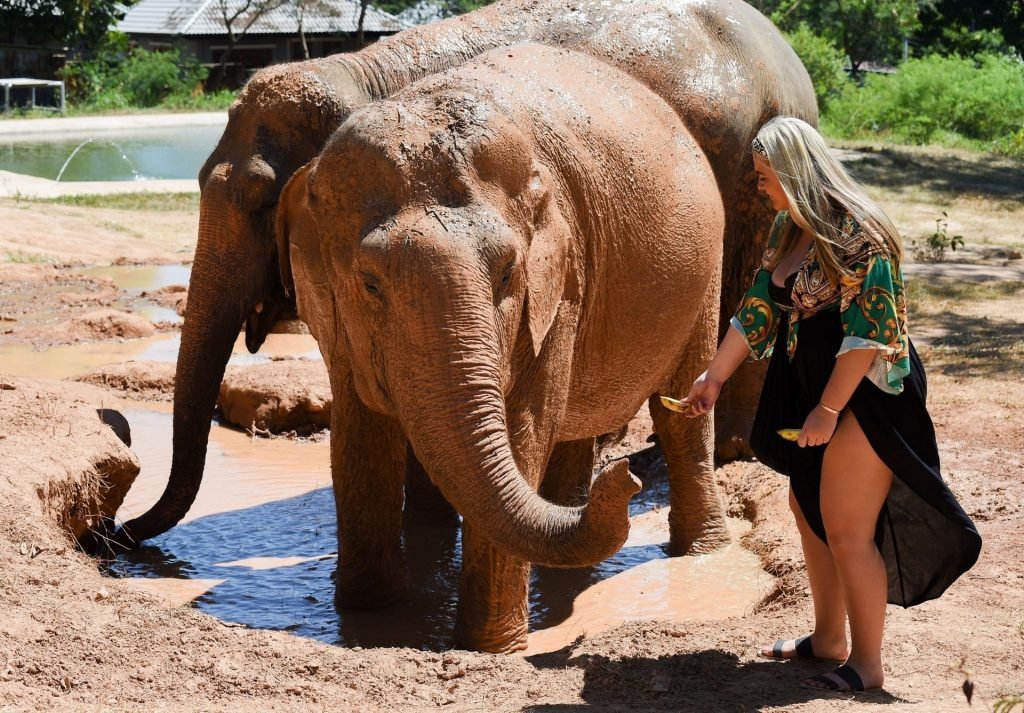Las estrellas de TOWIE, Saffron Lempriere, Pete Wicks, Chloe Sims y Bobby Norris visitan el santuario de elefantes de Samui mientras están en Tailandia, 03/09/2019.