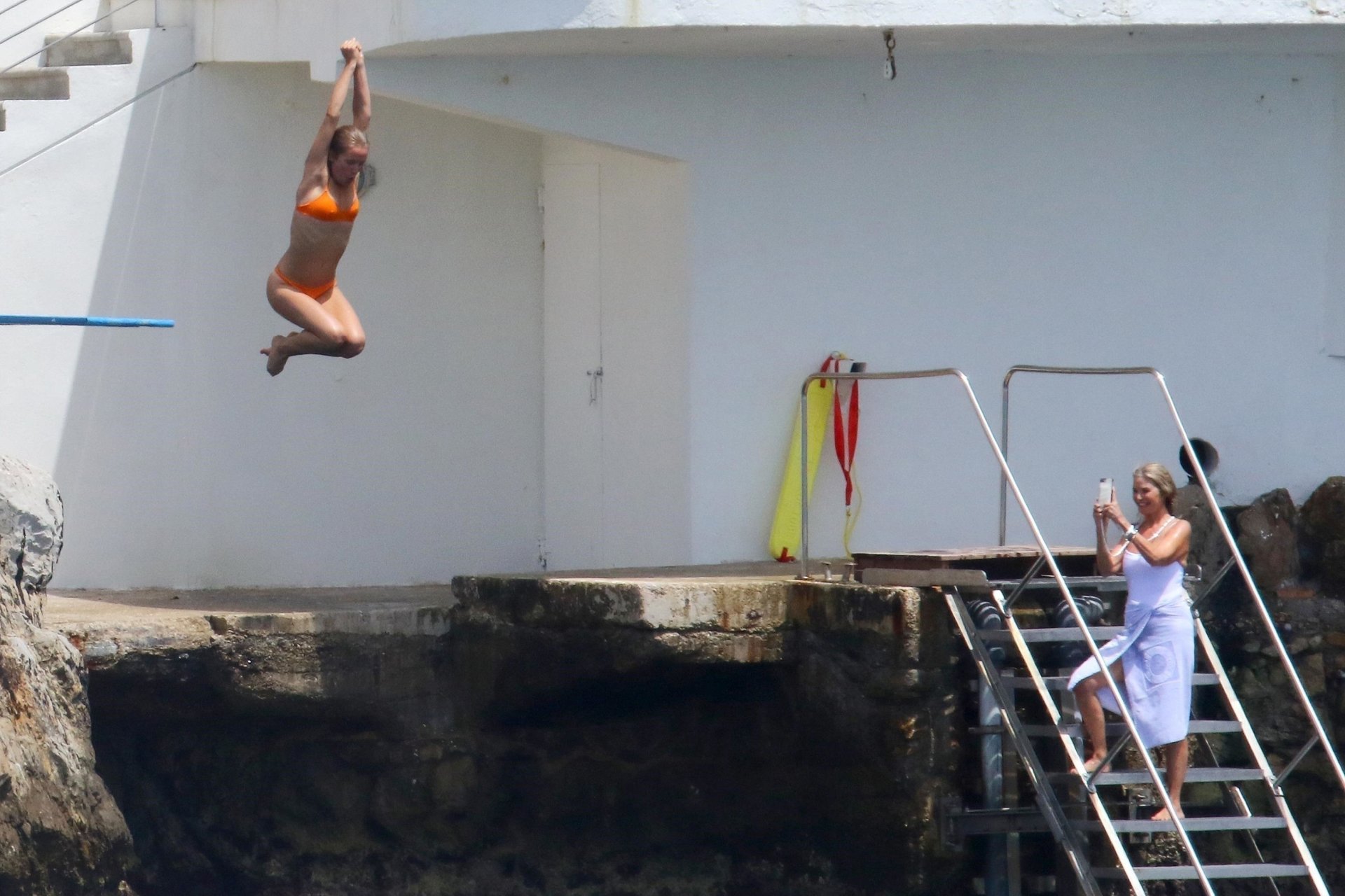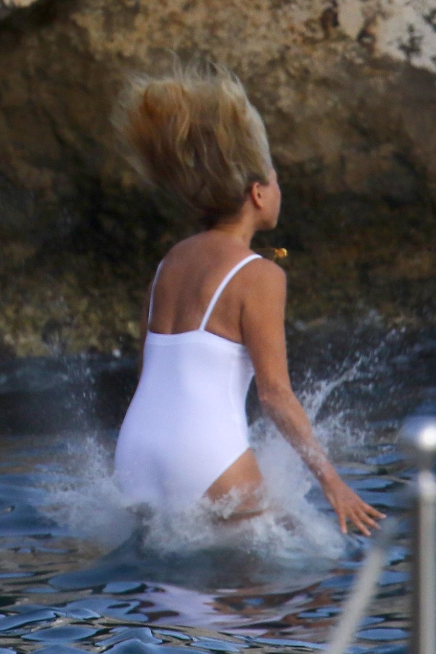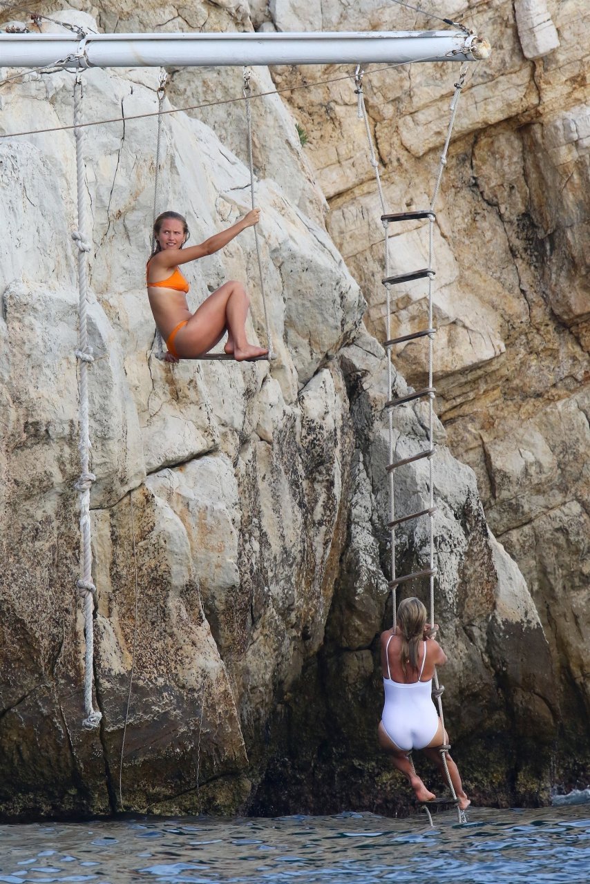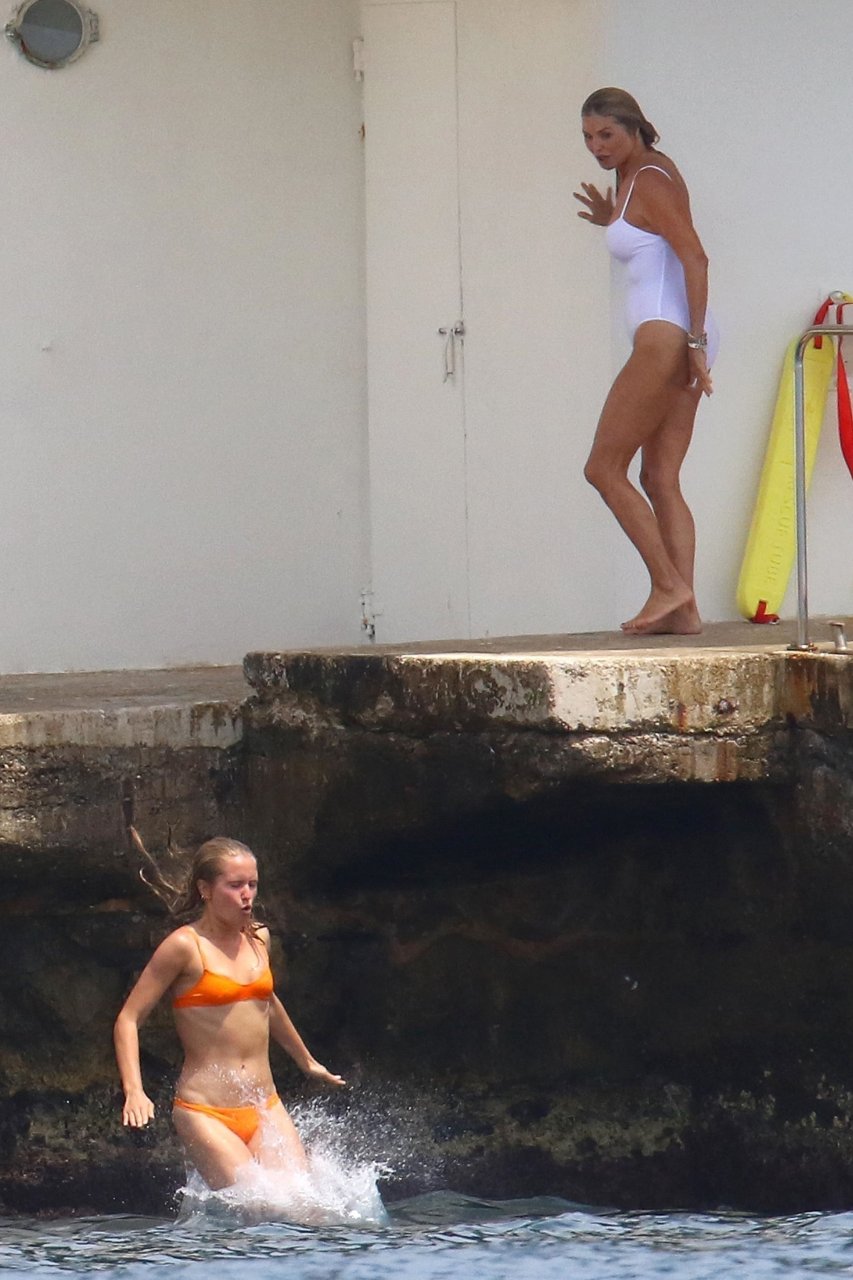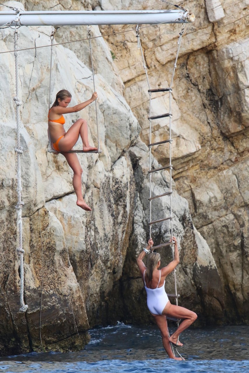 Sailor Lee Brinkley-Cook y su madre Christie Brinkley disfrutan de una tarde en el Hotel Eden Roc, 10/06/2018. El dúo se divierte trepando en un columpio de cuerda y zambulléndose en las aguas azul cristalino fuera del hotel.