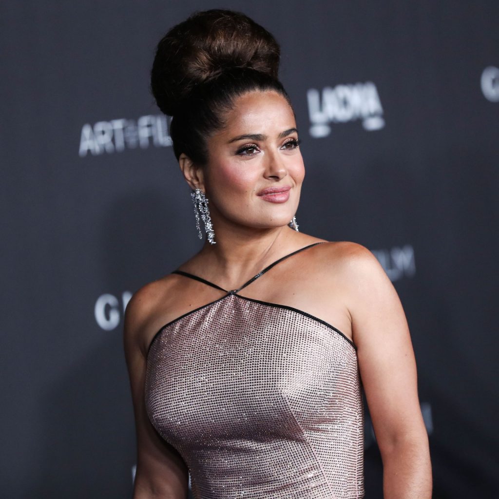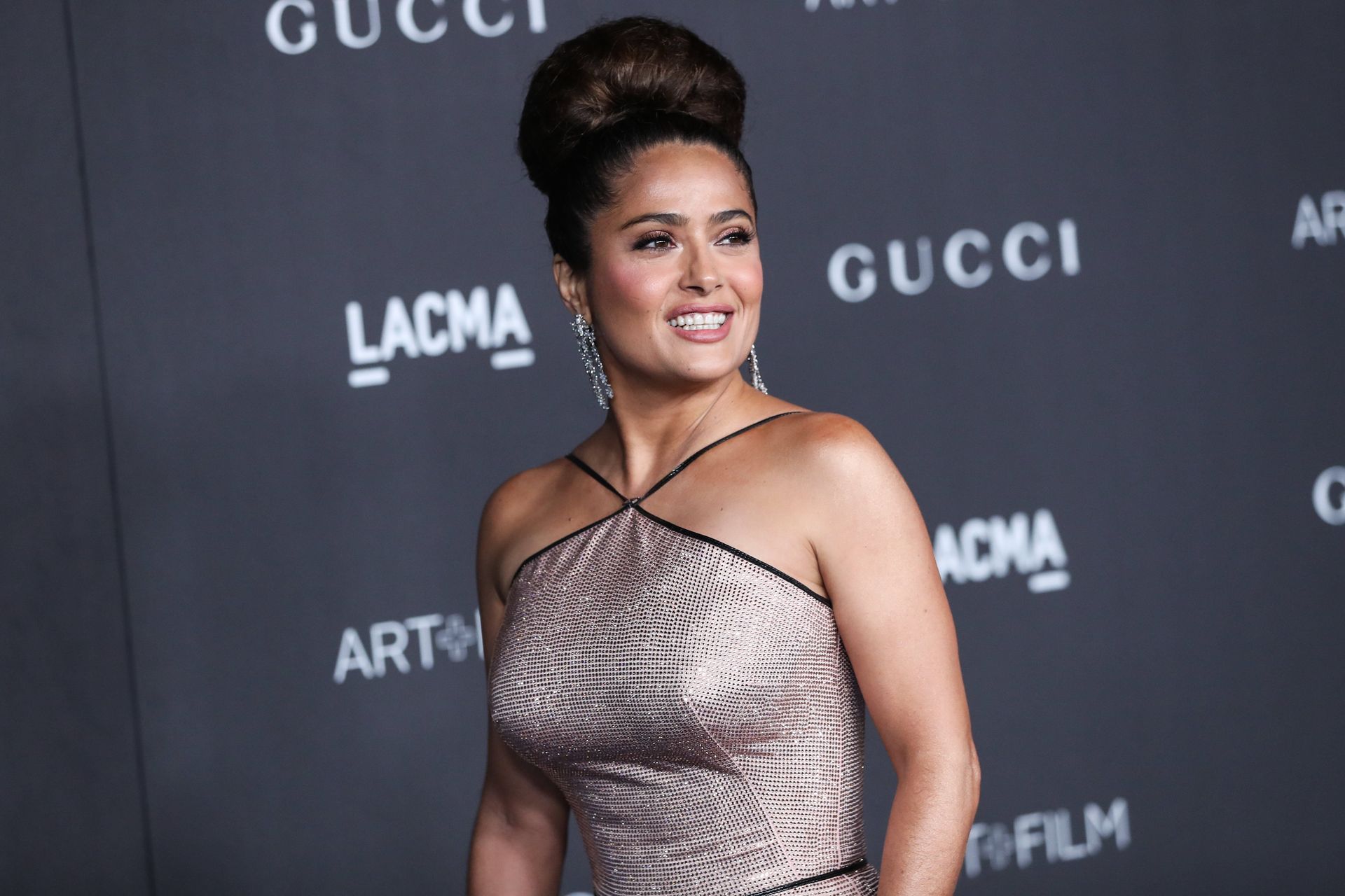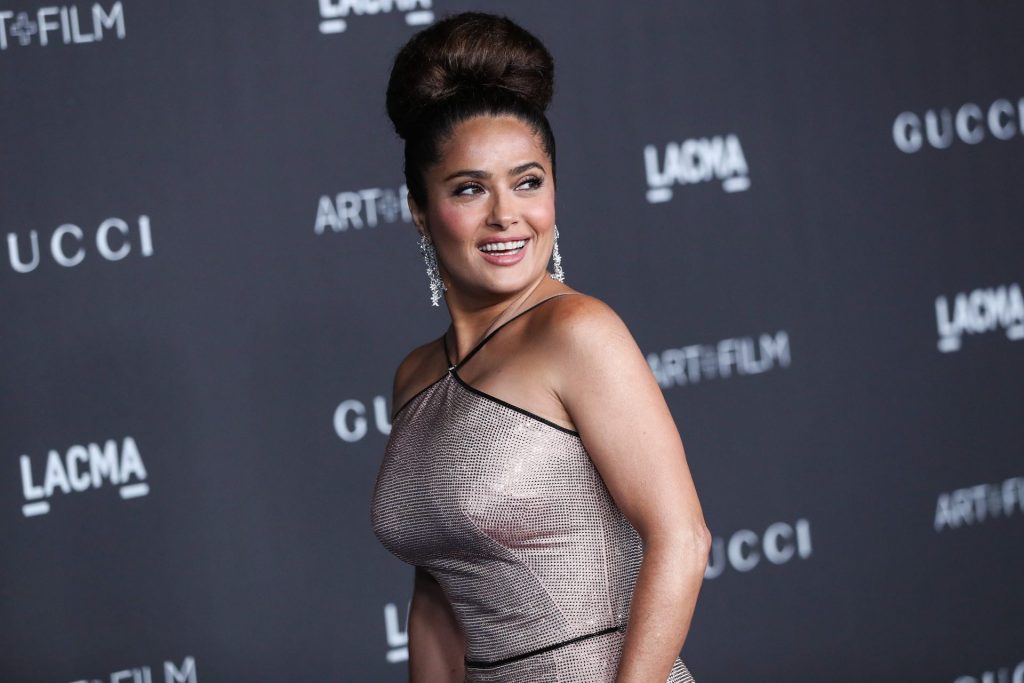 La actriz voluptuosa Salma Hayek Pinault, vestida con Gucci, llega a la Gala de Arte + Cine LACMA 2019 celebrada en el Museo de Arte del Condado de Los Ángeles el 2 de noviembre de 2019 en Los Ángeles.