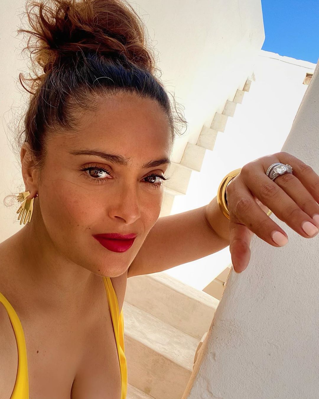 La cumpleañera Salma Hayek muestra su sexy cuerpo MILF en trajes de baño negros y amarillos – Instagram (septiembre 2020).