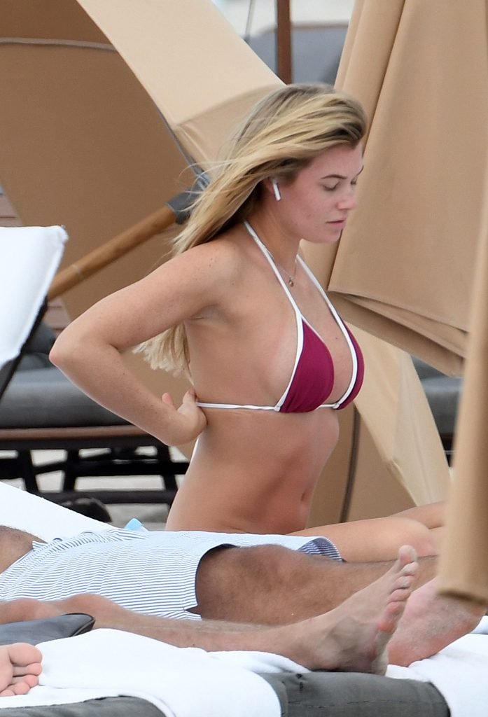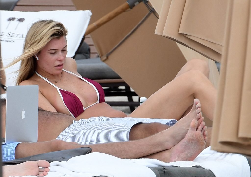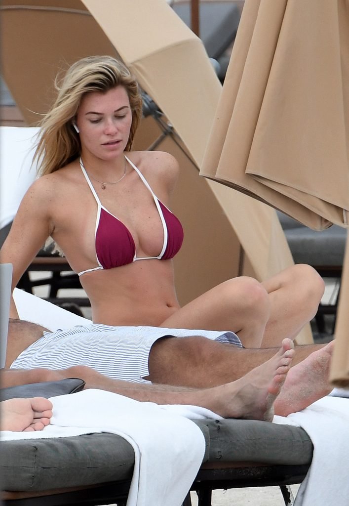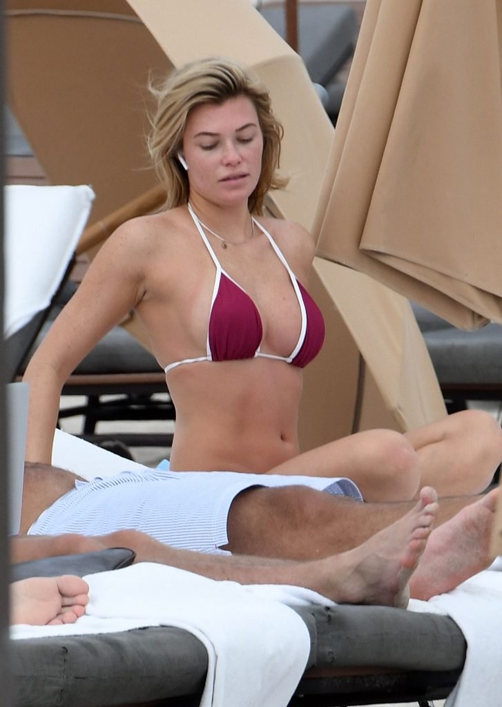 La modelo de Sports Illustrated Samantha Hoopes muestra sus curvas con un bikini muy escaso en la playa de Miami, 20/02/2018.