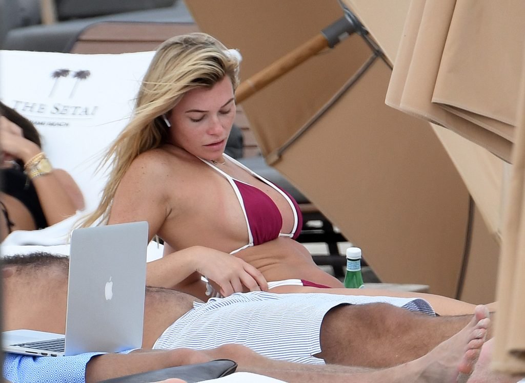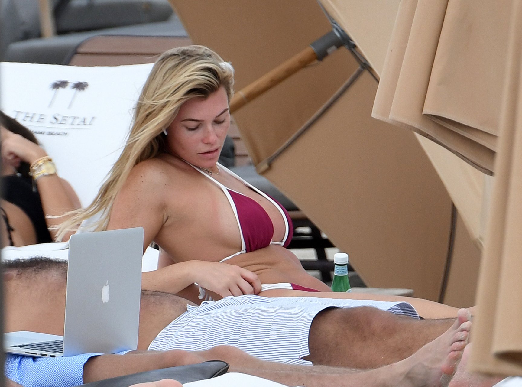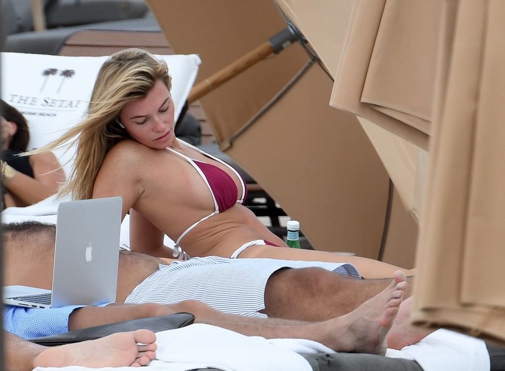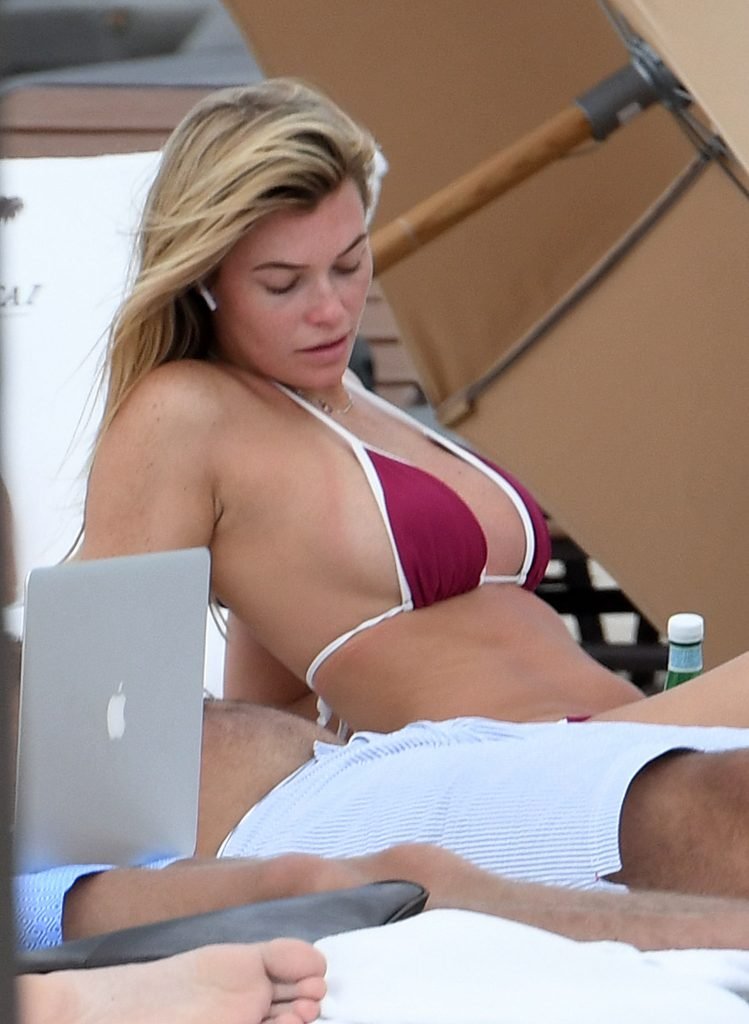 La modelo de Sports Illustrated Samantha Hoopes muestra sus curvas con un bikini muy escaso en la playa de Miami, 20/02/2018.