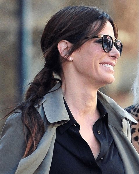 Famous Sandra Bullock is taking off her coat to reveal some black lingerie. She climbs into a guy’s lap and undoes his pants. Then Sandra turns around and bends over as they begin to have sex.