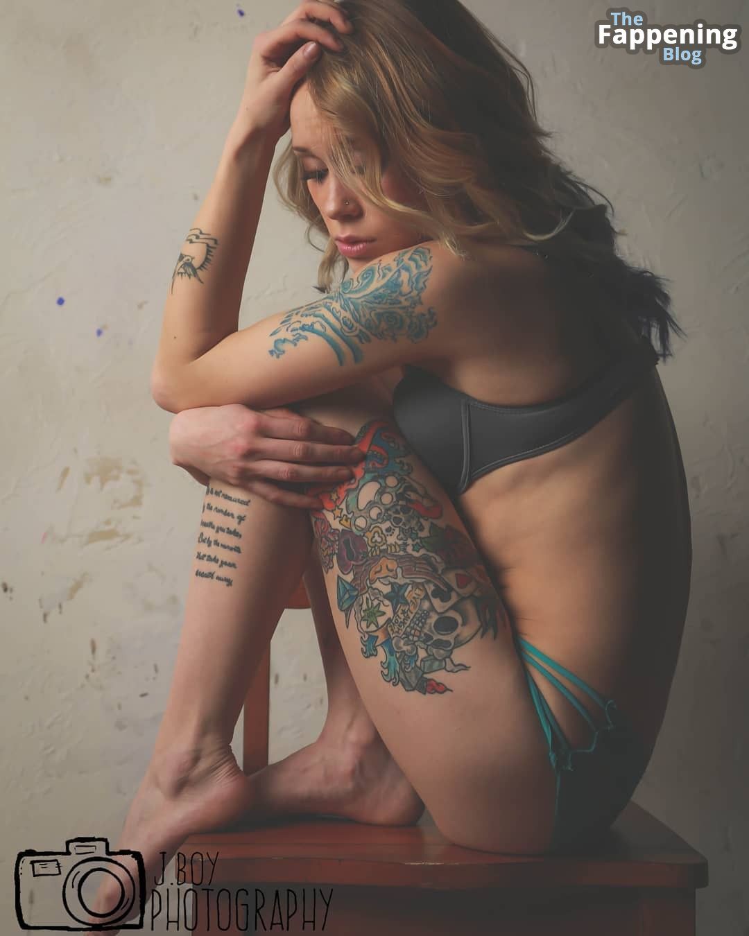 Echa un vistazo a estas fotos de la modelo tatuada Sandra Kay. Definitivamente es única con todos esos tatuajes y es una rubia delgada que le encanta desnudarse. Pero lo que realmente la excita es estar atada con cuerdas, si sabes a lo que me refiero. Esta chica es algo especial, ¡perfecta para darle un toque picante a tu día!