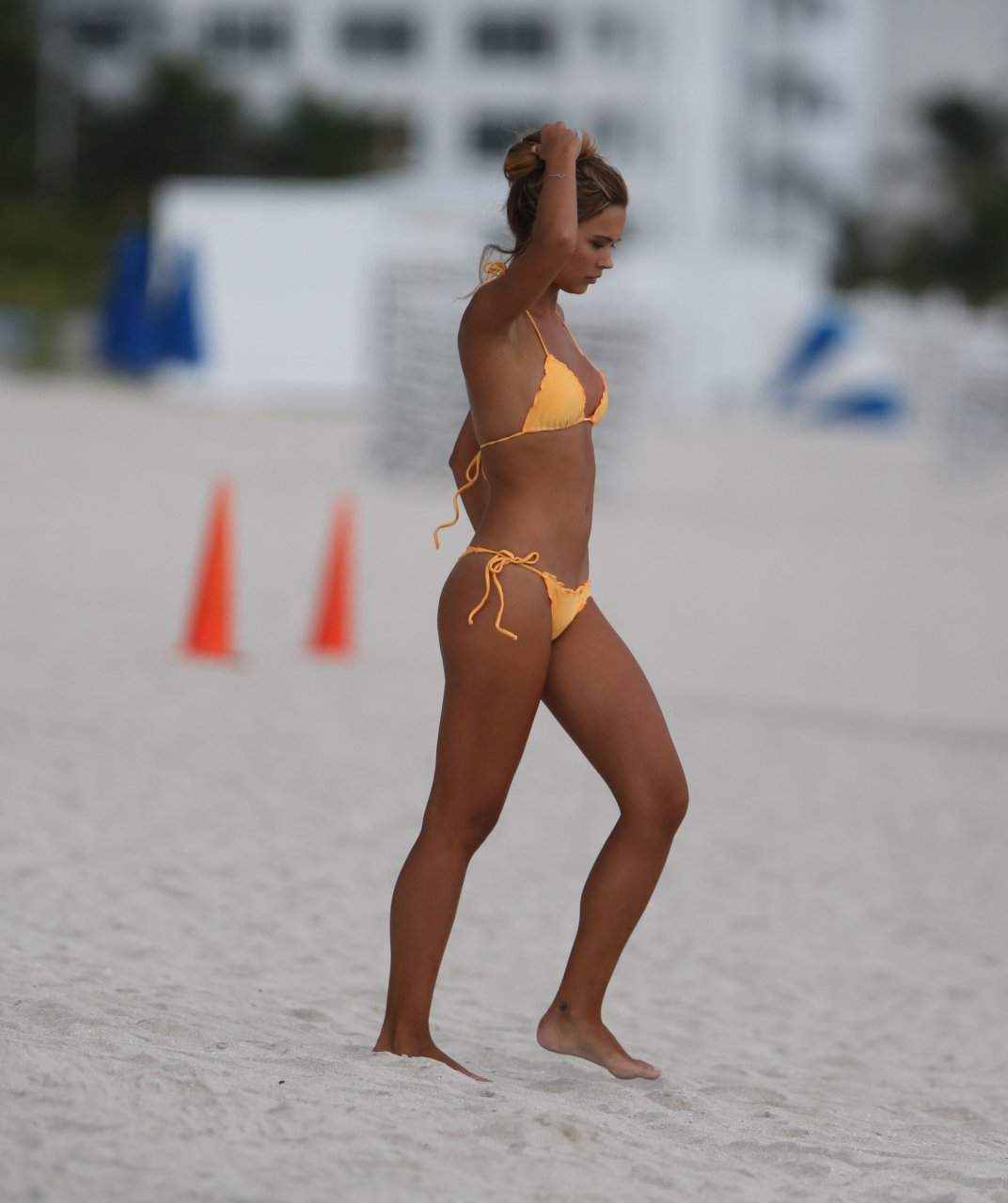 Sandra Kubicka en un bikini naranja en una sesión de fotos en Miami Beach, 27/09/2016. ¡Culo sexy, cara bonita! Sandra Kubicka es una modelo polaca. Edad: 21 (22 de enero de 1995).