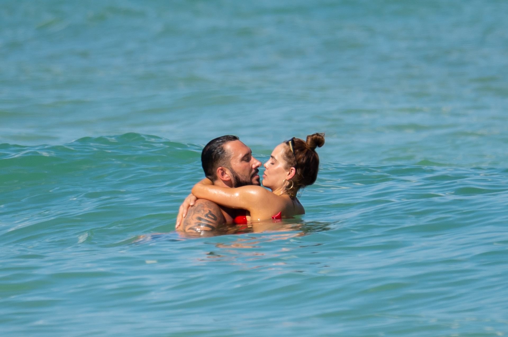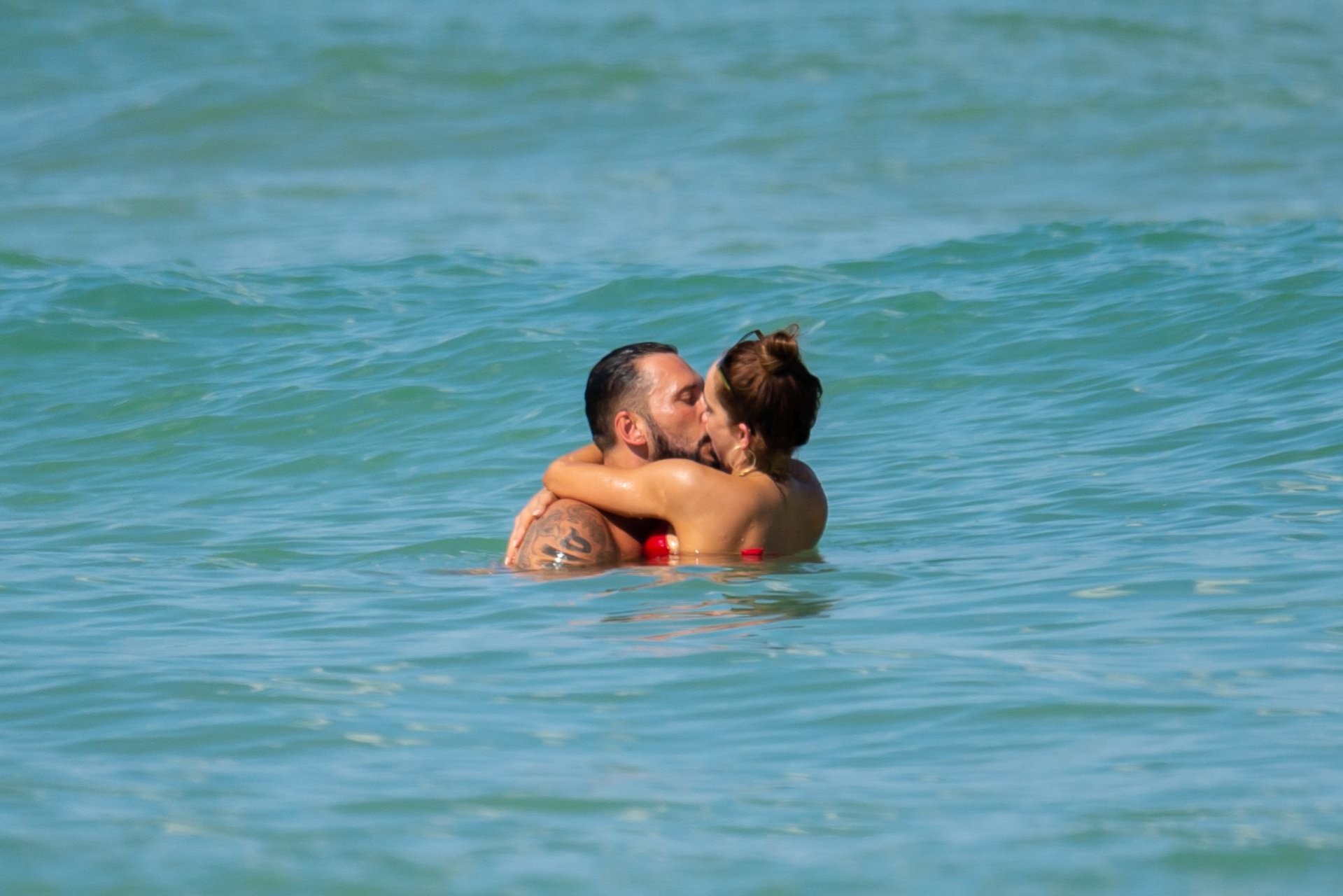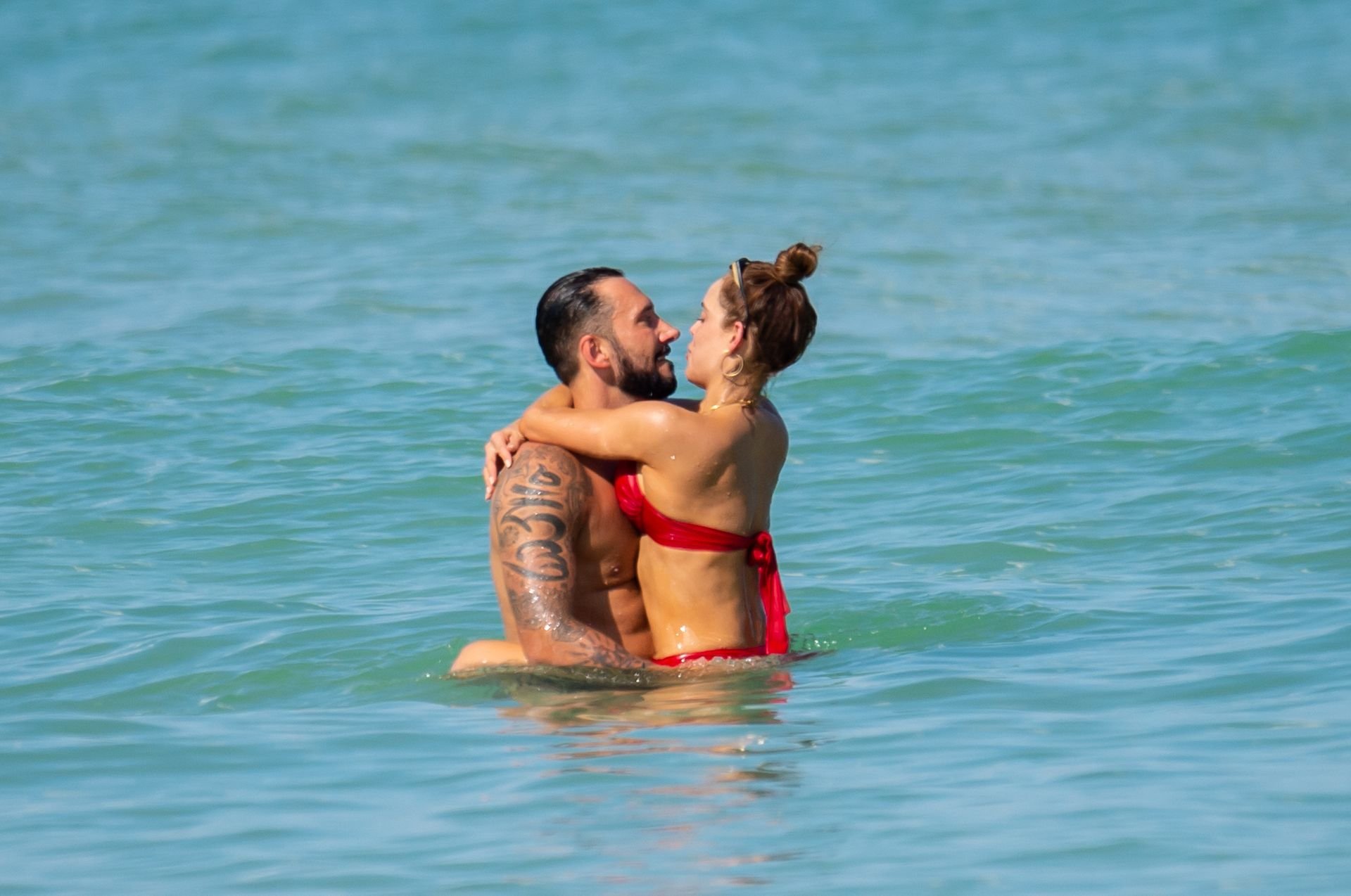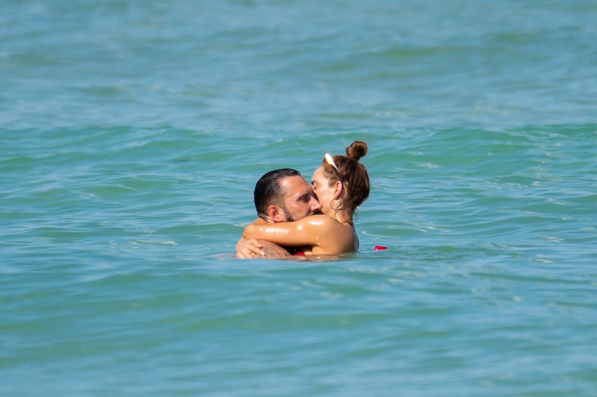 Ahora parece que ya han ido mucho más allá de los mensajes directos. La pareja no pudo mantener las manos alejadas mientras disfrutaban de un refrescante baño en el océano en Miami Beach. Usando un sexy conjunto rojo de dos piezas, Sara mostró las curvas que llamaron la atención de Gervais.