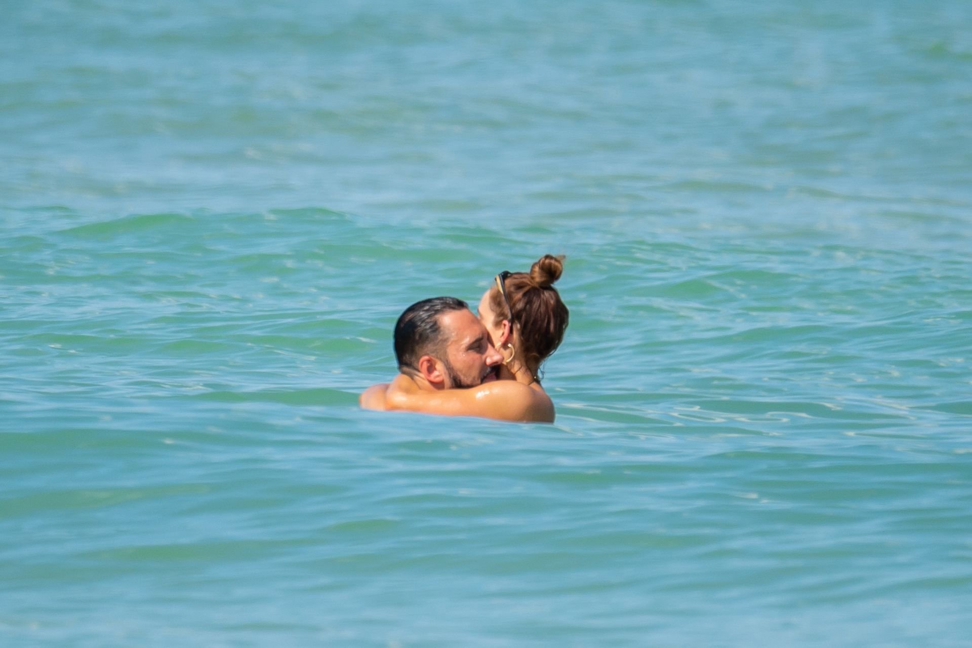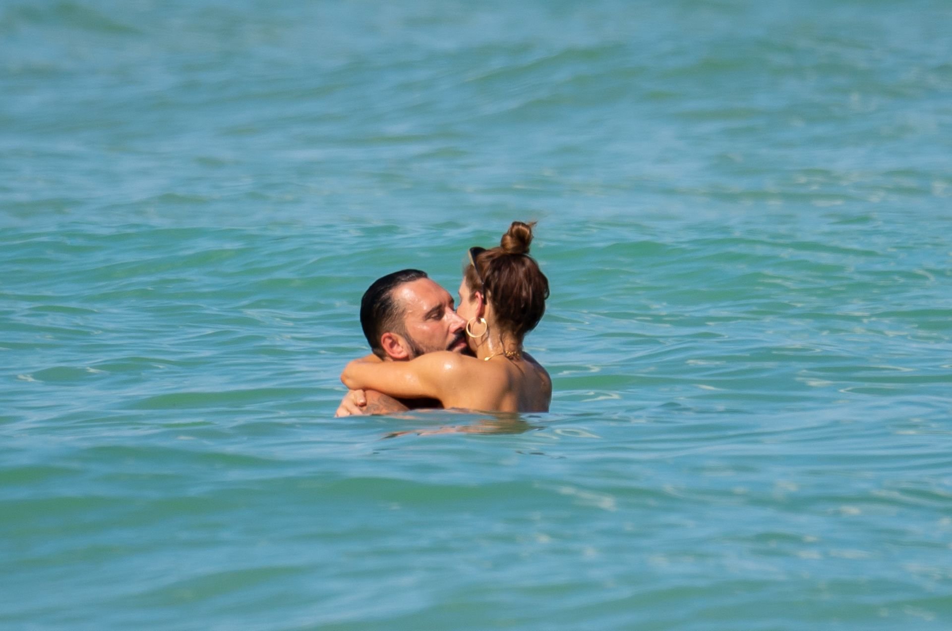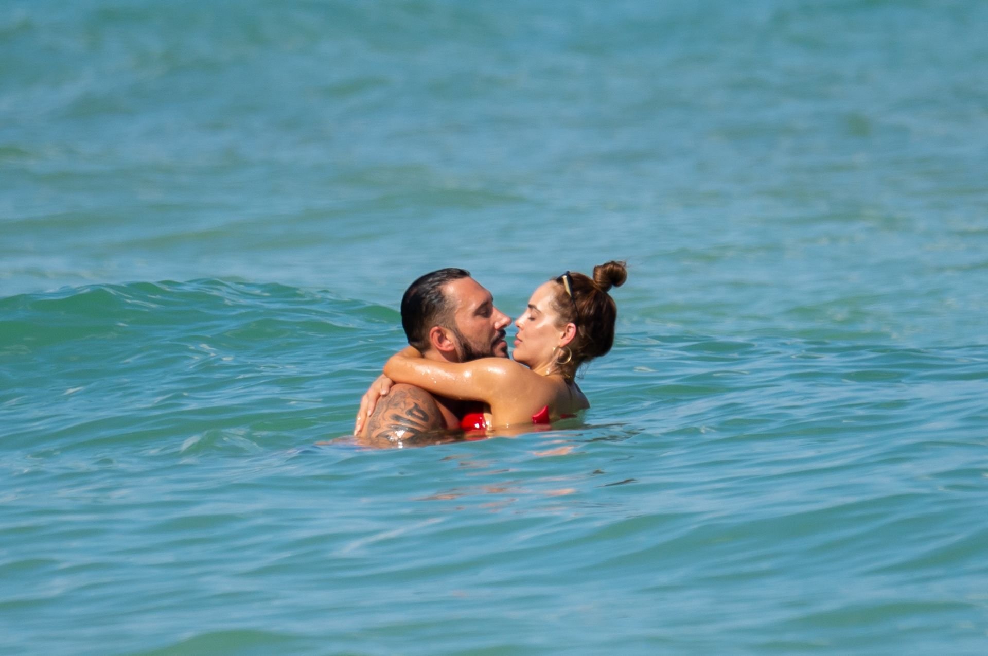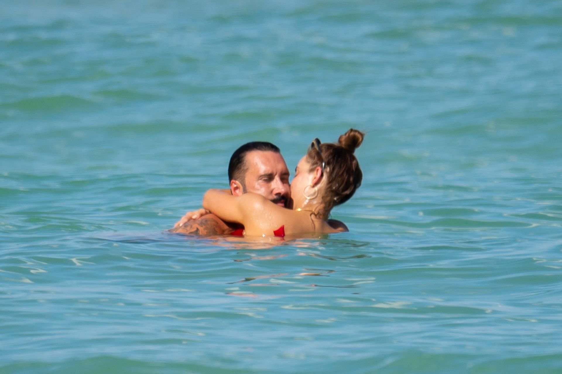 Ahora parece que ya han ido mucho más allá de los mensajes directos. La pareja no pudo mantener las manos alejadas mientras disfrutaban de un refrescante baño en el océano en Miami Beach. Usando un sexy conjunto rojo de dos piezas, Sara mostró las curvas que llamaron la atención de Gervais.