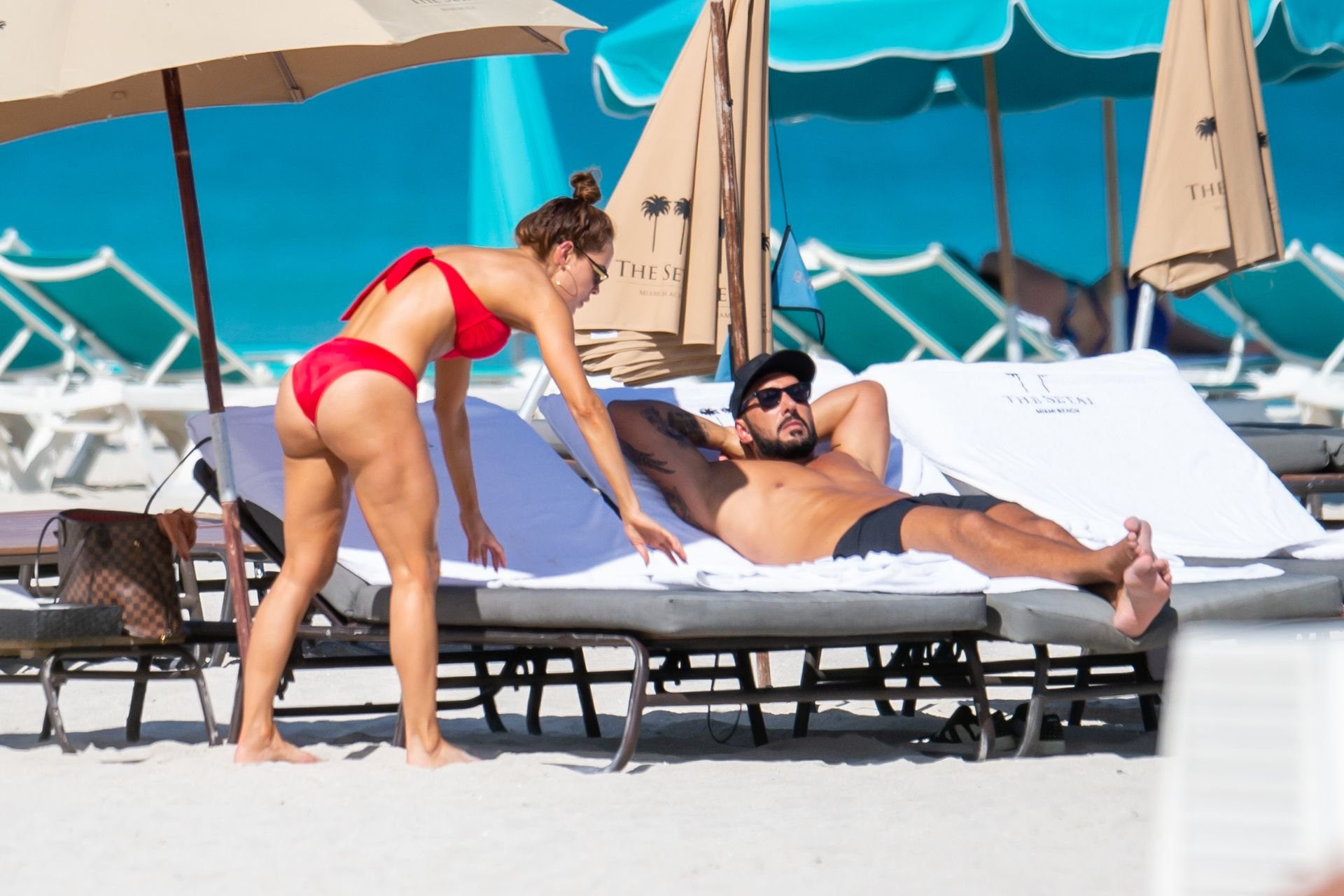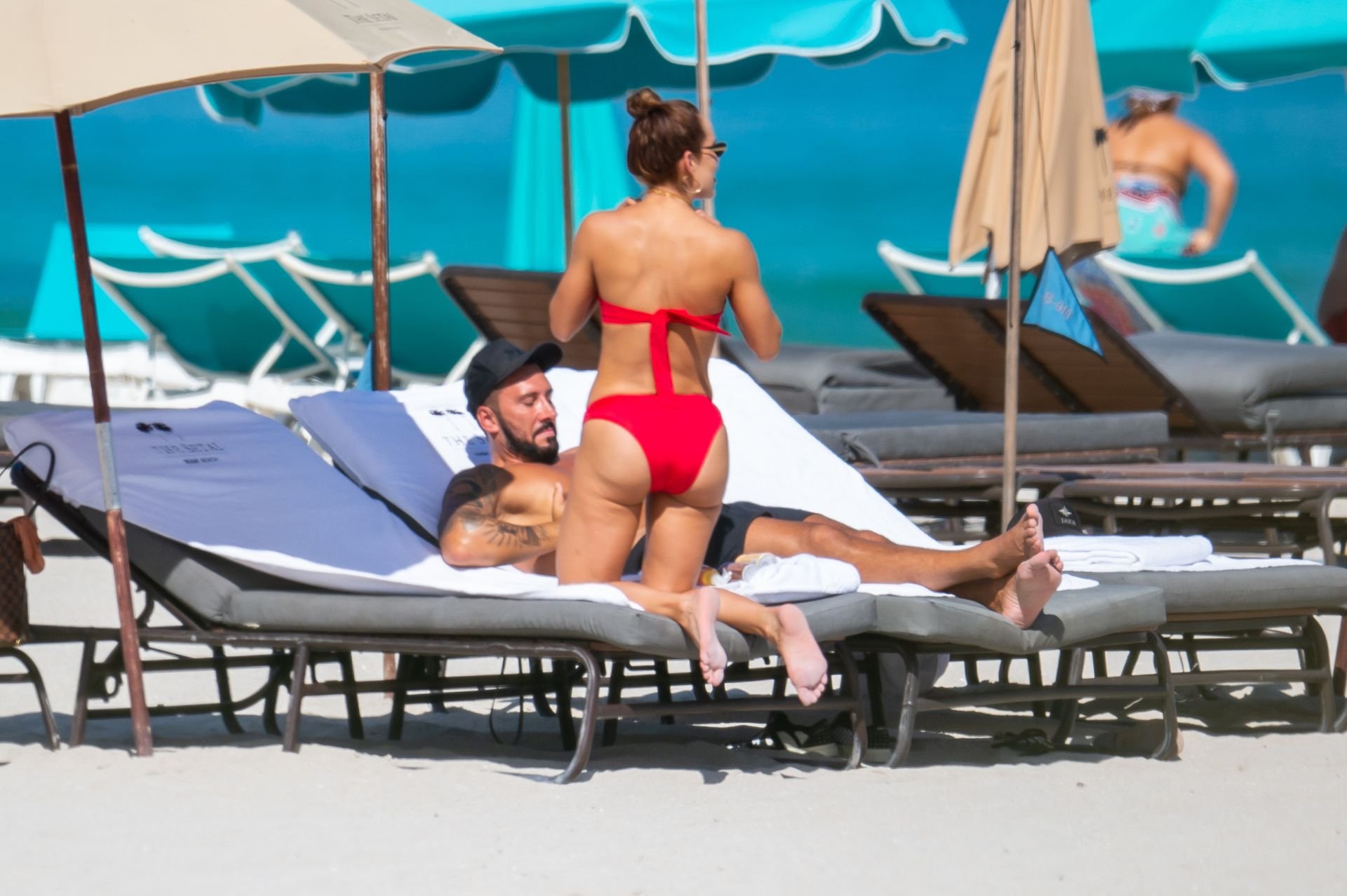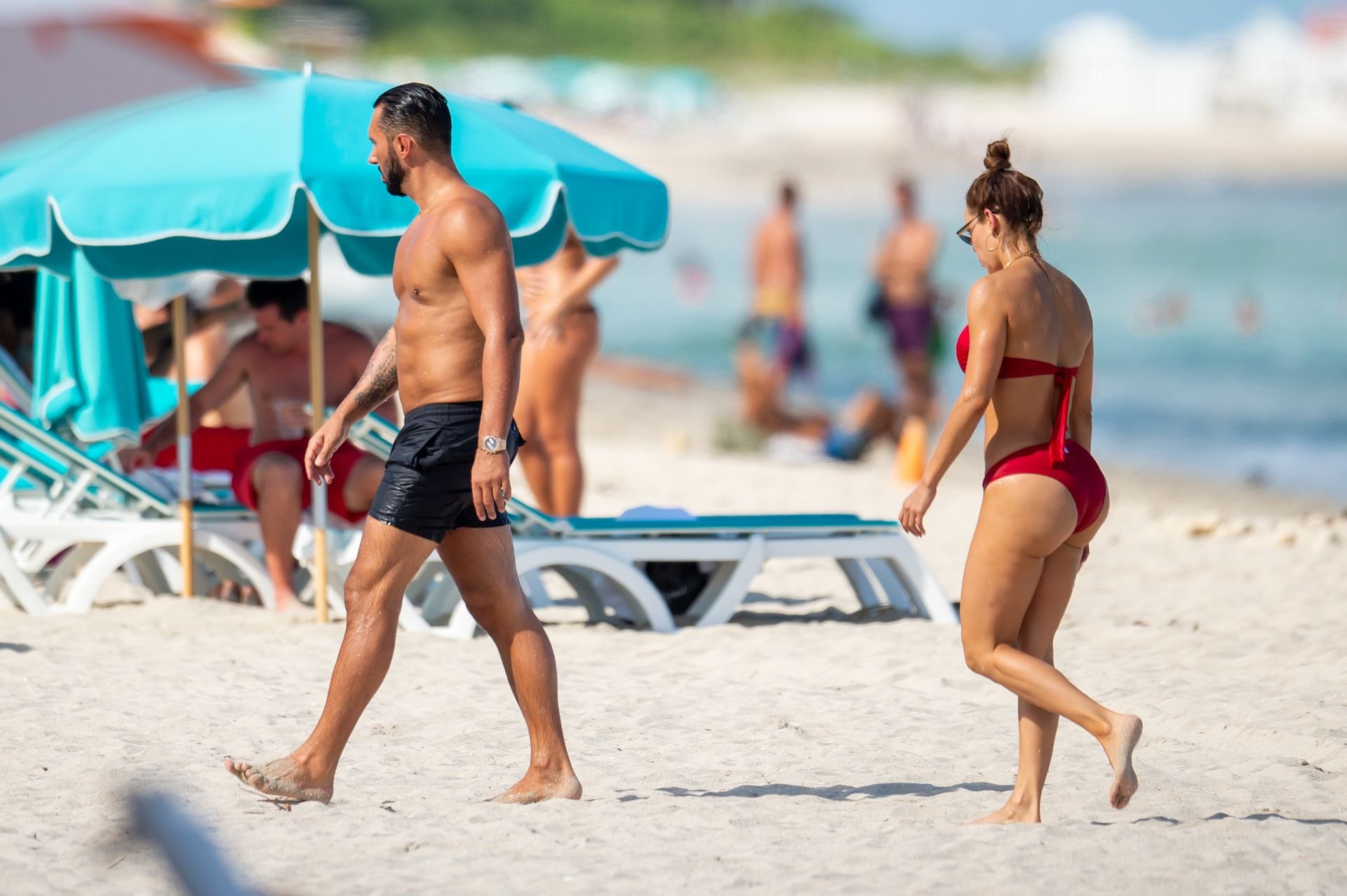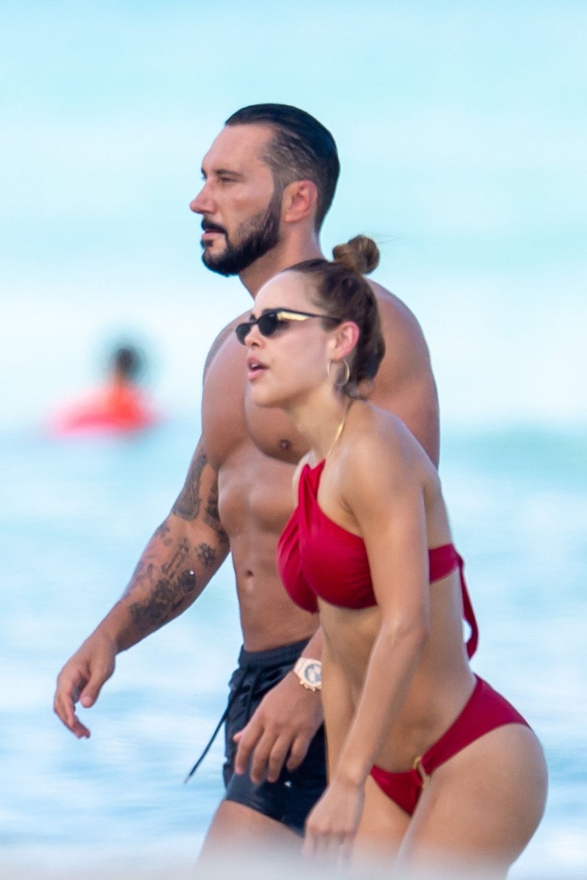 Ahora parece que ya han ido mucho más allá de los mensajes directos. La pareja no pudo mantener las manos alejadas mientras disfrutaban de un refrescante baño en el océano en Miami Beach. Usando un sexy conjunto rojo de dos piezas, Sara mostró las curvas que llamaron la atención de Gervais.