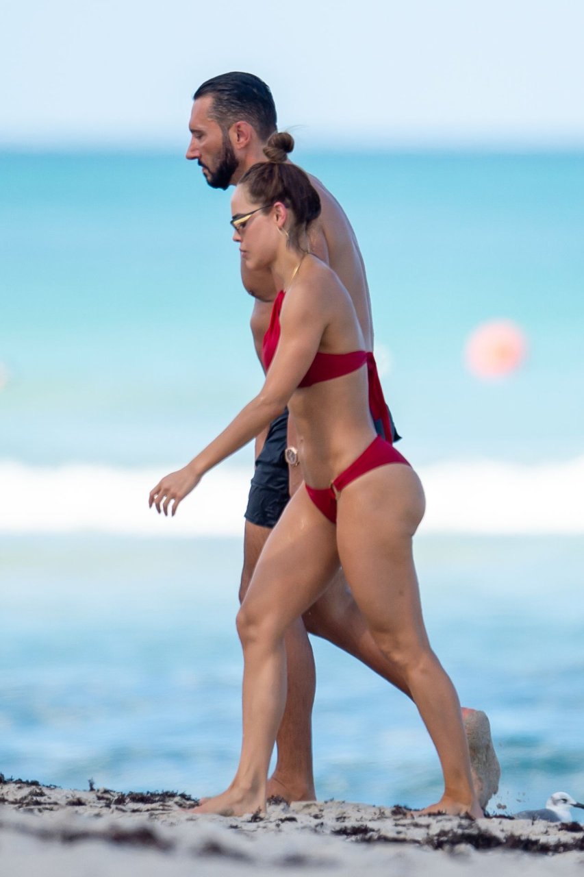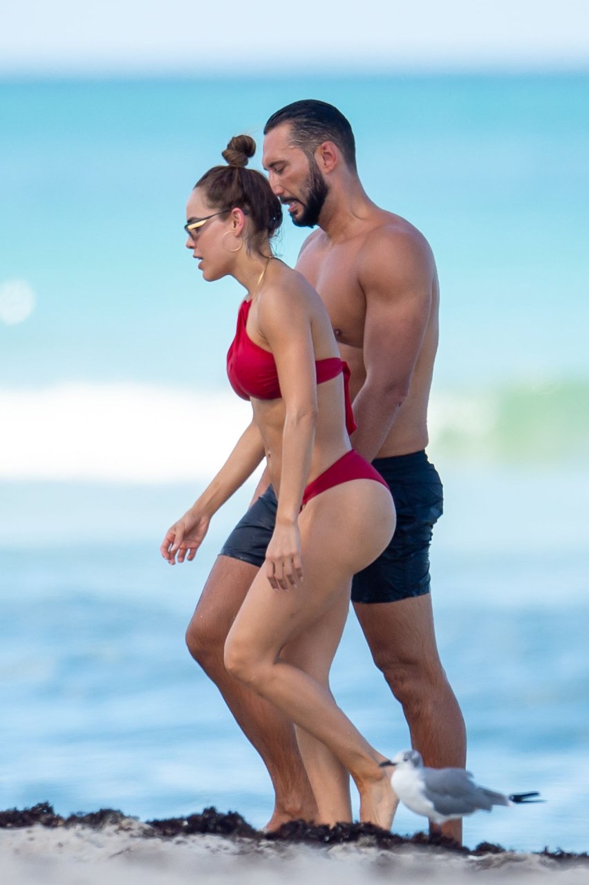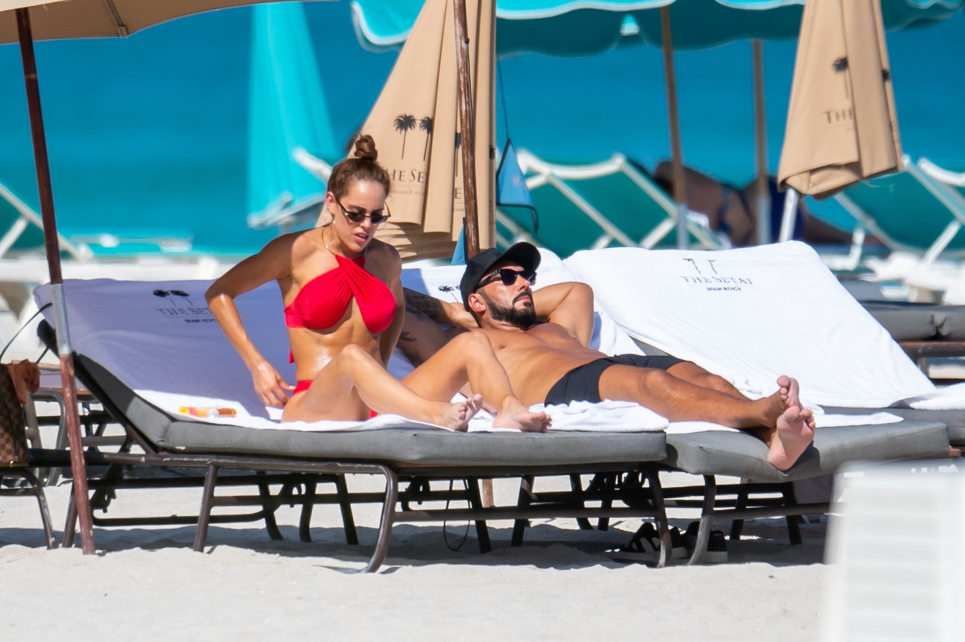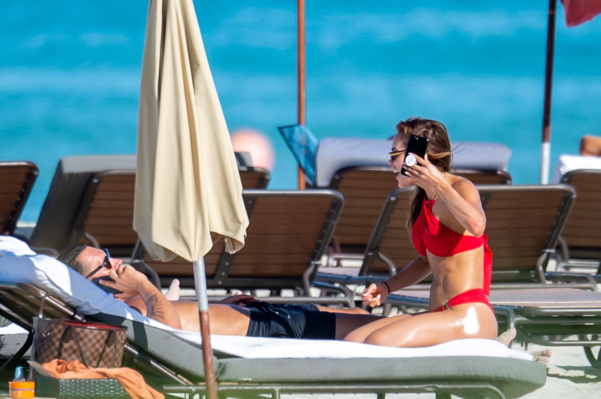 Ahora parece que ya han ido mucho más allá de los mensajes directos. La pareja no pudo mantener las manos alejadas mientras disfrutaban de un refrescante baño en el océano en Miami Beach. Usando un sexy conjunto rojo de dos piezas, Sara mostró las curvas que llamaron la atención de Gervais.